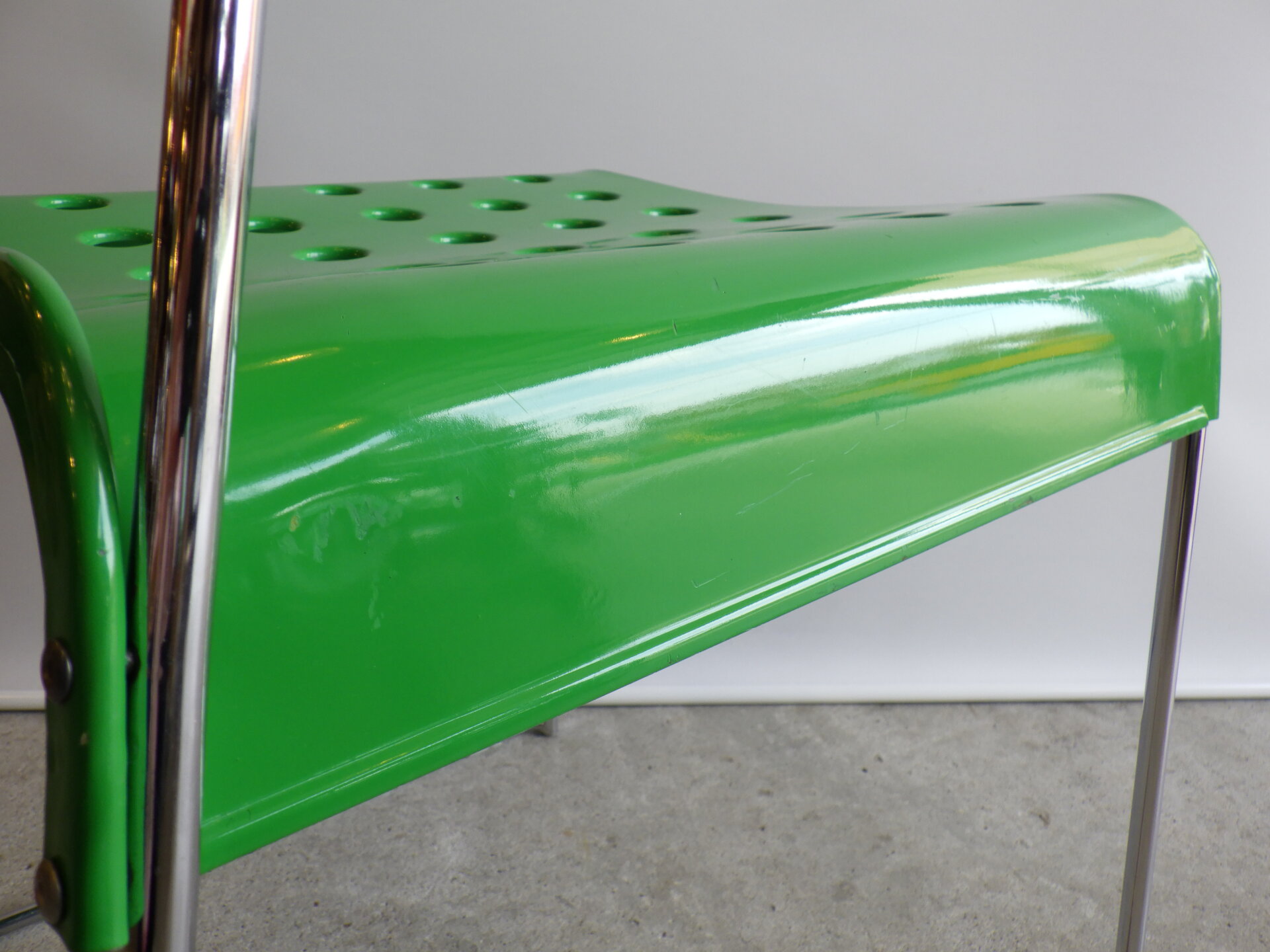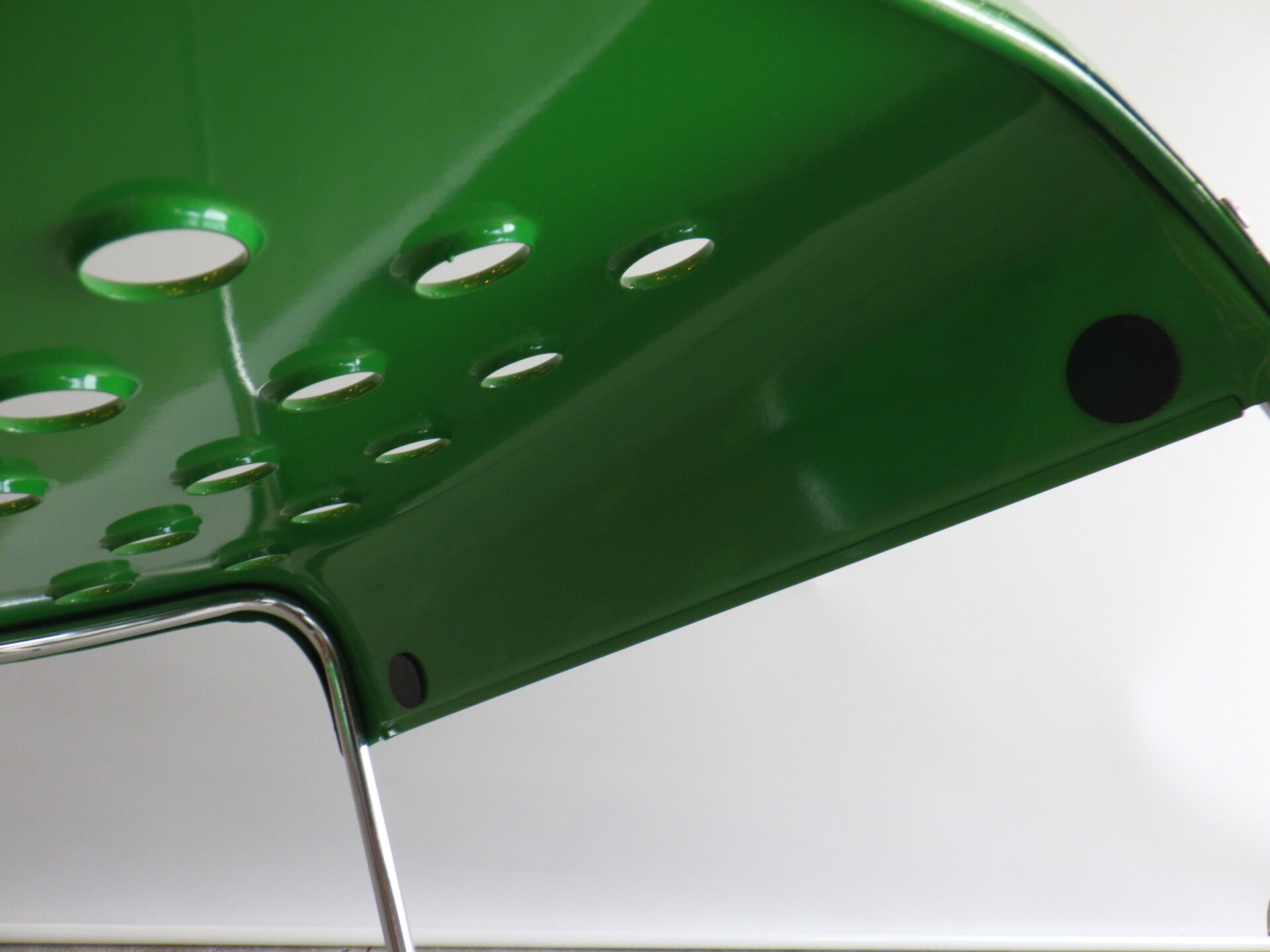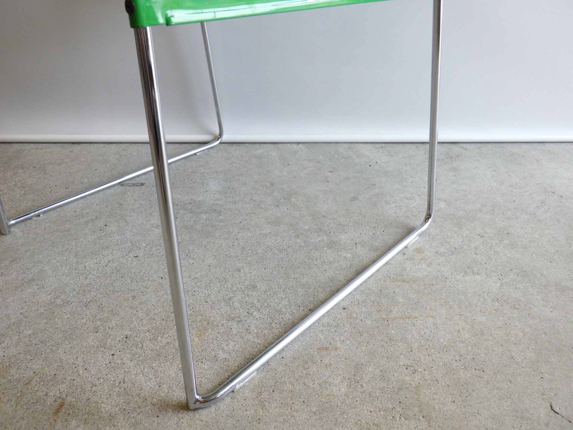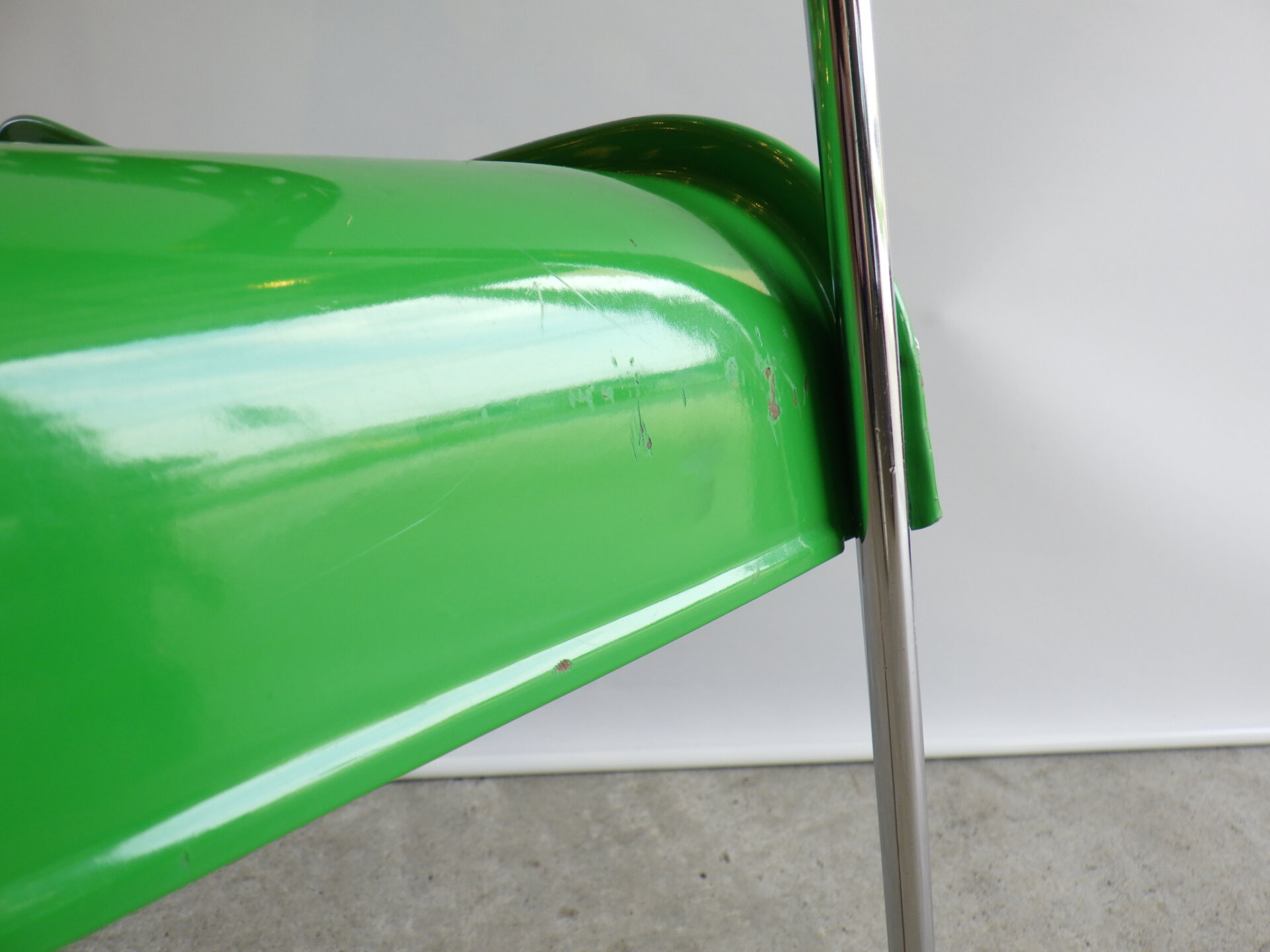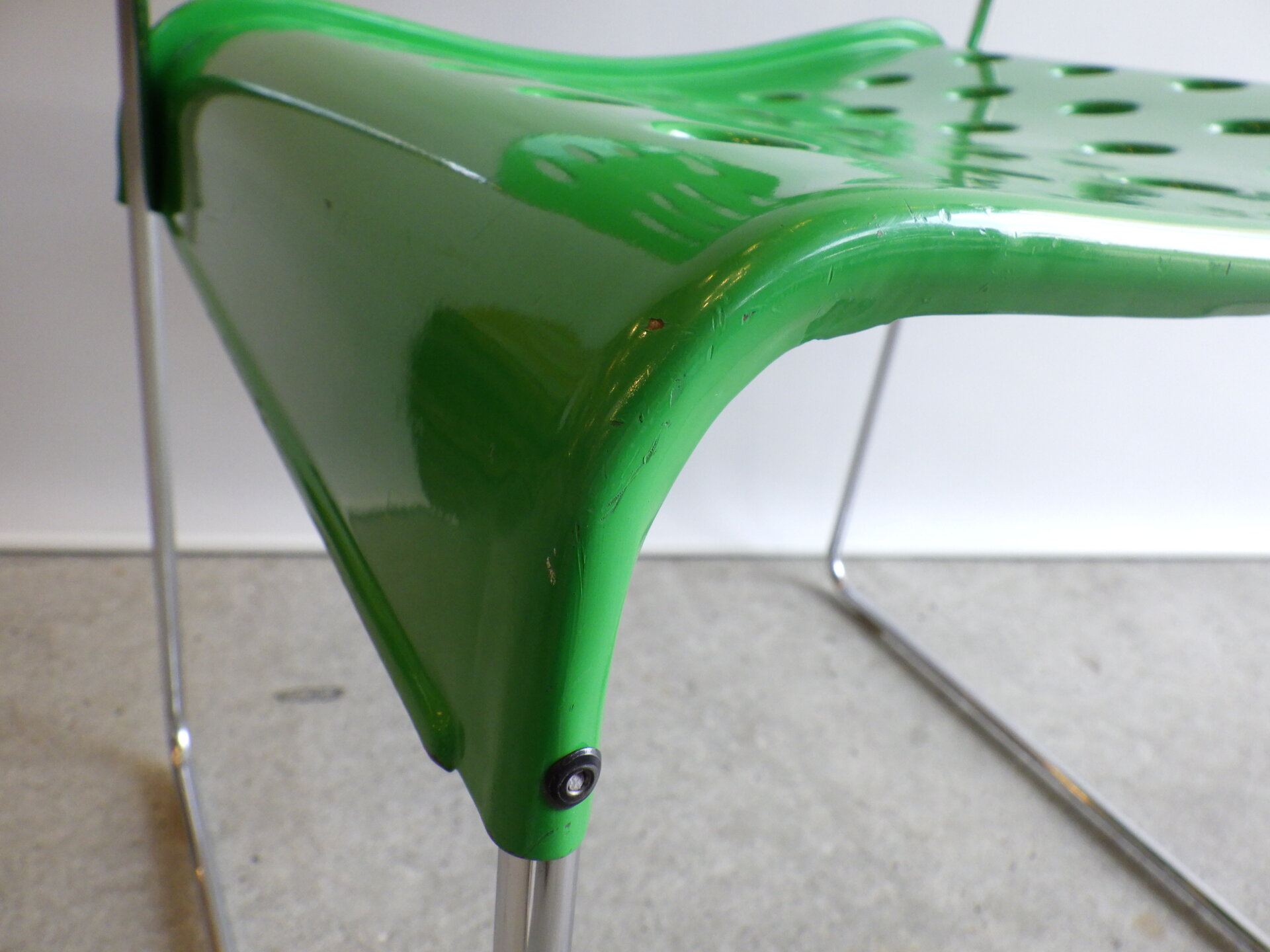 | アメリカで買い付けました。 イタリア「Bieffeplast」社製、OMKSTAKビンテージダイニングチェアです。 デザイナーはRodney Kinsman。 合理性、タフさ、スタッキング美を兼ね揃えた「使える名作」と名高いチェア。 元はカフェ、食堂、大学やオフィスの共用部など公共家具寄りの用途で普及したチェアですが、オールスチールで軽量、頑丈で佇まいも美しいため、自宅でダイニングチェアやワークチェアとしてお使いいただくのも良いかと。 モダンでポップな雰囲気がお好きな方や、店舗什器をお探しの方、いかがですか? |