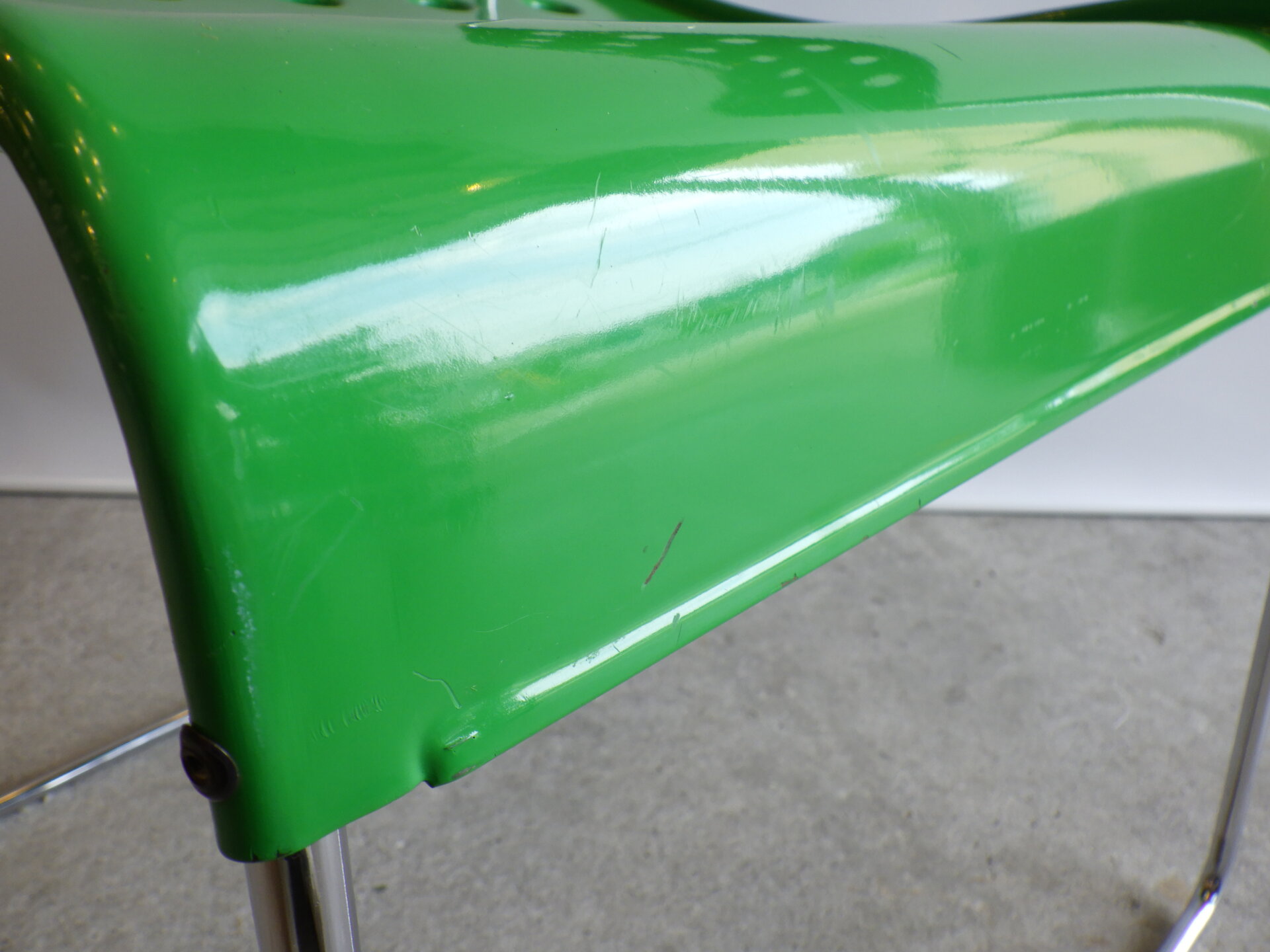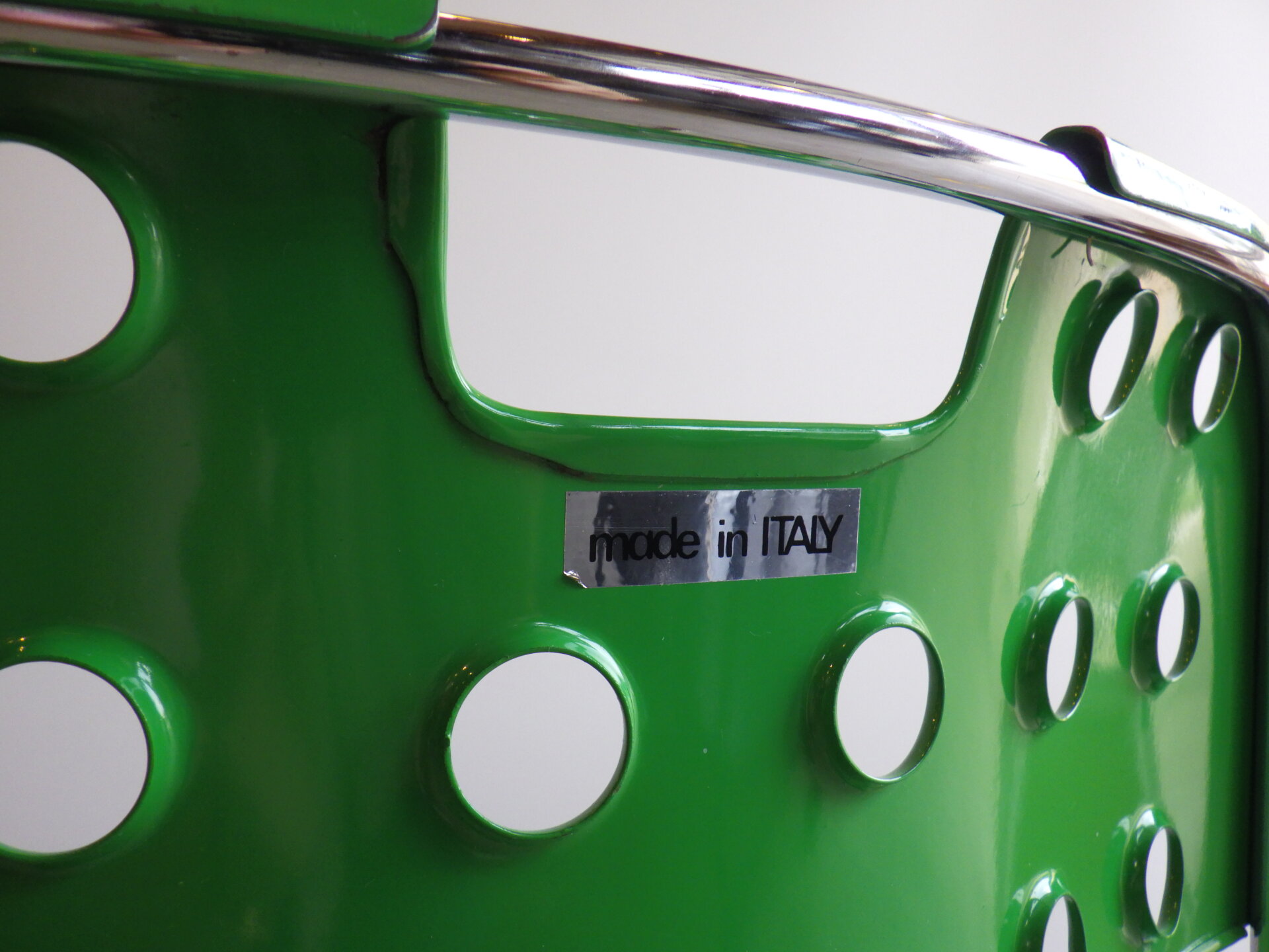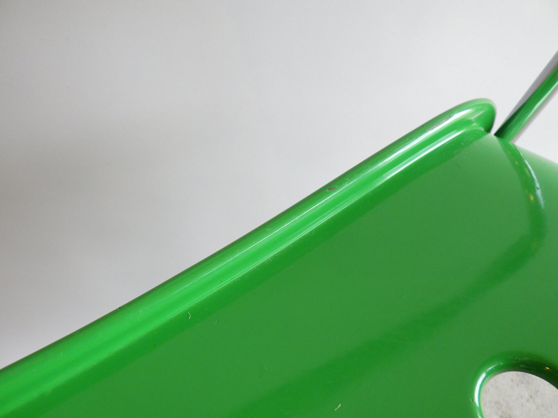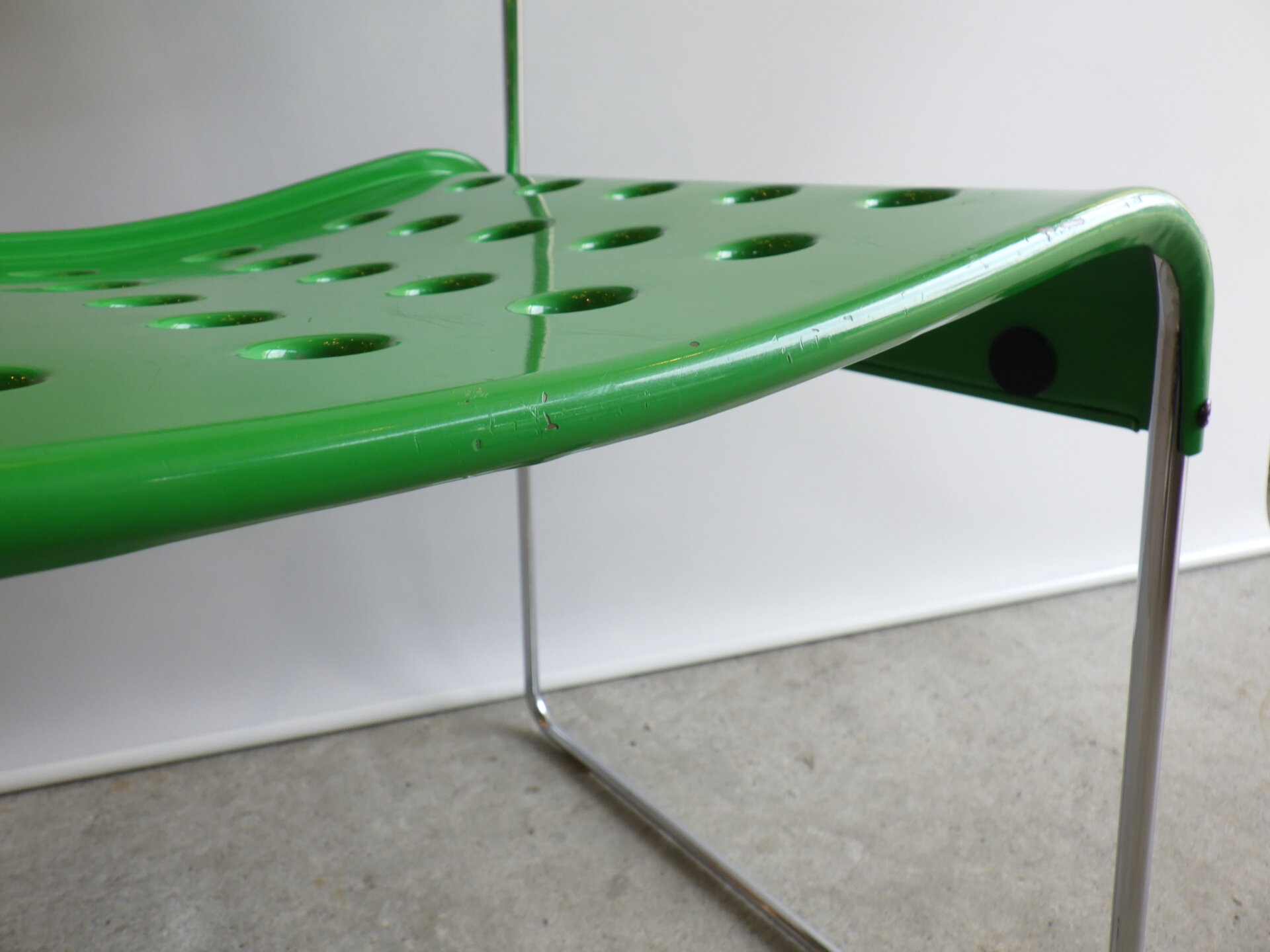| アメリカで買い付けました。 イタリア「Bieffeplast」社製、OMKSTAKビンテージダイニングチェアです。 デザイナーはRodney Kinsman。 合理性、タフさ、スタッキング美を兼ね揃えた「使える名作」と名高いチェア。 元はカフェ、食堂、大学やオフィスの共用部など公共家具寄りの用途で普及したチェアですが、オールスチールで軽量、頑丈で佇まいも美しいため、自宅でダイニングチェアやワークチェアとしてお使いいただくのも良いかと。 モダンでポップな雰囲気がお好きな方や、店舗什器をお探しの方、いかがですか? |