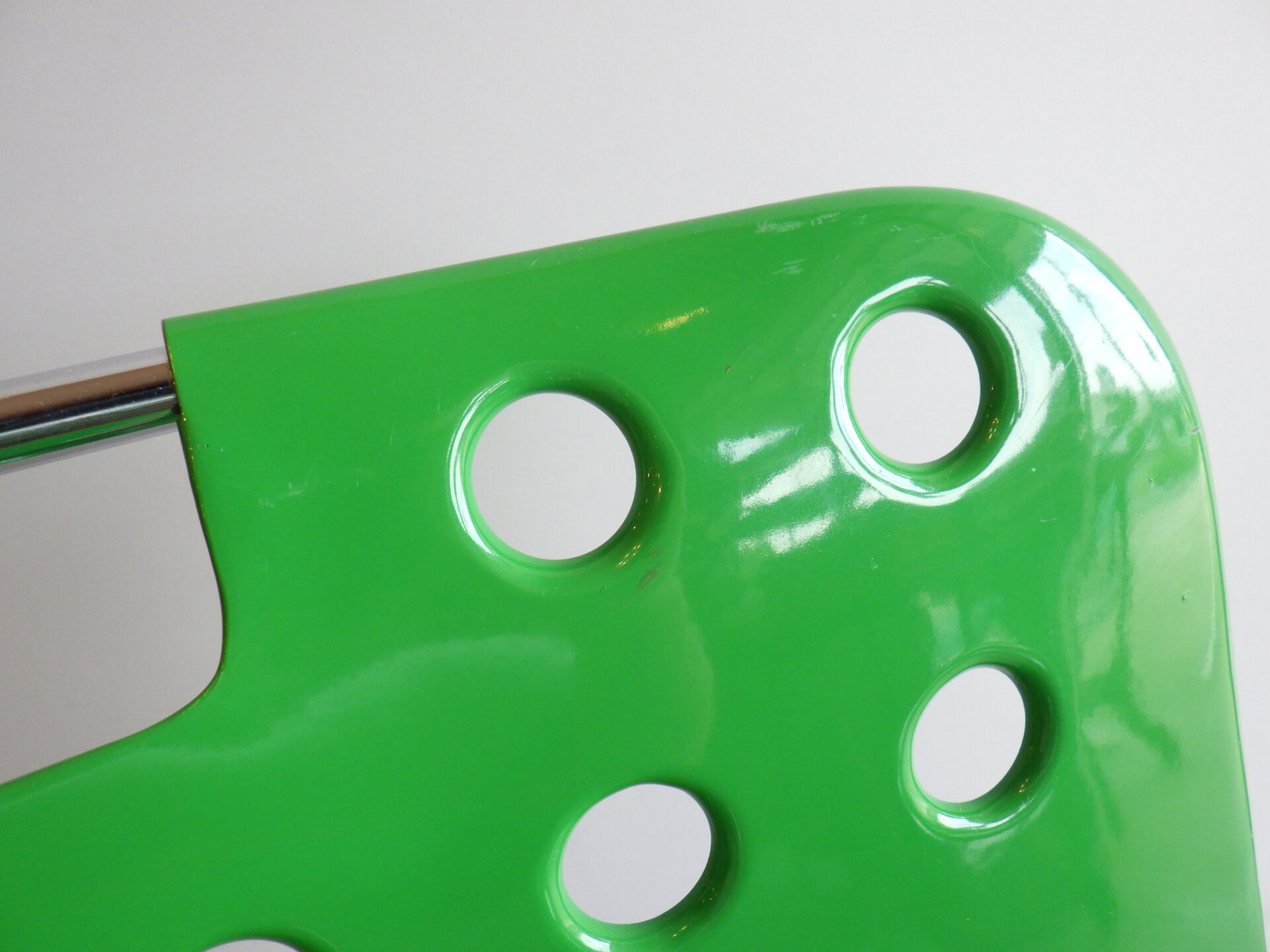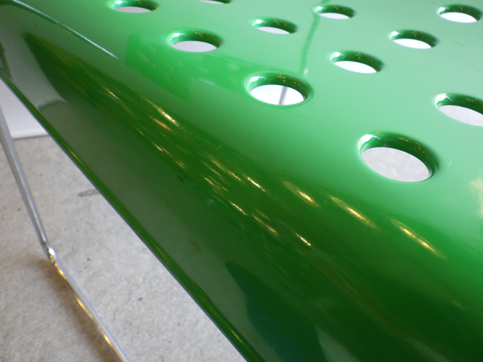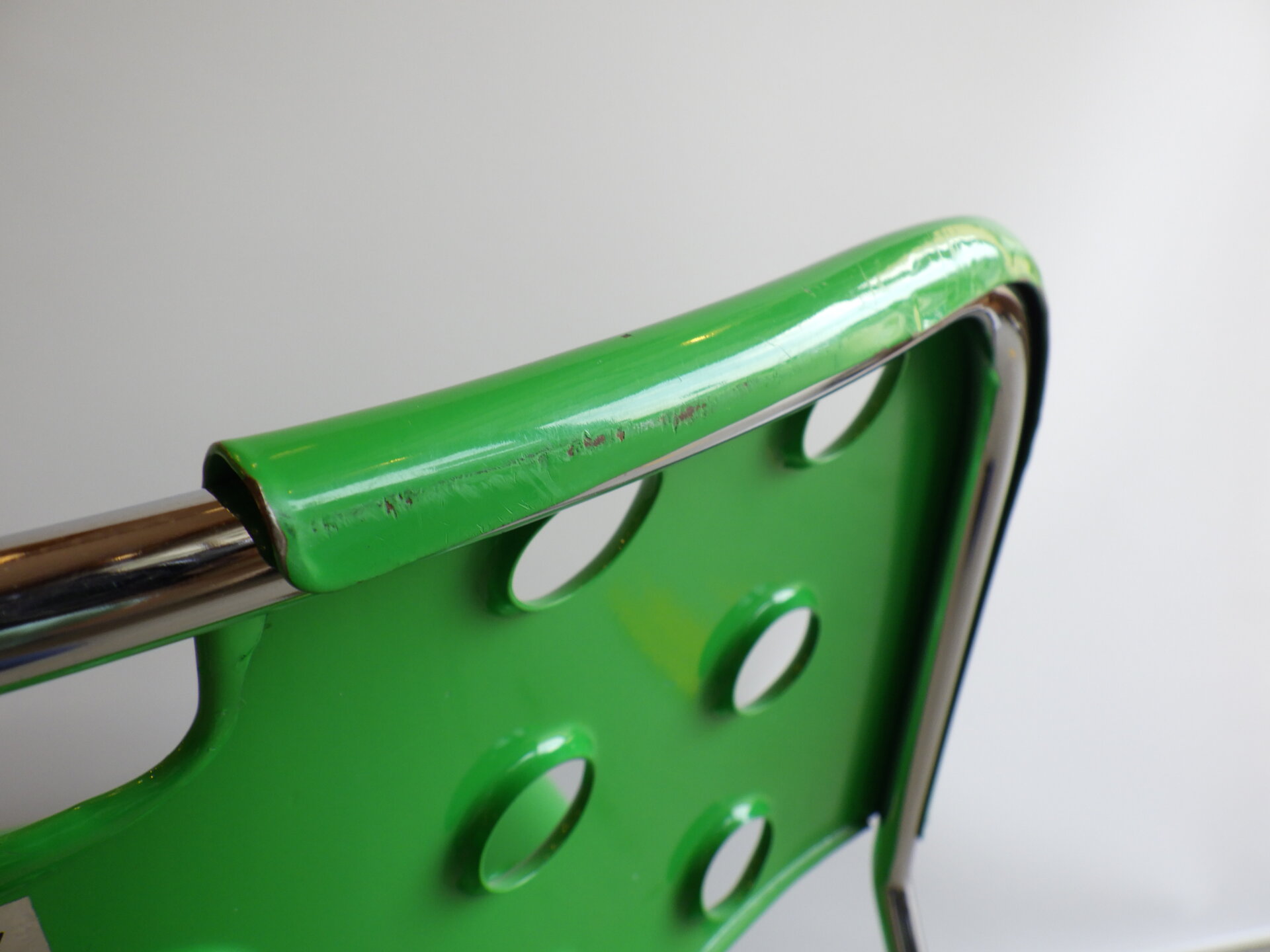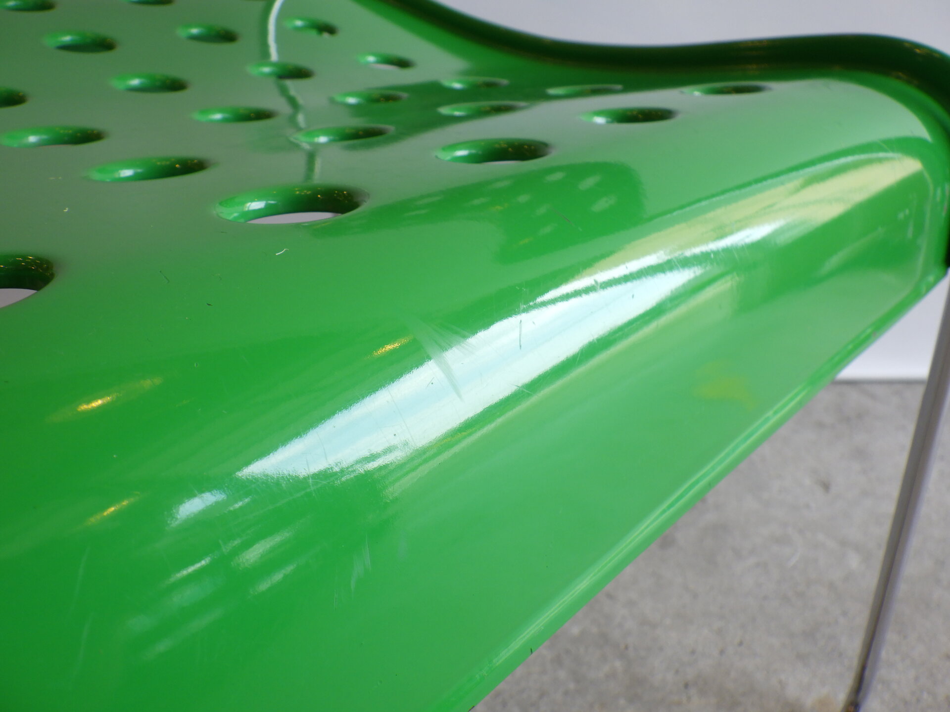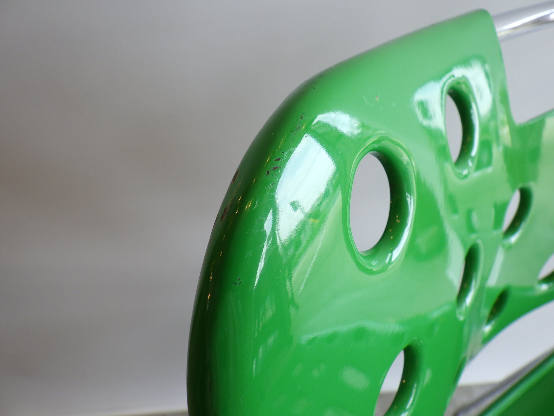 | アメリカで買い付けました。 イタリア「Bieffeplast」社製、OMKSTAKビンテージダイニングチェアです。 デザイナーはRodney Kinsman。 合理性、タフさ、スタッキング美を兼ね揃えた「使える名作」と名高いチェア。 元はカフェ、食堂、大学やオフィスの共用部など公共家具寄りの用途で普及したチェアですが、オールスチールで軽量、頑丈で佇まいも美しいため、自宅でダイニングチェアやワークチェアとしてお使いいただくのも良いかと。 モダンでポップな雰囲気がお好きな方や、店舗什器をお探しの方、いかがですか? |