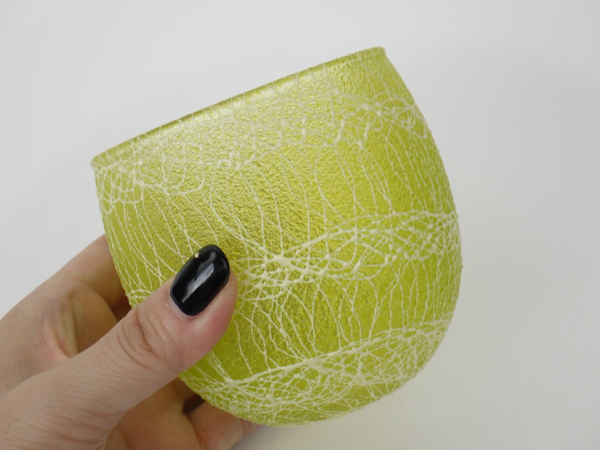 | アメリカで買い付けました。 ビンテージのラバーグラスです。 こうしたラバーコーティング・グラスはミッドセンチュリー期のアメリカで流行しました。 当時は「割れにくい」「滑りにくい」日常使いのコップとして流行し、アウトドアやカジュアルなホームパーティーでよく使われていたそう。 ラバーの上のホワイトストリングは全て手作業で描かれているので、同じカラーのアイテムでもデザインはそれぞれ異なります。 軽量で持ちやすく、滑りにくいという機能性に加え、豊富なカラー展開でインテリア性も抜群なシリーズ。 ぜひ各色集めてみて下さい。 |