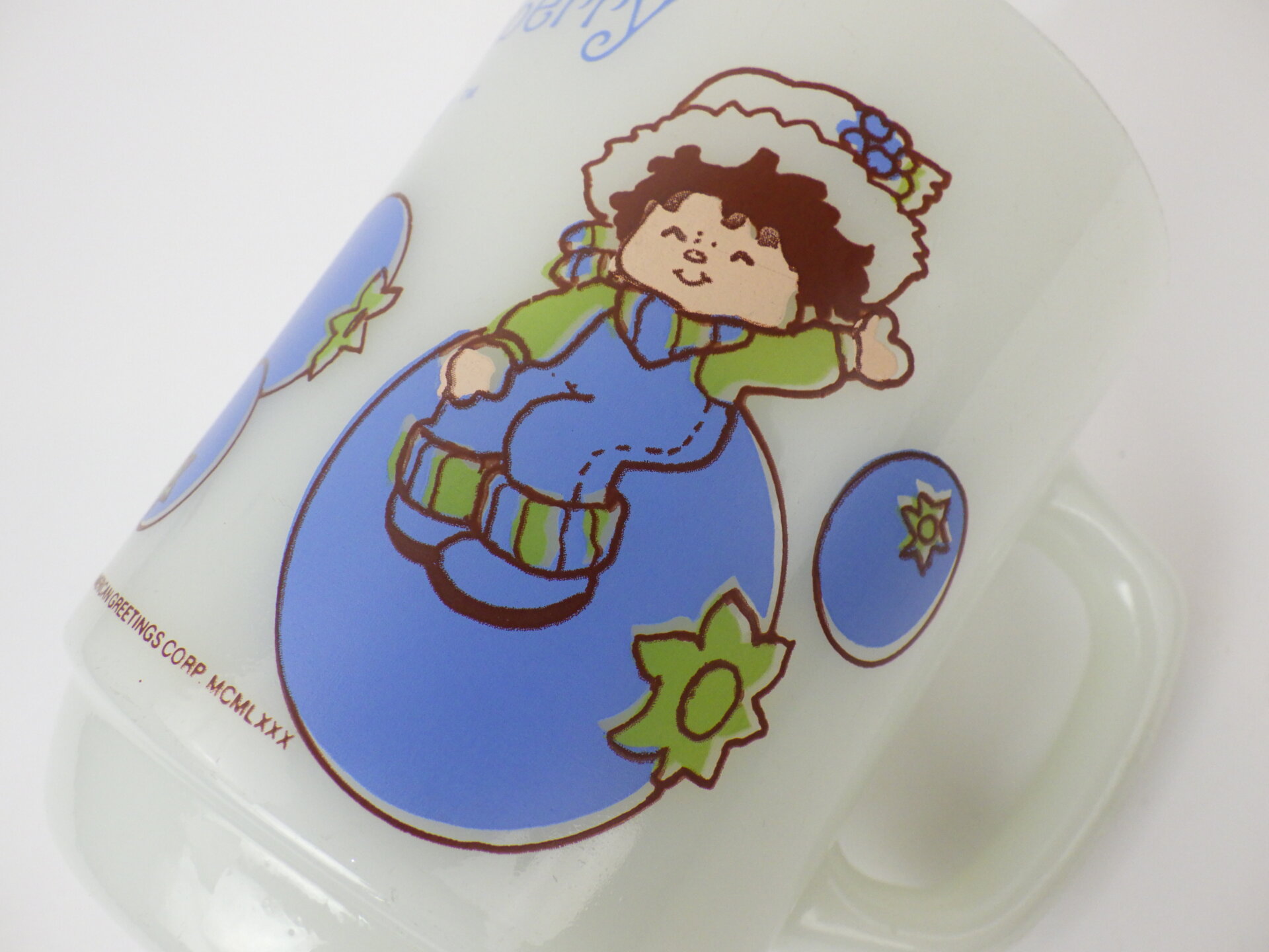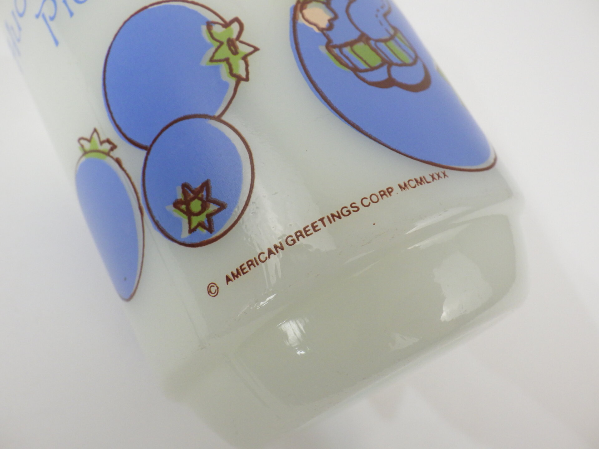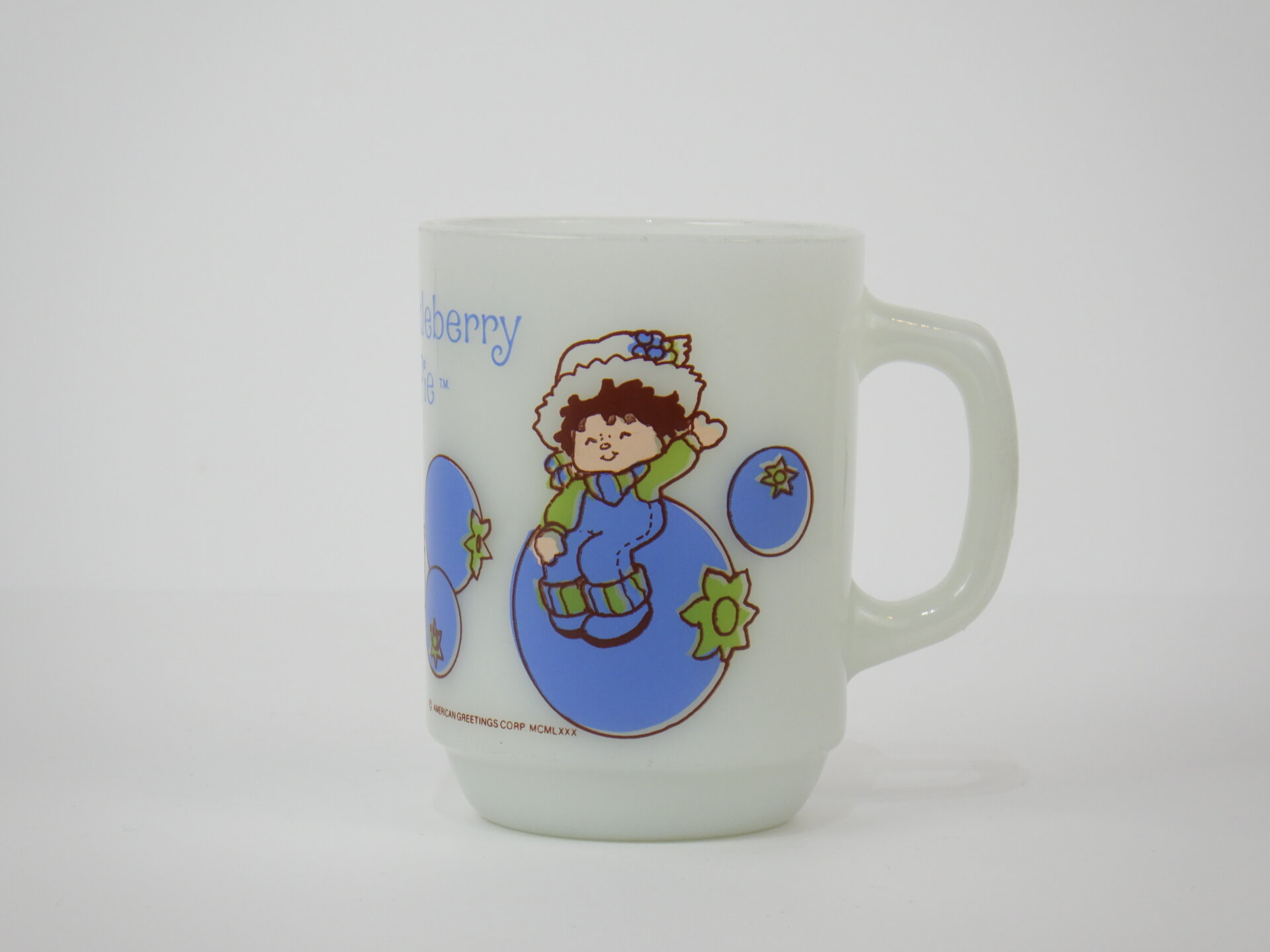 | アメリカで買い付けました。 AMERICAN GREETINGS CORPが発行しているグリーティングカードのキャラクター「ストロベリー・ショートケーキ」の友達「ハックルベリーパイ」の9ozマグです。 1980年代全米で人気を博し、テレビアニメ、映画をはじめ、人形や洋服など様々なアイテムが製造されました。 その他にもケーキにちなんだキャラクターが存在します。(ファイヤーキングマグはシリーズ全8種類) カラフルで可愛いシリーズなので、思わず集めてみたくなりますよ。 |