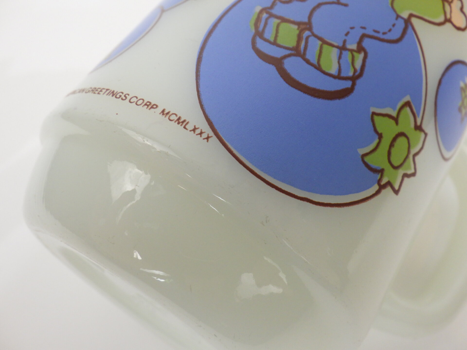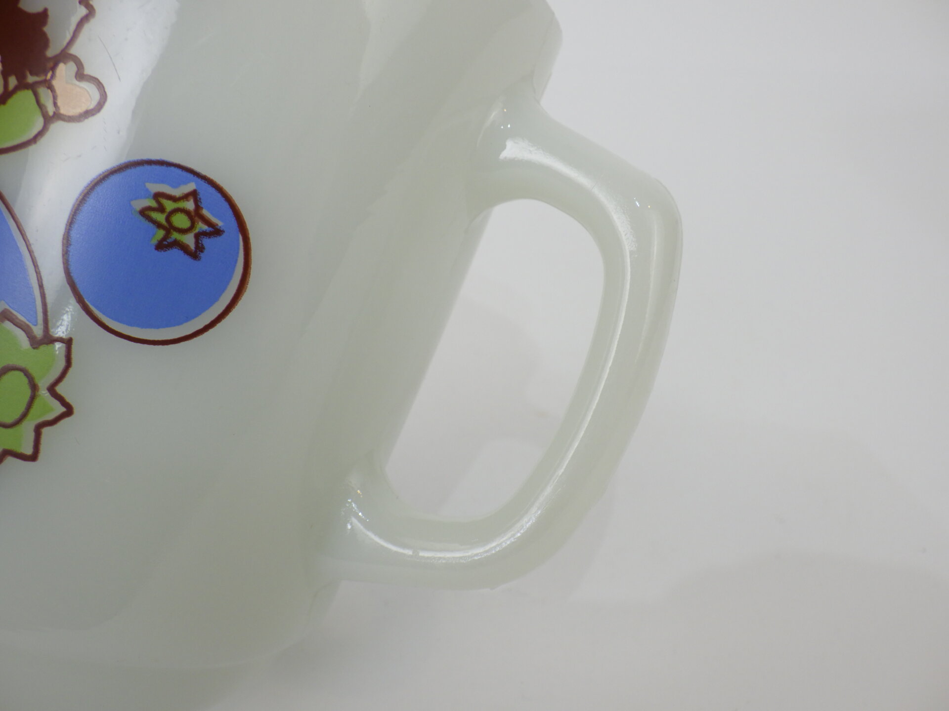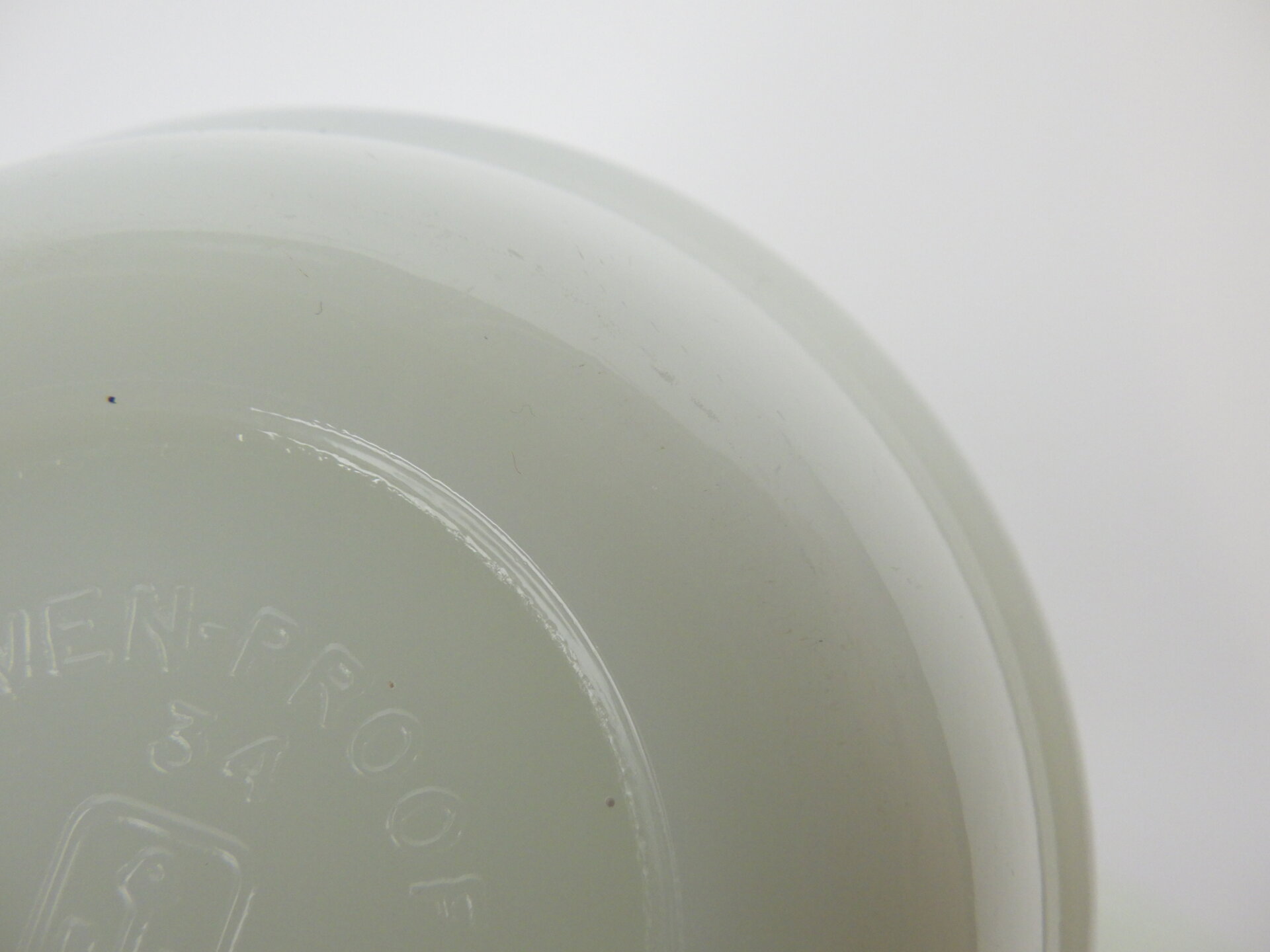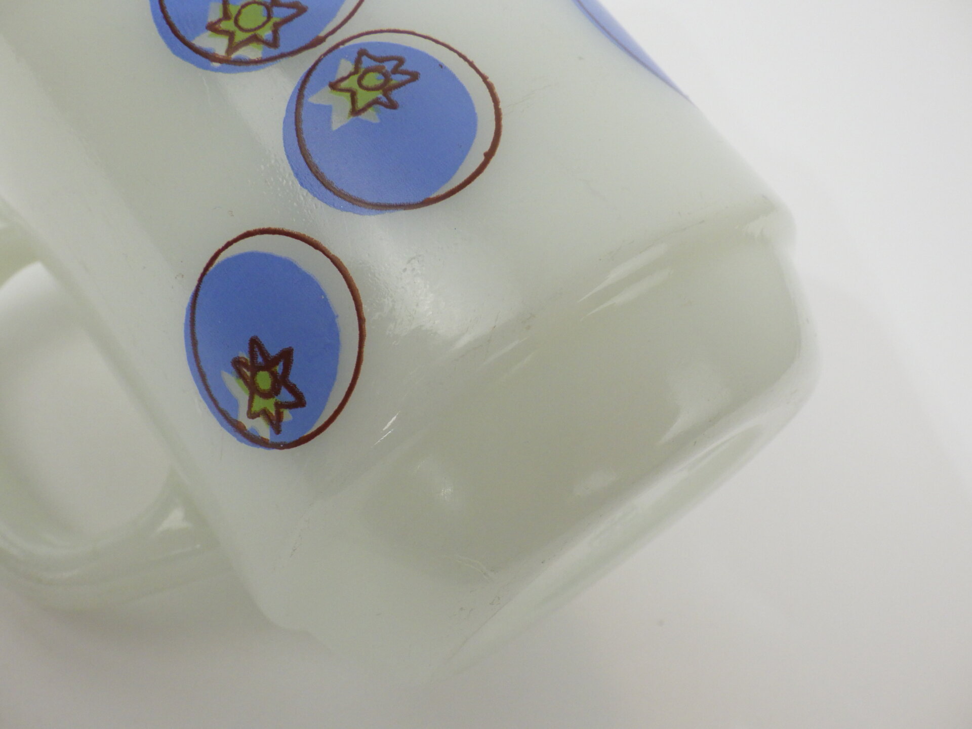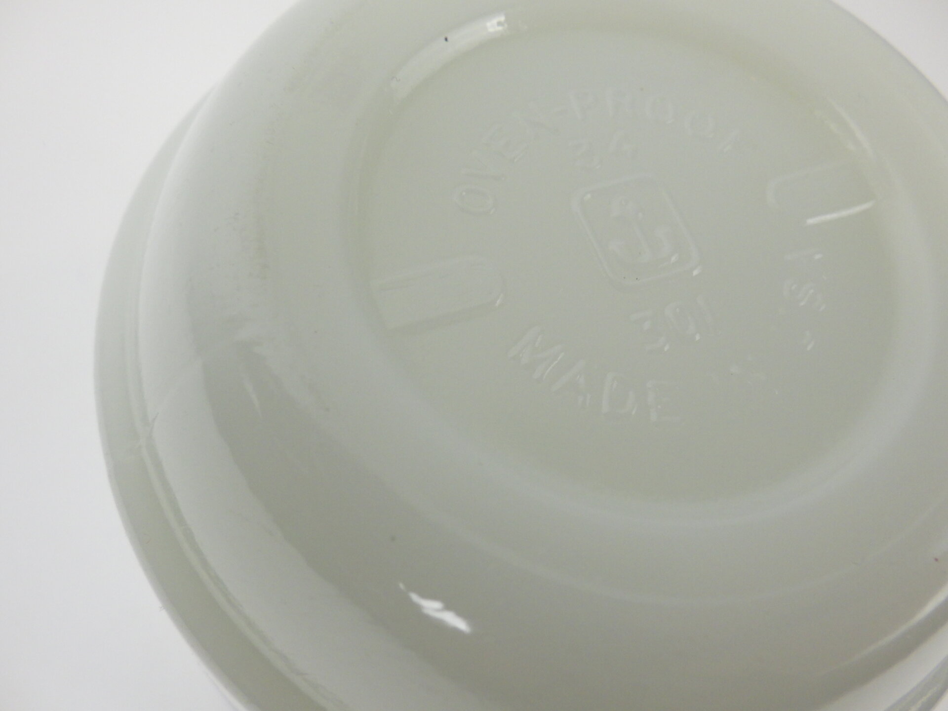 | condition | リム、ボトム、側面、内側にわずかな着色がありあます。 リムの縁(内側)にごくわずかなチップがあります。 リム、ボトムに経年によるスレがあります。 文字のプリント上にある白いラインは製造時よりのものです。 製造時よりのホワイトスポット、劣化線、ヘアライン、ガラスのヨレなどありますが、ミルクガラス特有のものです。 |