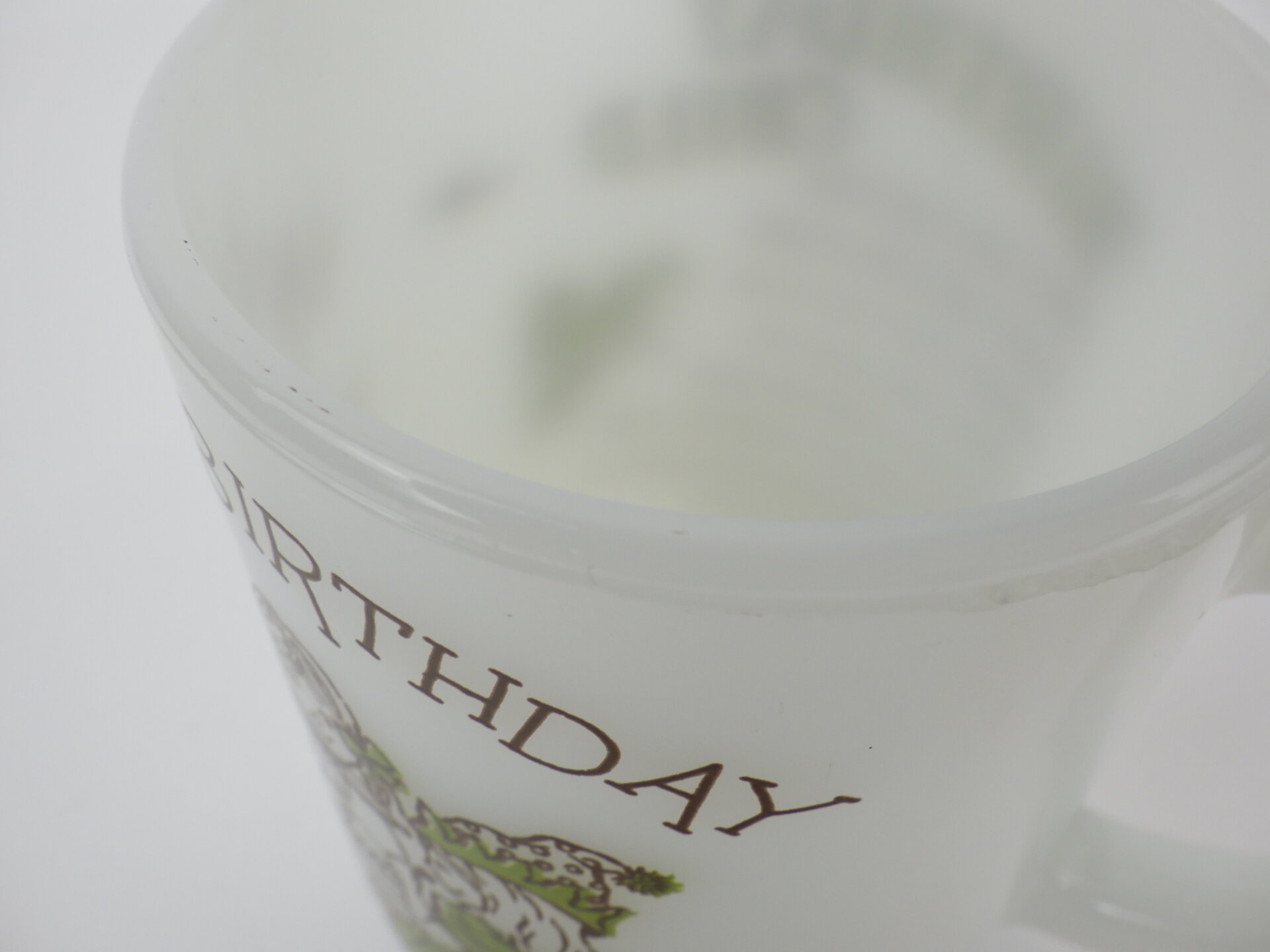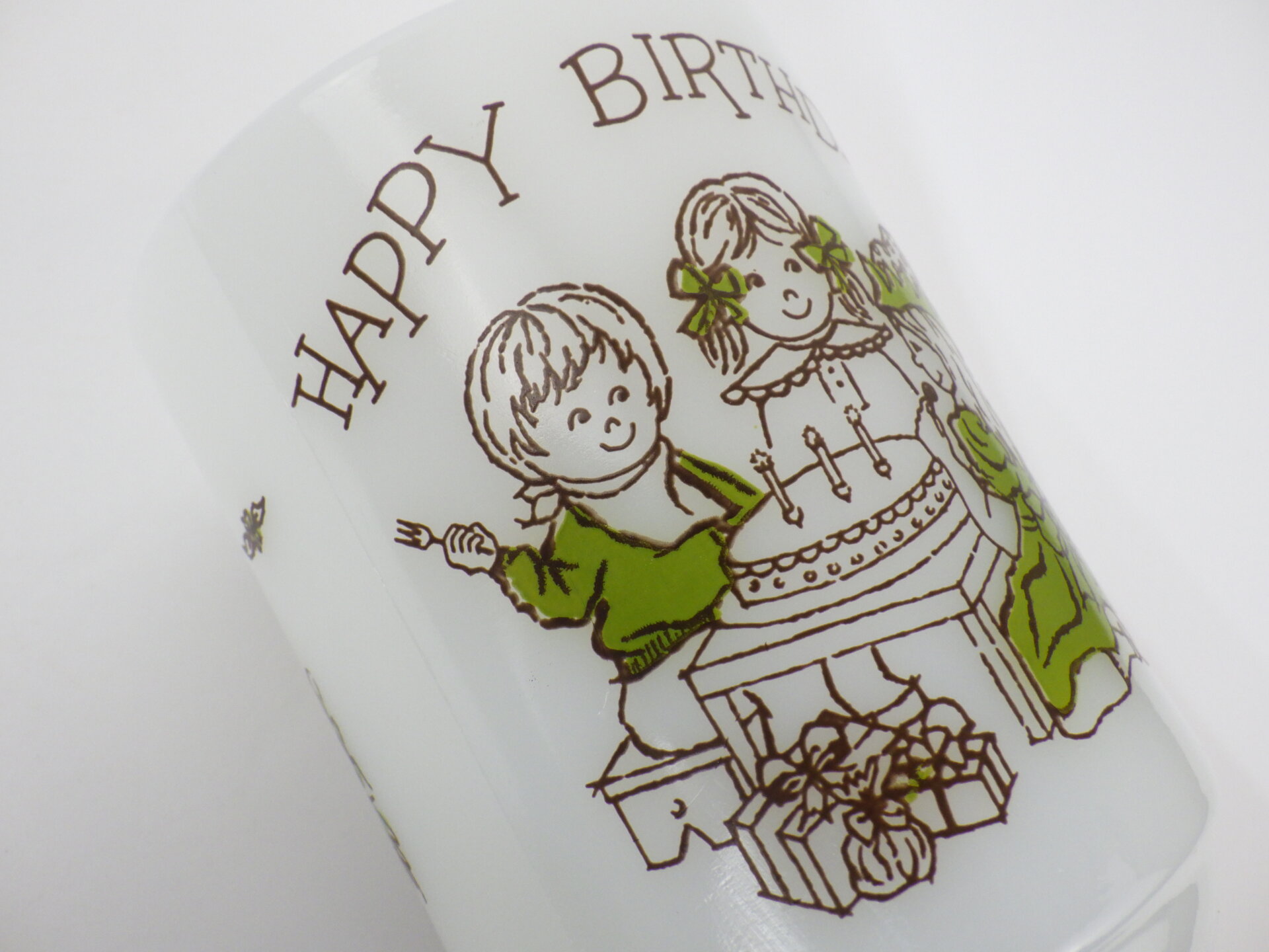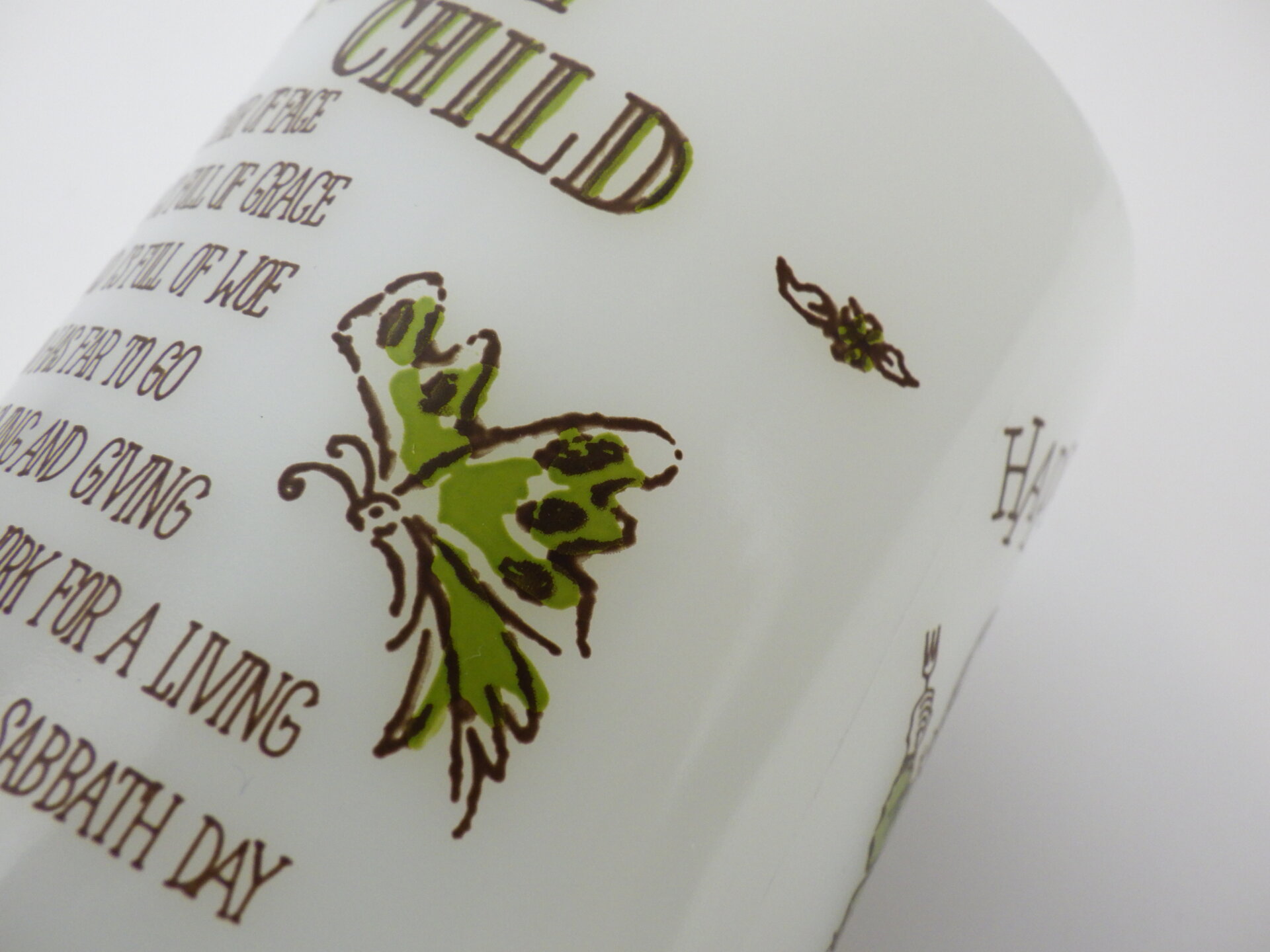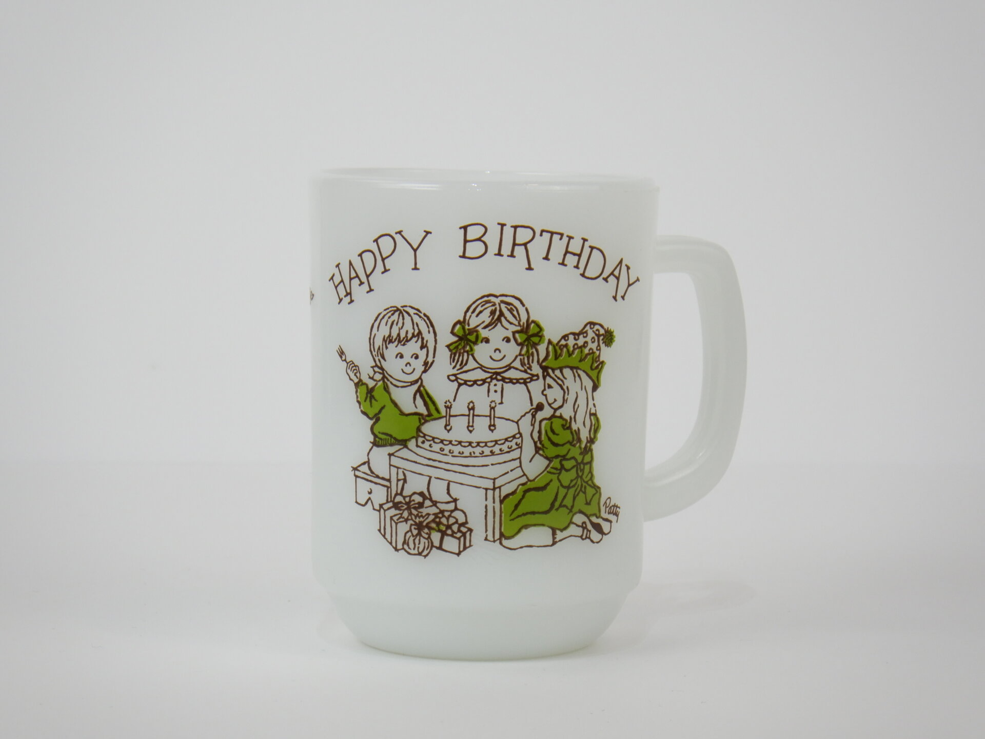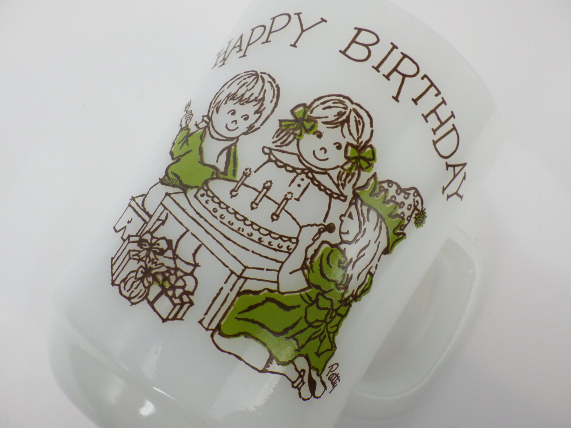 | アメリカで買い付けました。 ファイヤーキング、ウィークリー・チャイルド・シリーズ「ハッピー・バースデー」のマグです。 マザーグースの「曜日の歌」がモチーフになっており、月~土、日(サバスデイ)、バースデイの、全8種が存在します。 曜日ごとに「この曜日生まれの子は〇〇な子」と歌われています。(裏面プリント) 自分の生まれの曜日を調べて、当たっているか確かめてみて下さい。 マグの他にボウルもシリーズとして存在しますので、是非揃えてみて下さい。 |