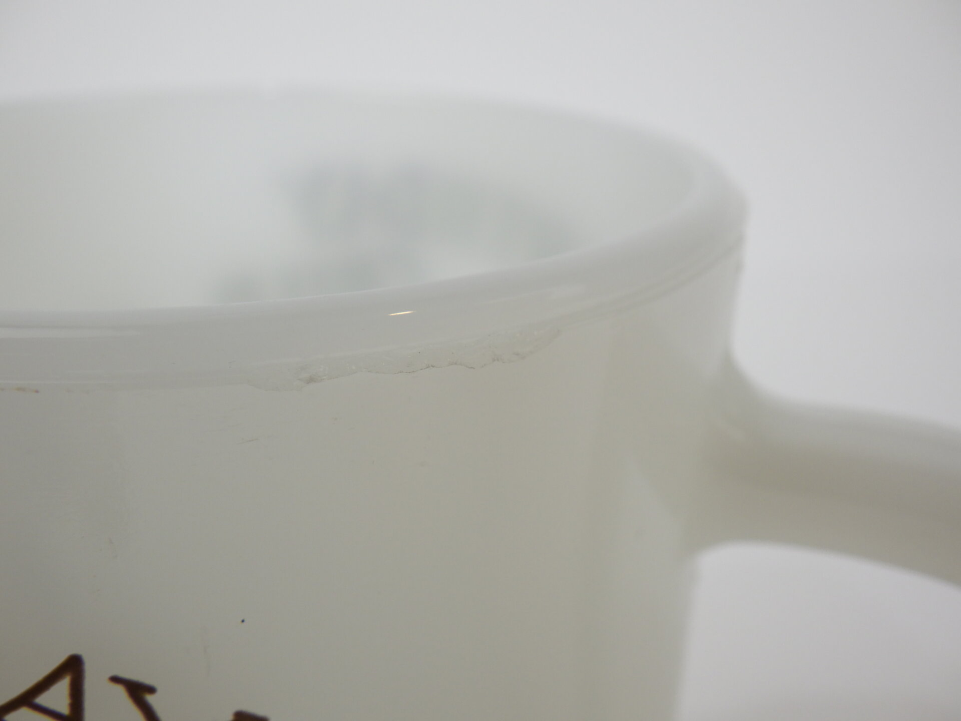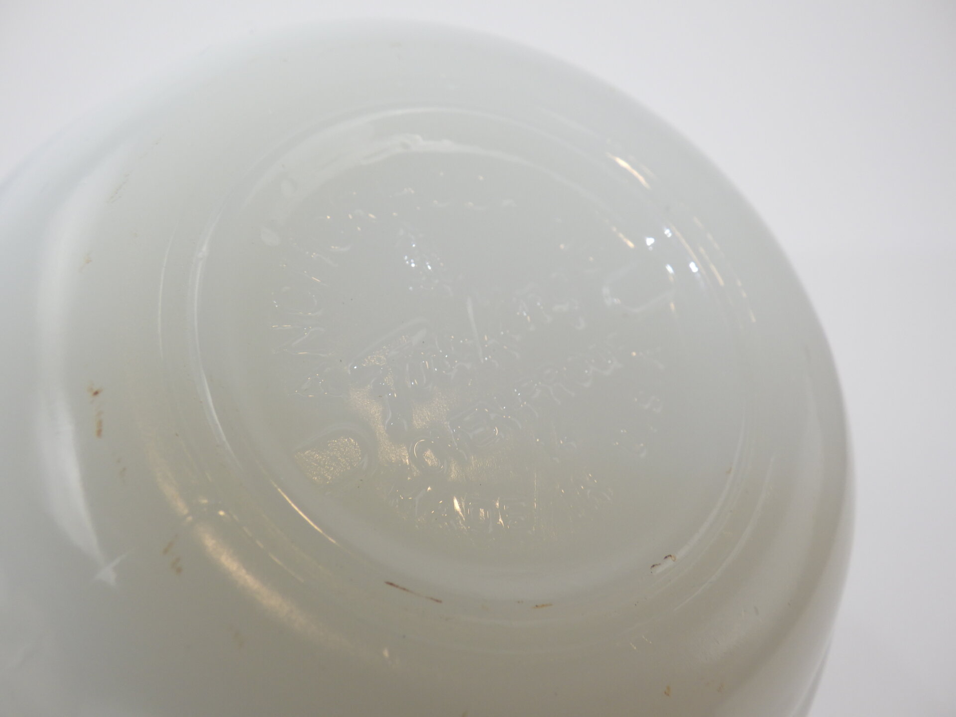 | condition | リム、ボトムにわずかな着色がありあます。 リムの縁に製造時よりのガタツキがあります。 ボトムに経年によるわずかなスレがあります。 製造時よりのホワイトスポット、劣化線、ヘアライン、ガラスのヨレなどありますが、ミルクガラス特有のものです。 |