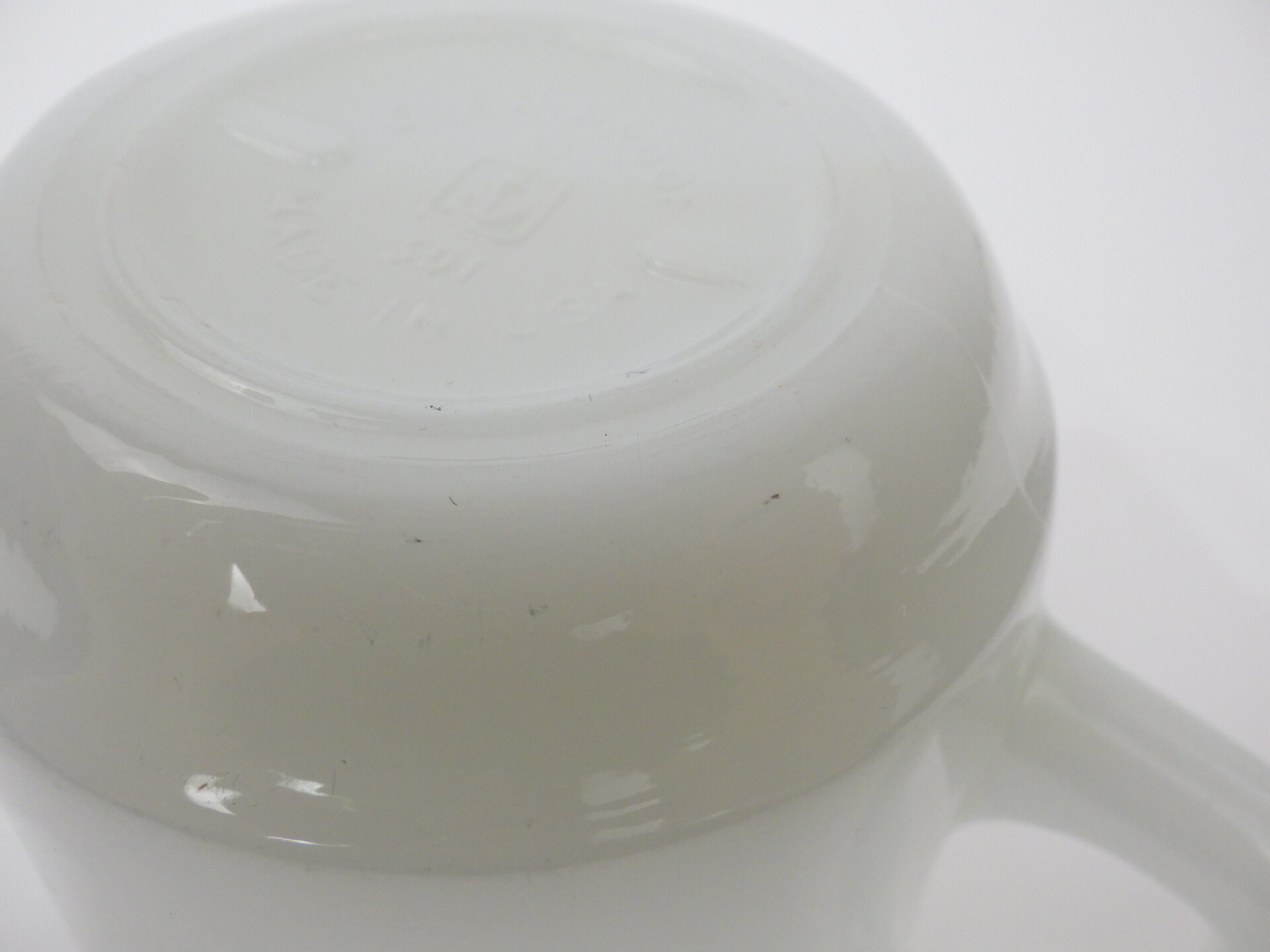 | condition | リム、ボトムにわずかな着色がありあます。 リム、ボトムにわずかなスレがあります。 リムに製造時よりのわずかな凹凸があります。 製造時よりのホワイトスポット、劣化線、ヘアライン、ガラスのヨレなどありますが、ミルクガラス特有のものです。 |