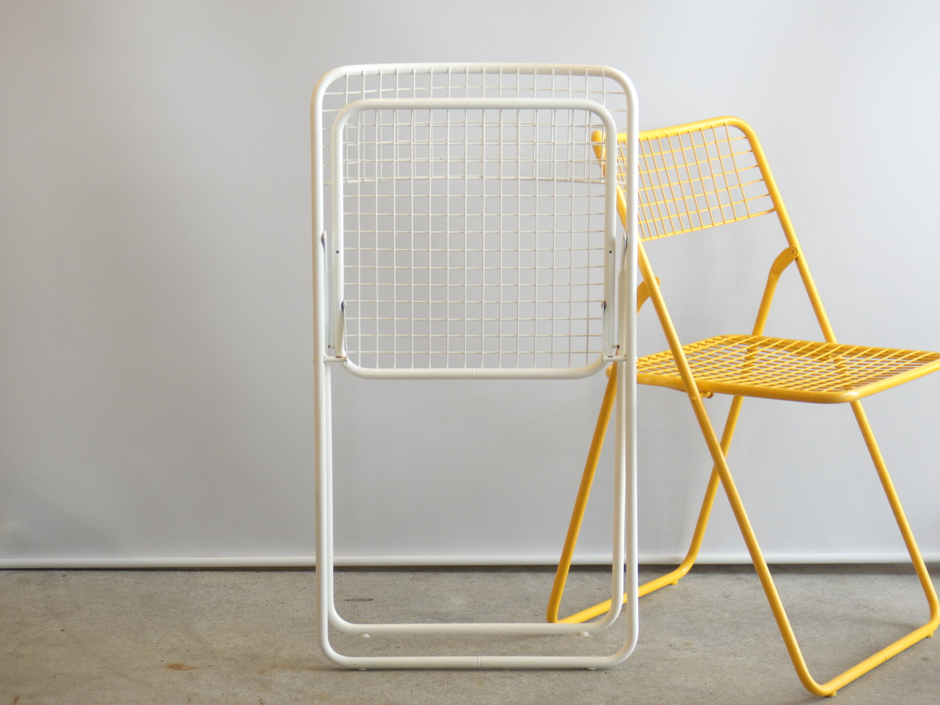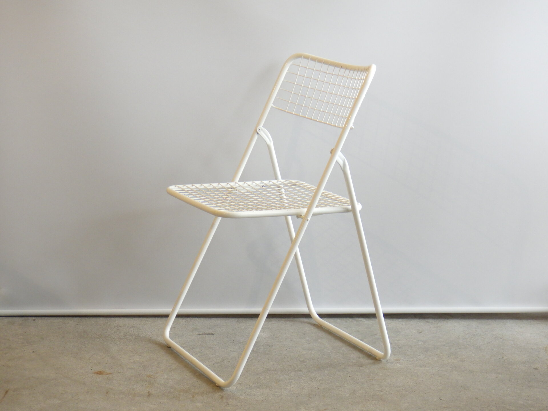 | ヨーロッパで買い付けました。 OLD IKEAのビンテージ フォールディングチェア「RAPPEN」です。 デザインはNiels Gammelgraadによるもの。 軽やかなワイヤーデザインと北欧らしいカラーシリーズが魅力のチェア。 折りたたみ式で実用性も高く、ダイニングやテラス、ショップ什器としても活躍してくれます。 |