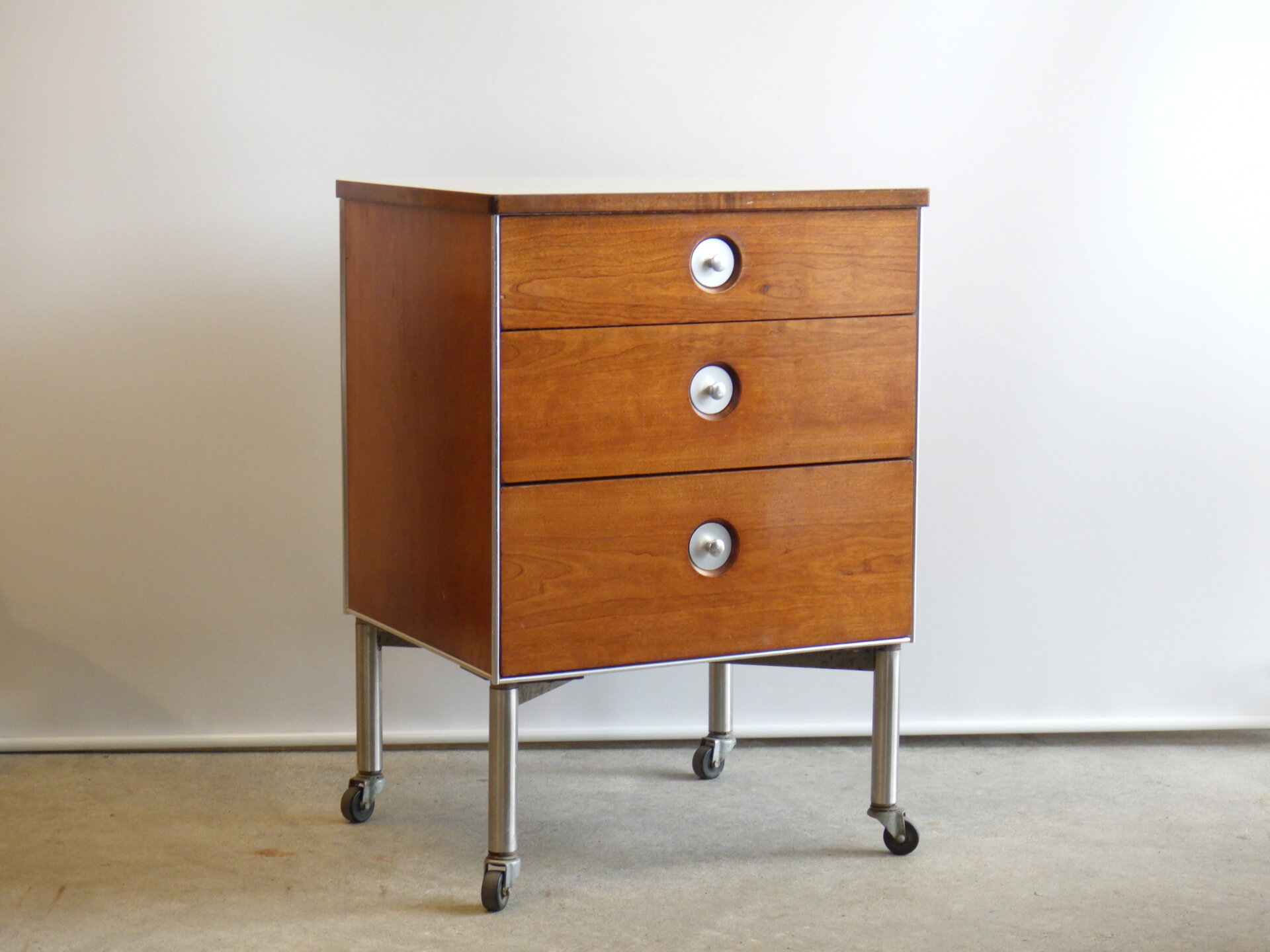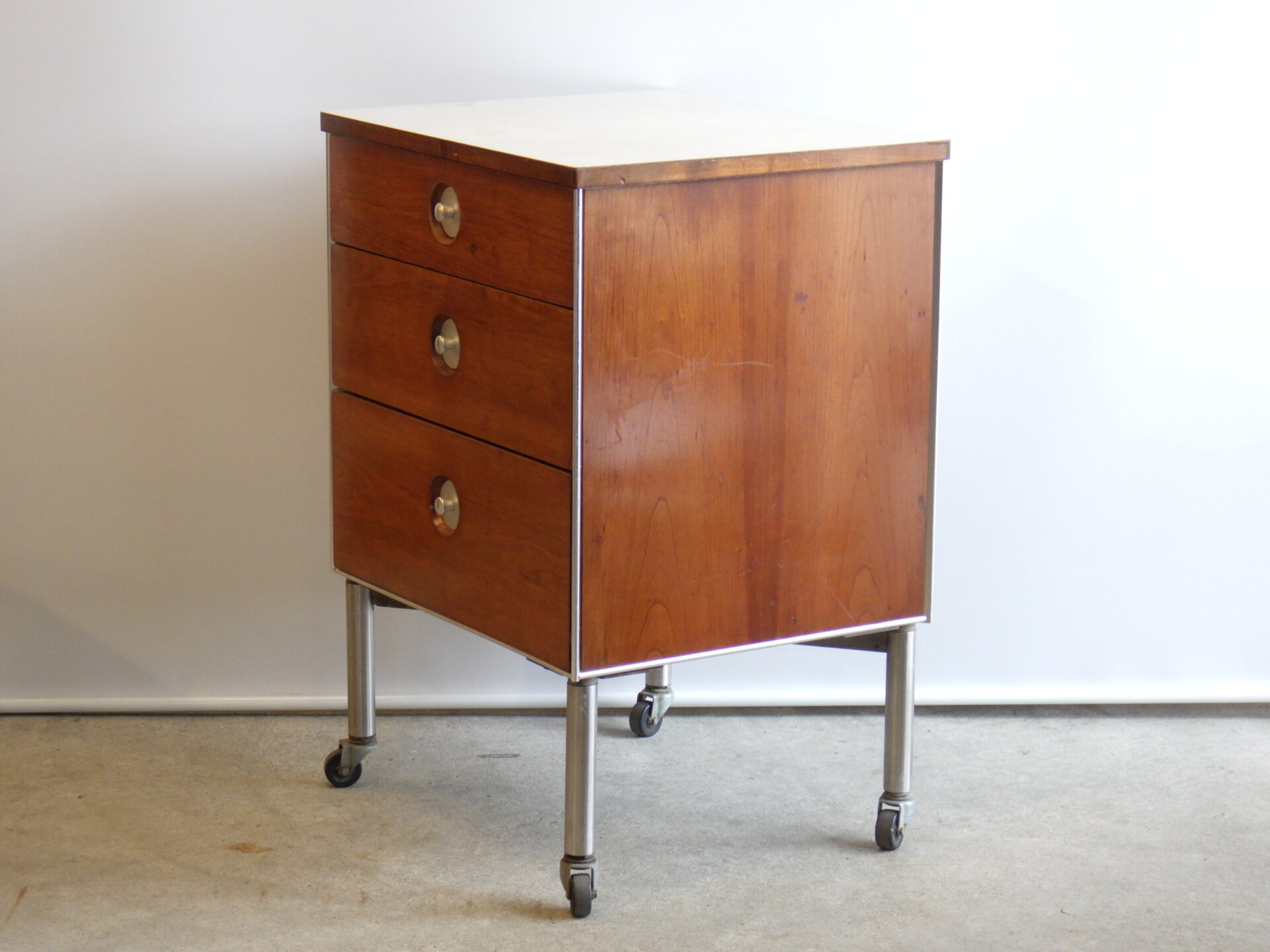 - “Hill-Rom” Vintage Nightstand By Raymond Loewy ビンテージ ナイトスタンド 三段キャビネット
