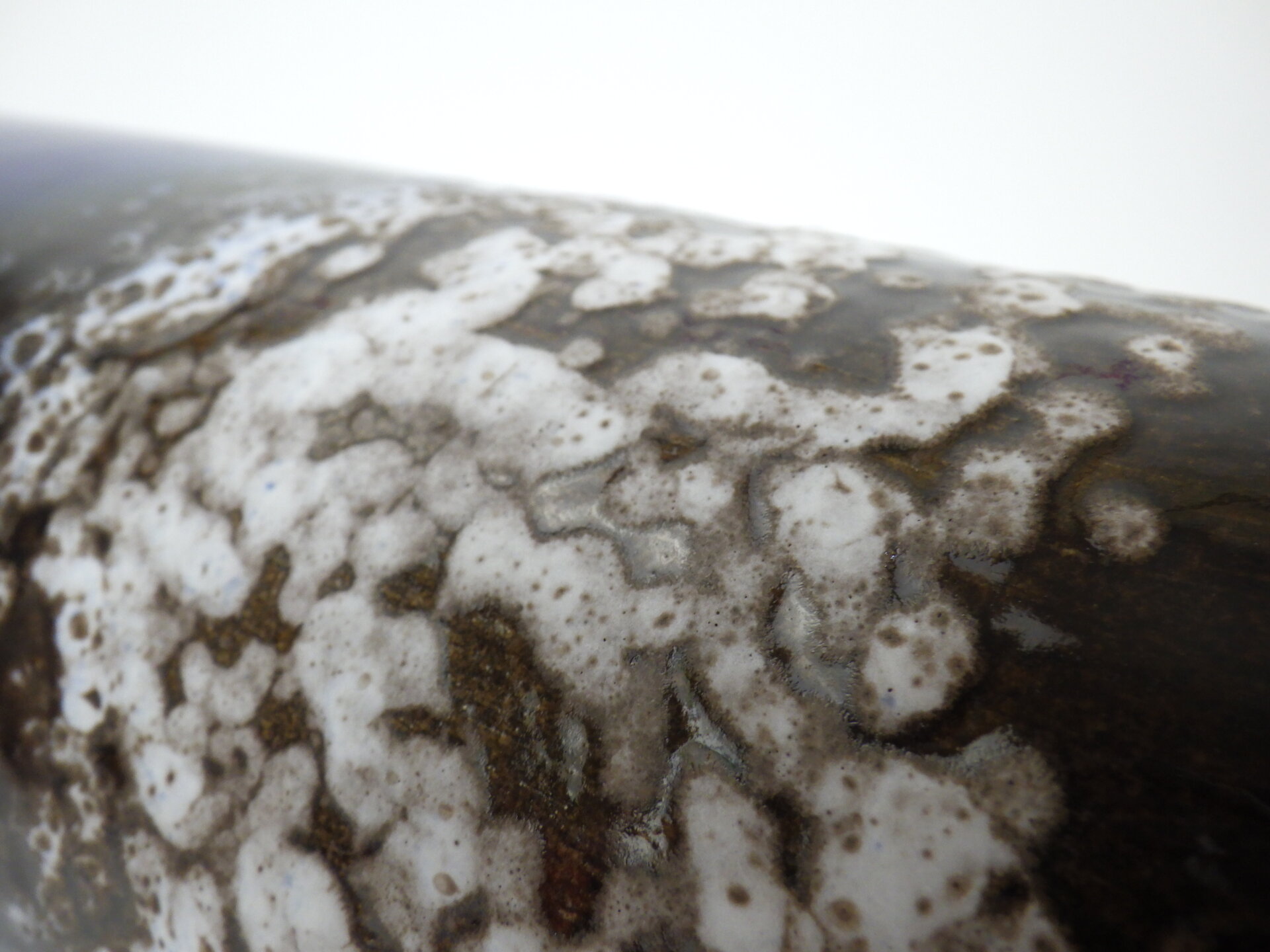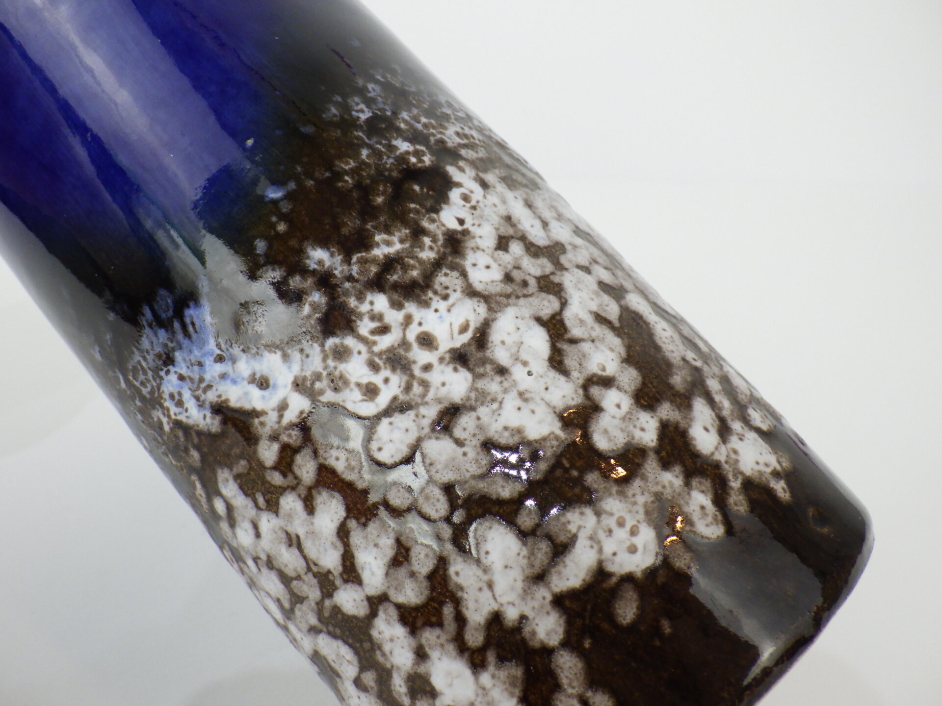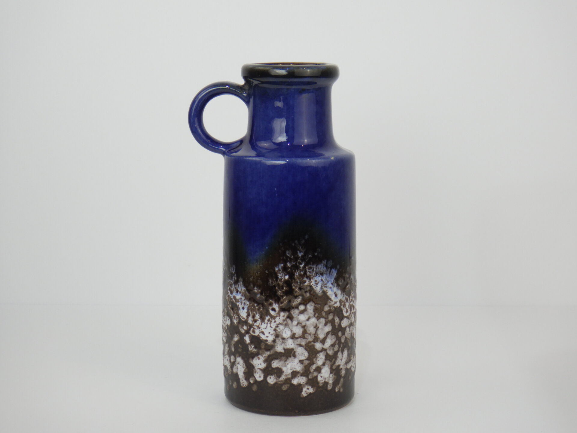 | ヨーロッパで買い付けました。 西ドイツ製、「Scheurich」のフラワーベースです。 「Fat Lava」「German Art Pottery」と呼ばれるこの時代のドイツの陶器は、多くが職人による手作業で製作されており、同じシリーズでも一つとして同じ表情の物が存在しません。 Scheurichはドイツの陶器メーカの中でも、最もメジャーだったメーカーの一つです。 深みのあるコバルトブルーの釉薬が上部を覆い、下部には泡立つ溶岩のような質感のホワイト×ブラウンのグラデーションが美しく流れています。 この「泡立ち」や「流れ」を活かした釉薬表現は、西ドイツ陶器の中でも特に人気が高く、職人の偶然性と計算が絶妙に融合した一点ものの魅力を放ちます。 北欧モダンやUSミッドセンチュリー家具との相性も抜群で、花を活けずともオブジェの様に飾って楽しむのもおすすめしています。 |