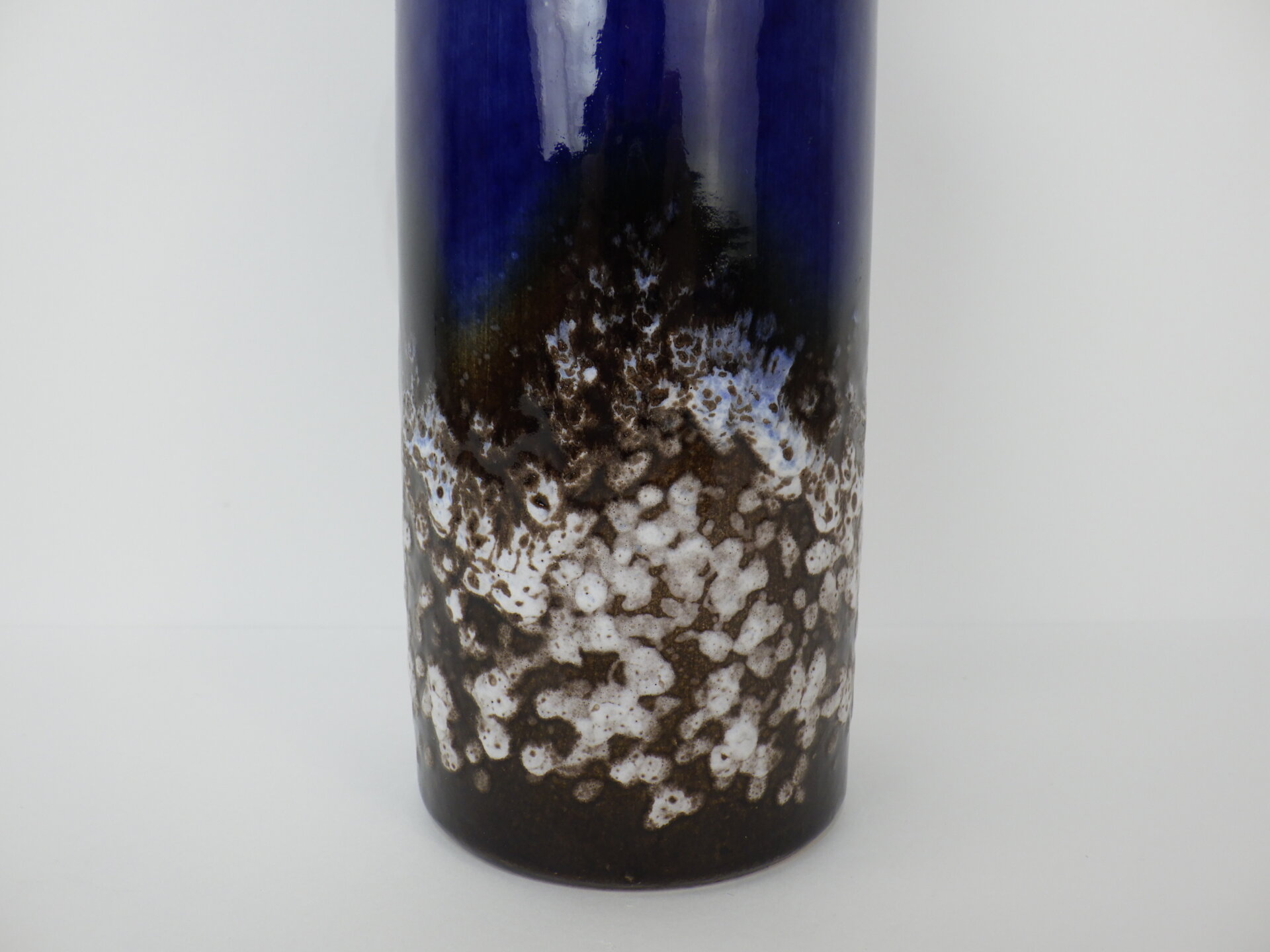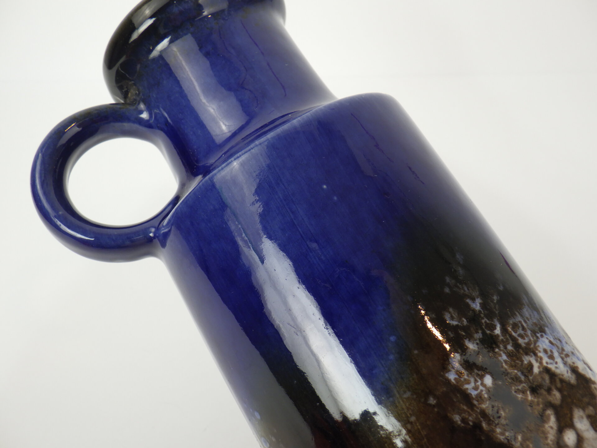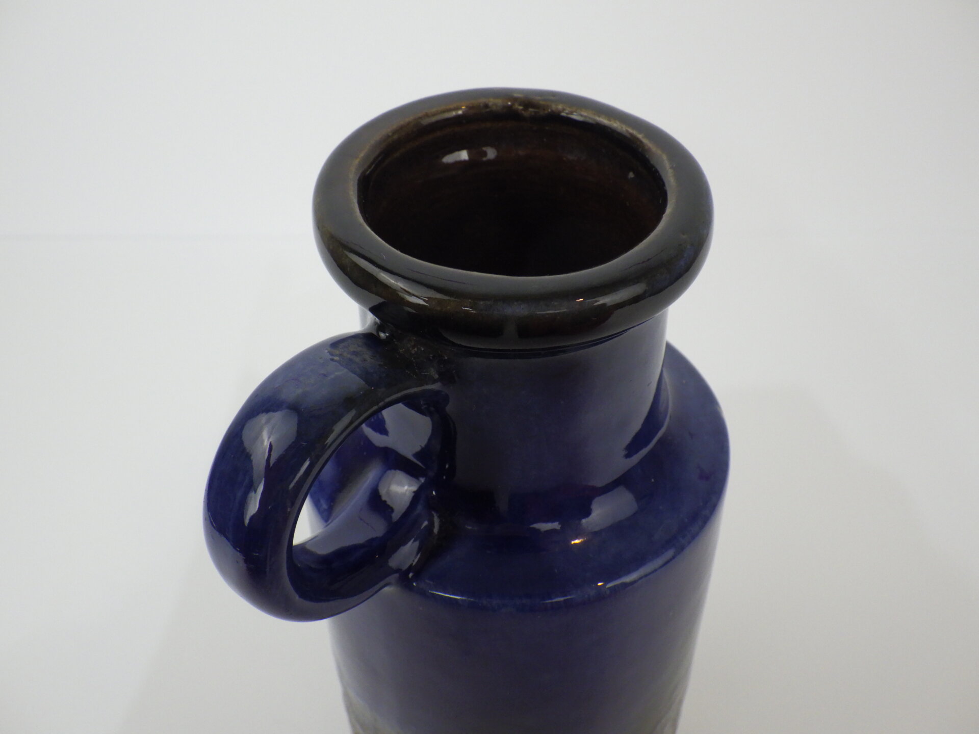 | ヨーロッパで買い付けました。 西ドイツ製、「Scheurich」のフラワーベースです。 「Fat Lava」「German Art Pottery」と呼ばれるこの時代のドイツの陶器は、多くが職人による手作業で製作されており、同じシリーズでも一つとして同じ表情の物が存在しません。 Scheurichはドイツの陶器メーカの中でも、最もメジャーだったメーカーの一つです。 深みのあるコバルトブルーの釉薬が上部を覆い、下部には泡立つ溶岩のような質感のホワイト×ブラウンのグラデーションが美しく流れています。 この「泡立ち」や「流れ」を活かした釉薬表現は、西ドイツ陶器の中でも特に人気が高く、職人の偶然性と計算が絶妙に融合した一点ものの魅力を放ちます。 北欧モダンやUSミッドセンチュリー家具との相性も抜群で、花を活けずともオブジェの様に飾って楽しむのもおすすめしています。 |