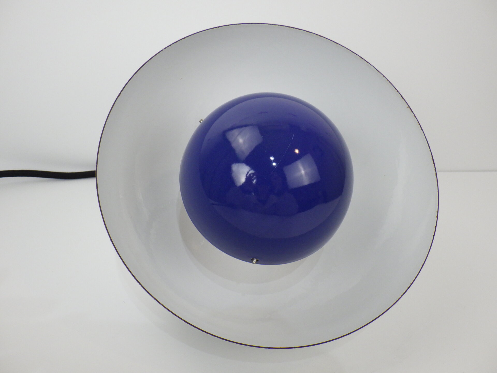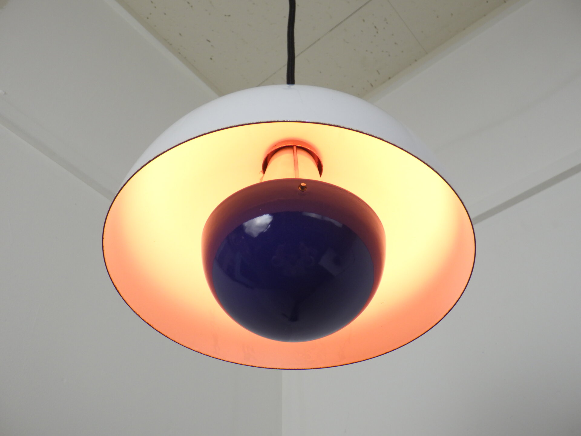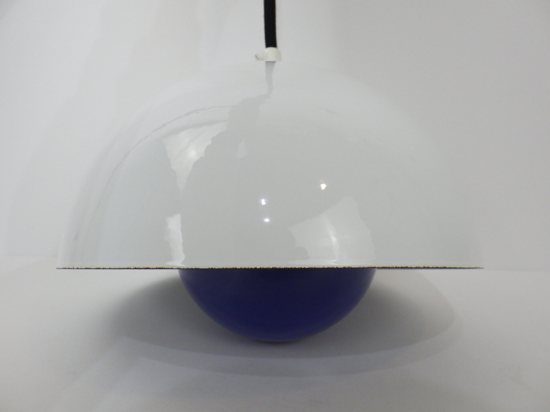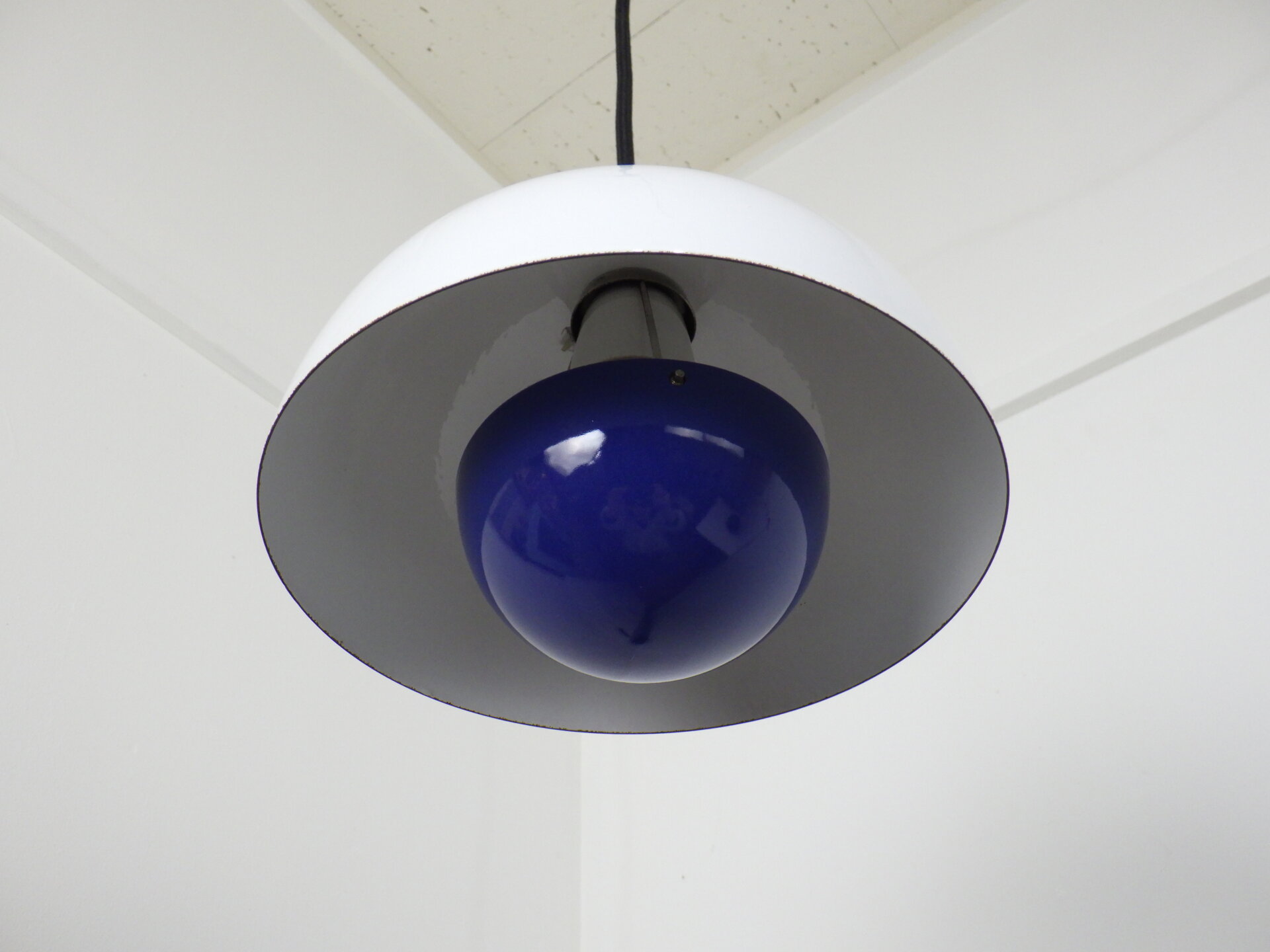| デンマークで買い付けました。 Verner Panton(ヴェルナー・パントン)デザイン、Louis Poulsen(ルイスポールセン)社から発表されたフラワーポット ペンダントランプです。 何度も復刻されていますが、こちらはエナメル製のビンテージ。 半球を組み合わせたシンプルな幾何学状が、ミッドセンチュリーから現代のインテリアまで自然に溶け込み、空間をスタイリッシュに引き締めてくれます。 また、下部の半球の内側にはオレンジの塗装がされているため、灯りを灯すと上部のシェードに反射してほんのり色づきます。 ただの照明としてではなく、アートを飾るような感覚で照明を楽しみたい方におすすめのアイテムです。 |