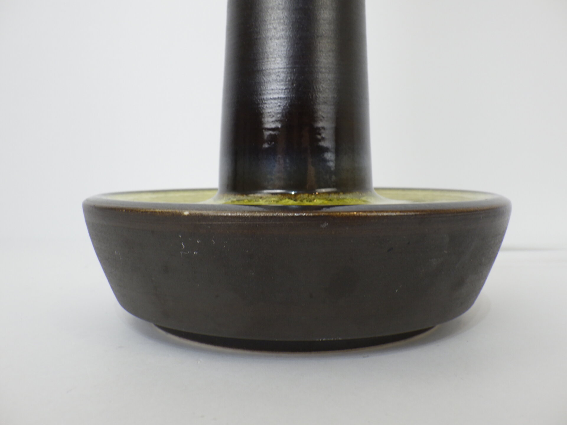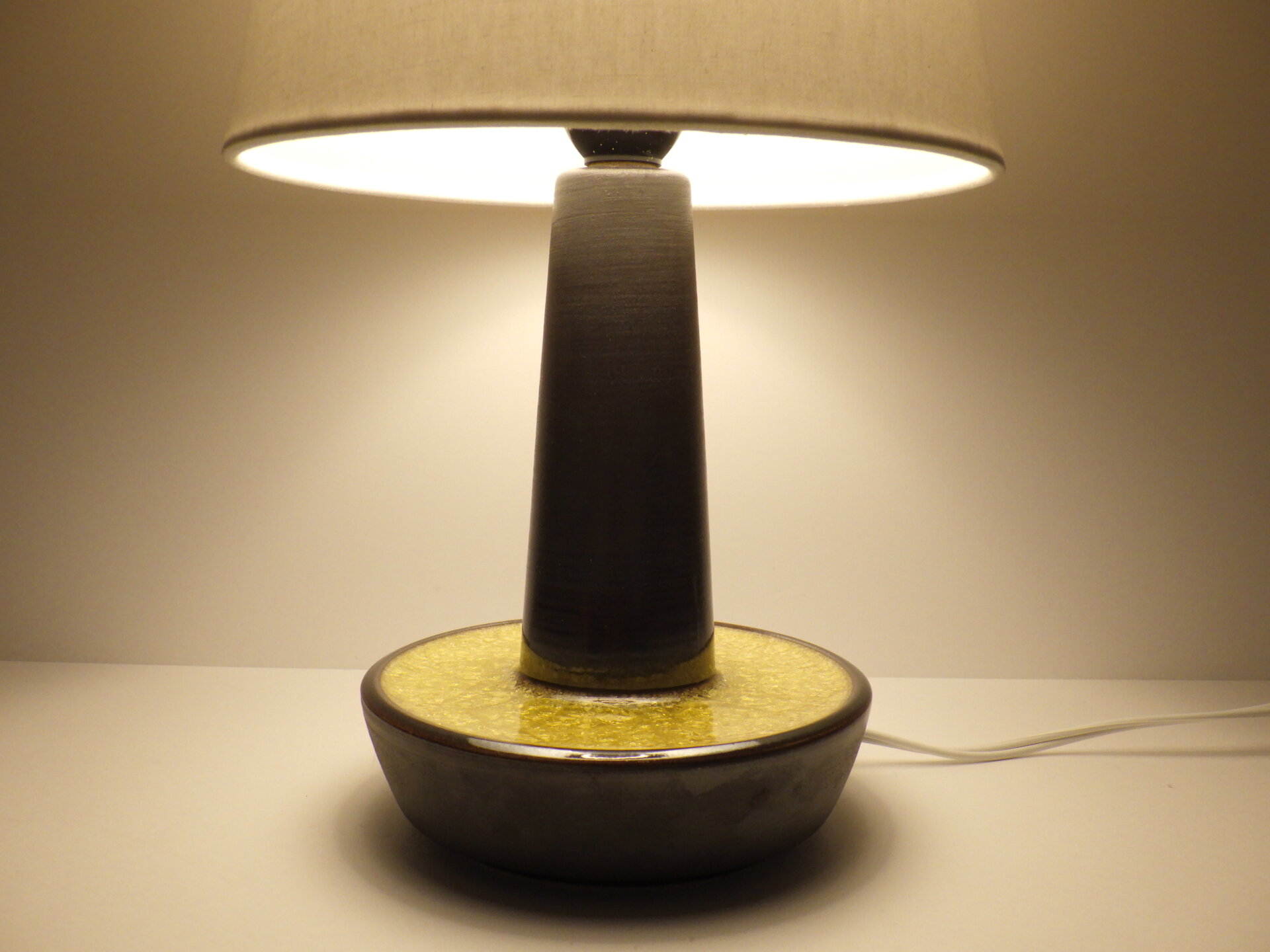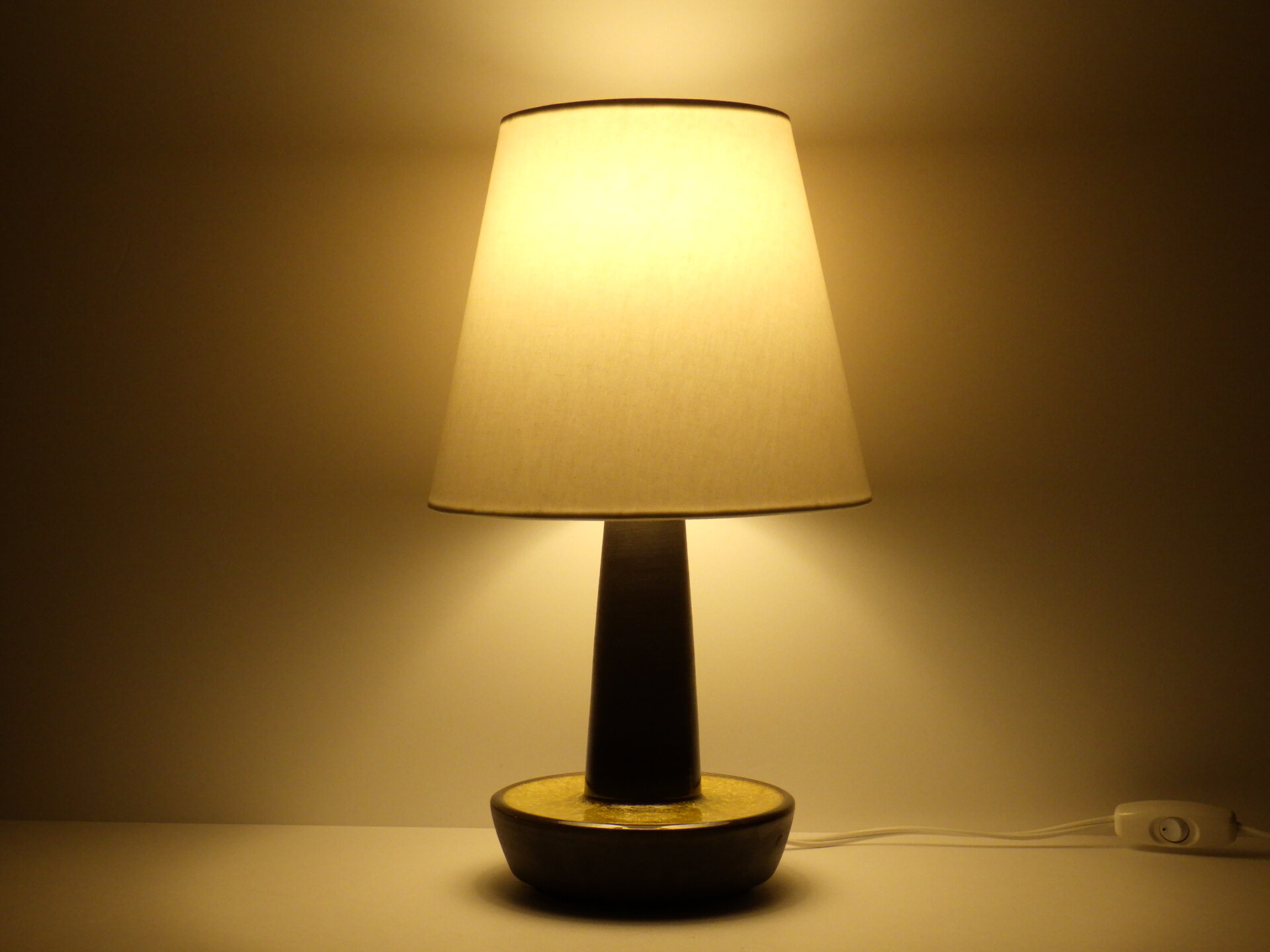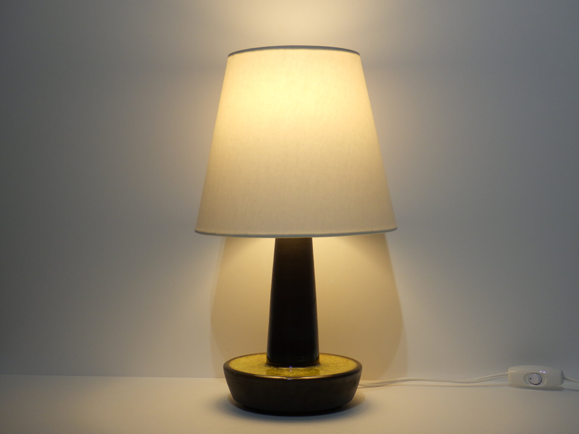 | ヨーロッパで買い付けました。 デンマーク、ボーンホルム島で1835年に創業した「Soholm」のテーブルランプです。 安定感のあるフラットな土台に細く立ち上がるネック、イエローのガラス質の釉薬。 スーホルムの中では大変珍しい釉薬デザインですが、ネックと土台側面はざらりとした質感を残しており、北欧の陶器らしい土っぽさも存分に味わえる逸品。 土のあたたかみを残しつつもモダンな佇まいなので、北欧インテリアはもちろん、USミッドセンチュリーや和の空間にも自然に溶け込みます。 小ぶりながらも存在感があり、置くだけで空間の温度が一段上がるような、北欧陶器ならではの質感と美しさが際立つランプですね。 コード部分のスイッチでON/OFFが切り替えられます。 (電球の口金サイズ:E26 LED対応) |