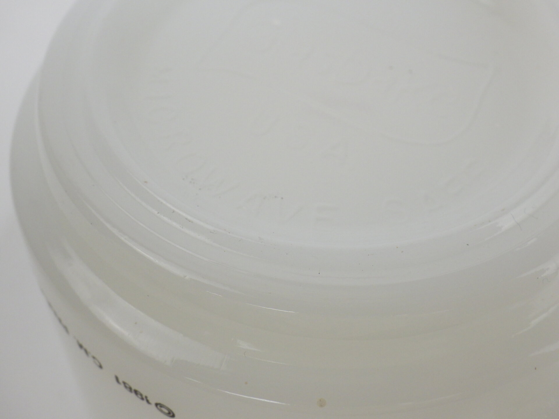 | condition | 製造時よりのインク着色があります。 経年によるわずかな汚れがあります。 その他、ガラスの凹凸、がたつき、ヘアライン、劣化線、気泡痕などありますが、ミルクガラス特有のもので製品仕様の範疇です。 |