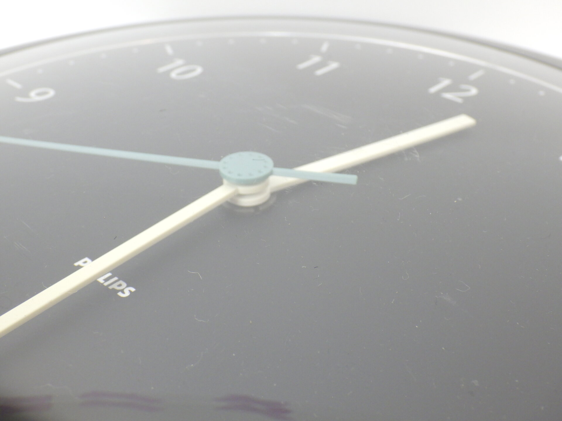 | ヨーロッパで買い付けました。 PHILIPS社製、ビンテージ壁掛け時計です。 PHILIPSは電気シェーバーや照明、オーディオ、家電など幅広く手掛けてきたオランダの総合電機メーカーです。 (こちらはドイツ工場製造と思われます) 1950~80年代には壁掛け時計、置時計、ラジオ付き時計なども多く製造していました。 こちらの時計は視認性を優先した文字盤設計で、家電メーカーらしい無駄をそぎ落とした実用性重視のプロダクト思想が見て取れますが、秒針のカラーリングからは80年代らしさも感じられる一品です。 リビングやワークスペースを引き締める、実用性とデザイン性を兼ね揃えた一点です。 |