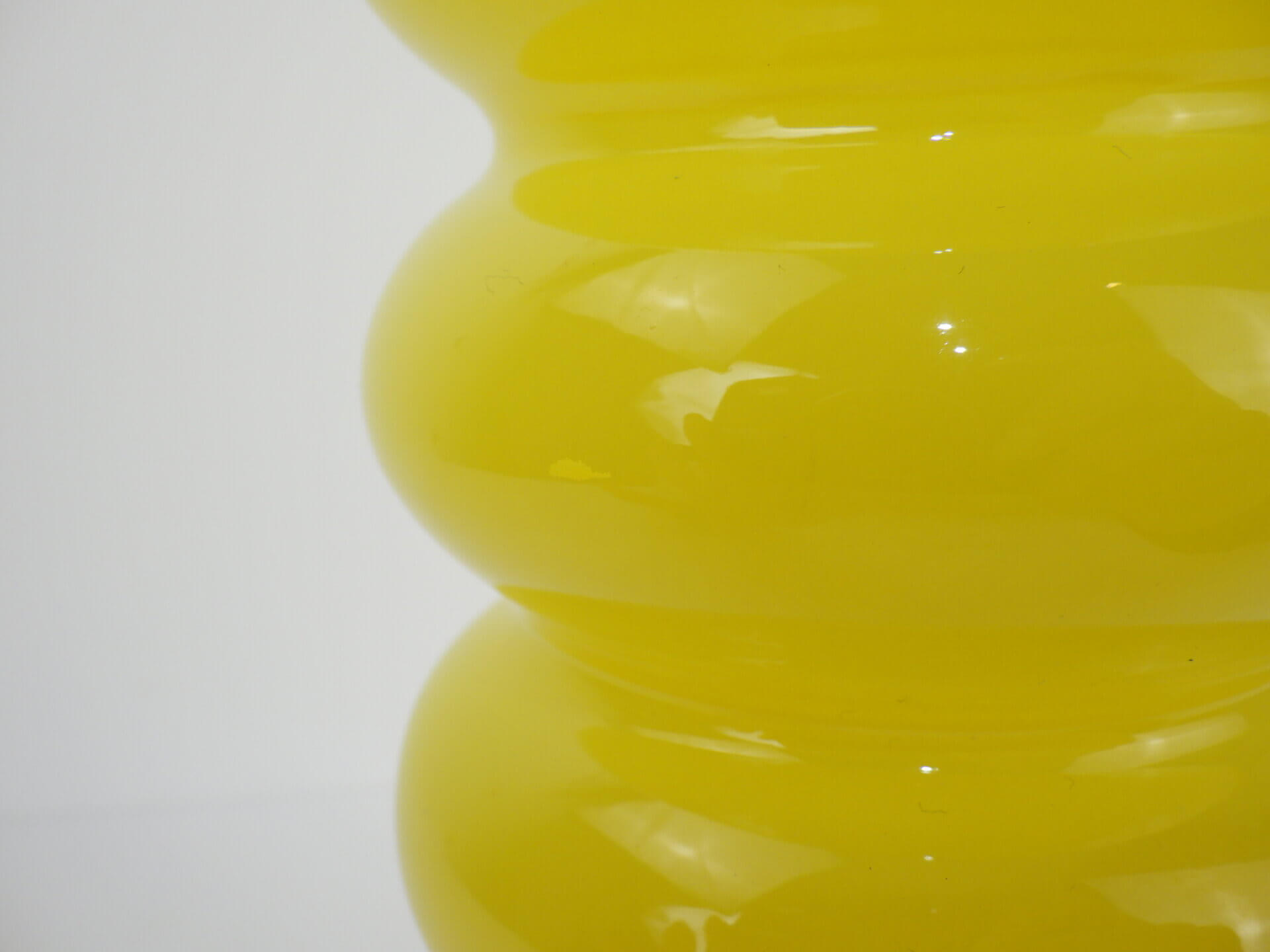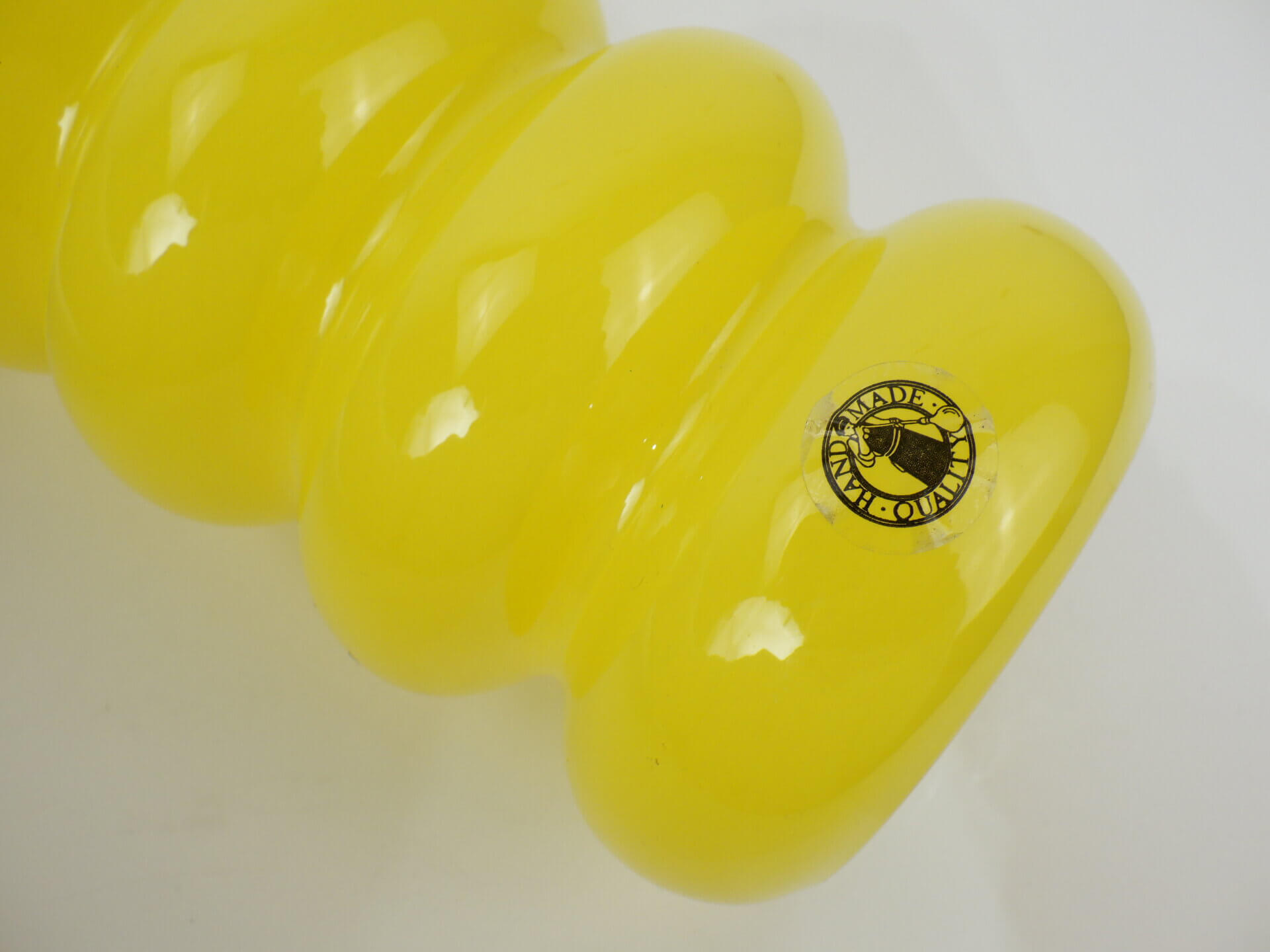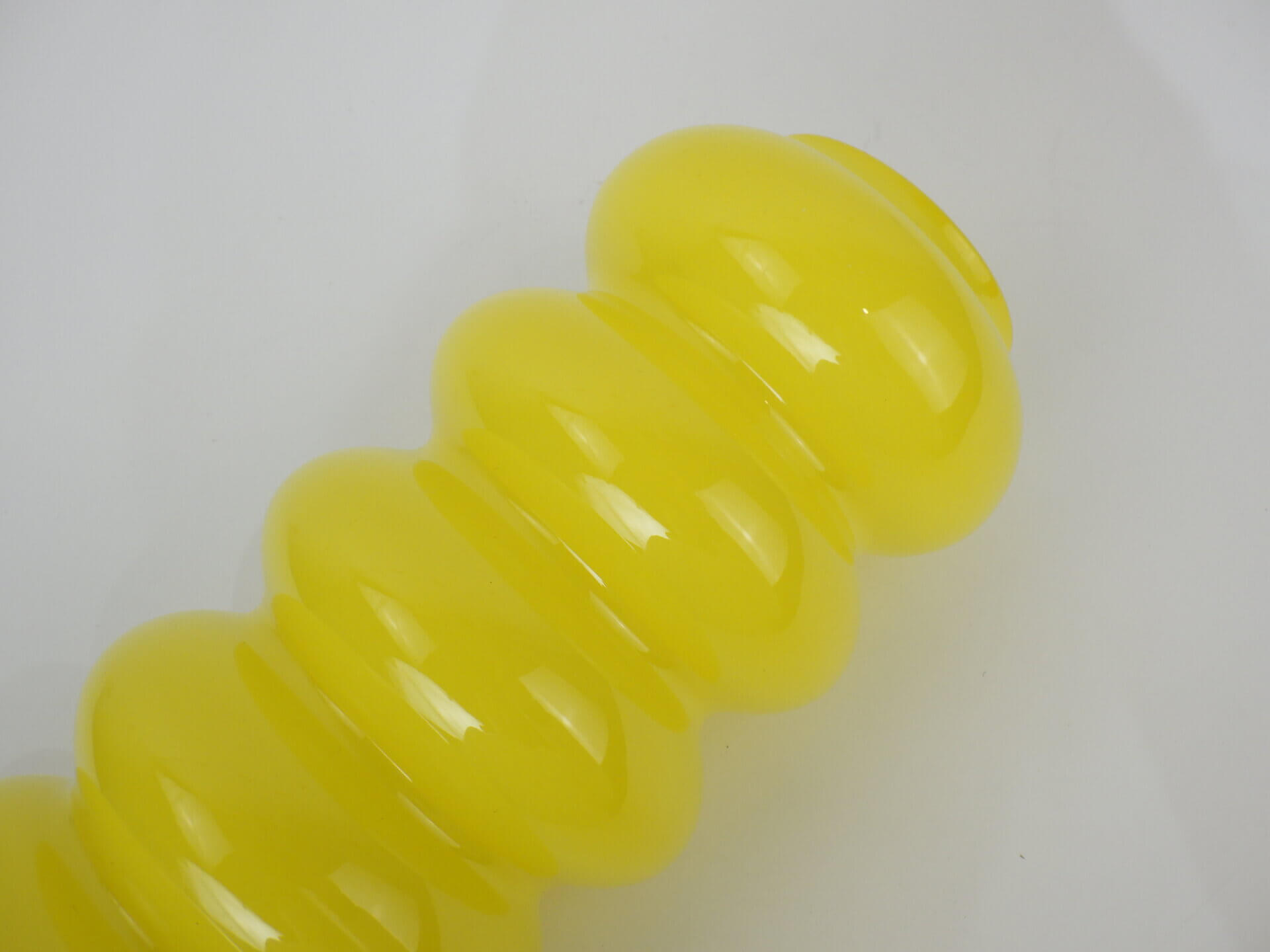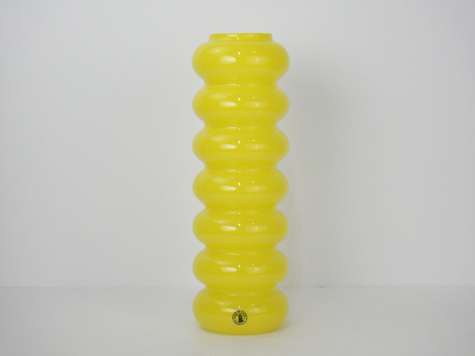 | アメリカで買い付けました。 Anne Nilsson(アン 二ルソン)がIKEAのために手掛けたビンテージのフラワーベース「SOLSTRALE」です。 鮮やかなイエローが目を惹く、存在感のあるガラスベース。 リズミカルに連なるフォルムは、彫刻作品のような立体感があり、置くだけで空間にモダンなアクセントを与えてくれます。 シンプルな空間に一点取り入れるだけで、色、造形、光が交差する、洗練されたムードを演出してくれる花瓶です。 |
