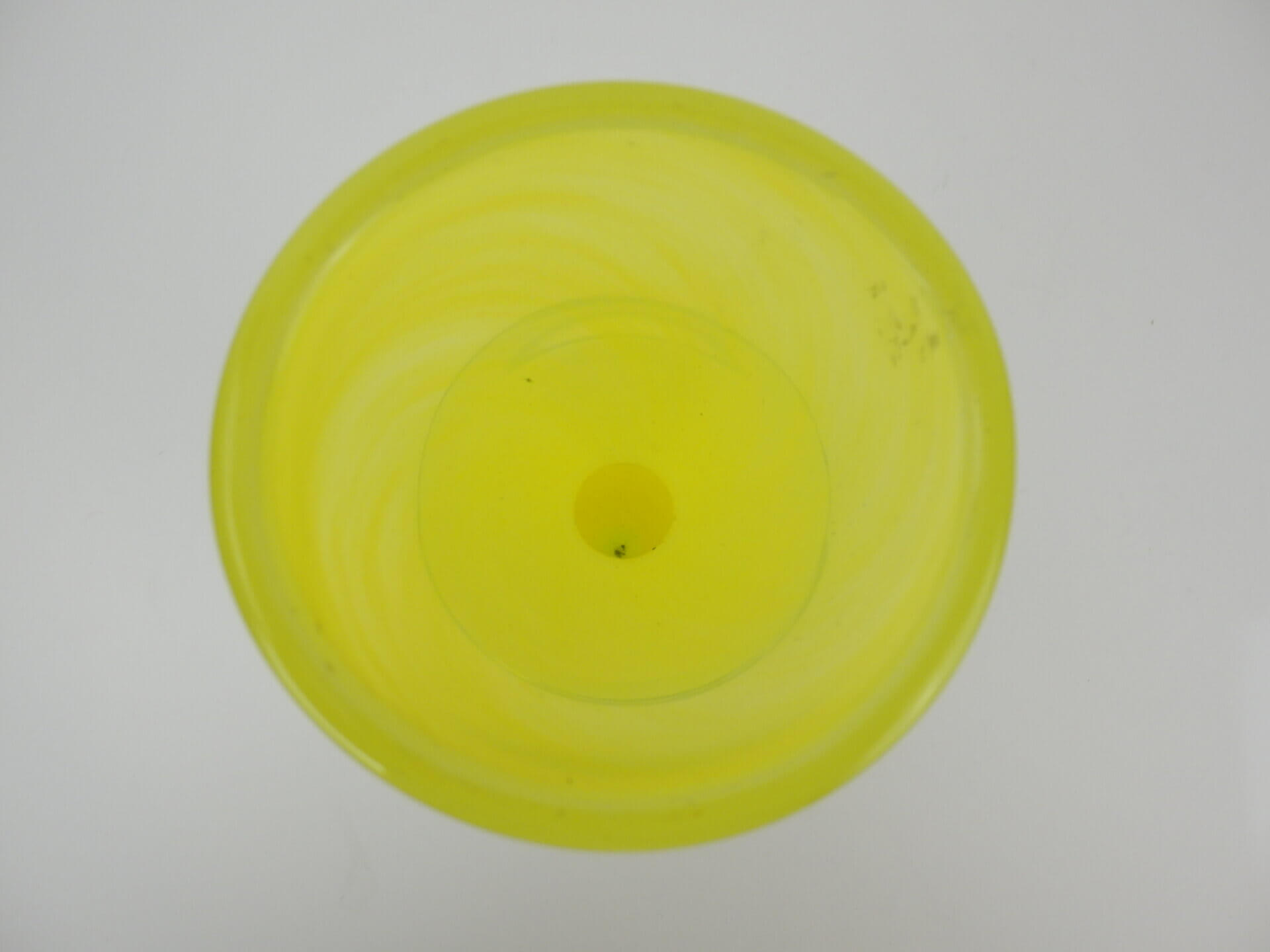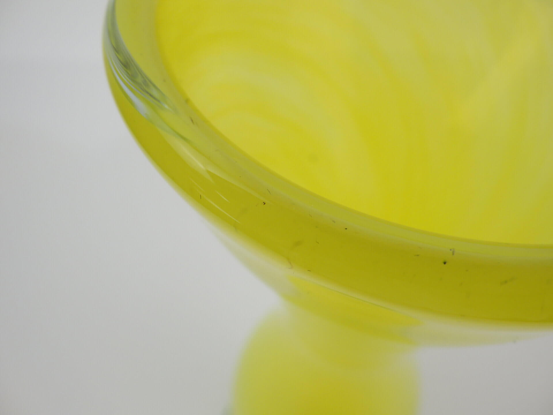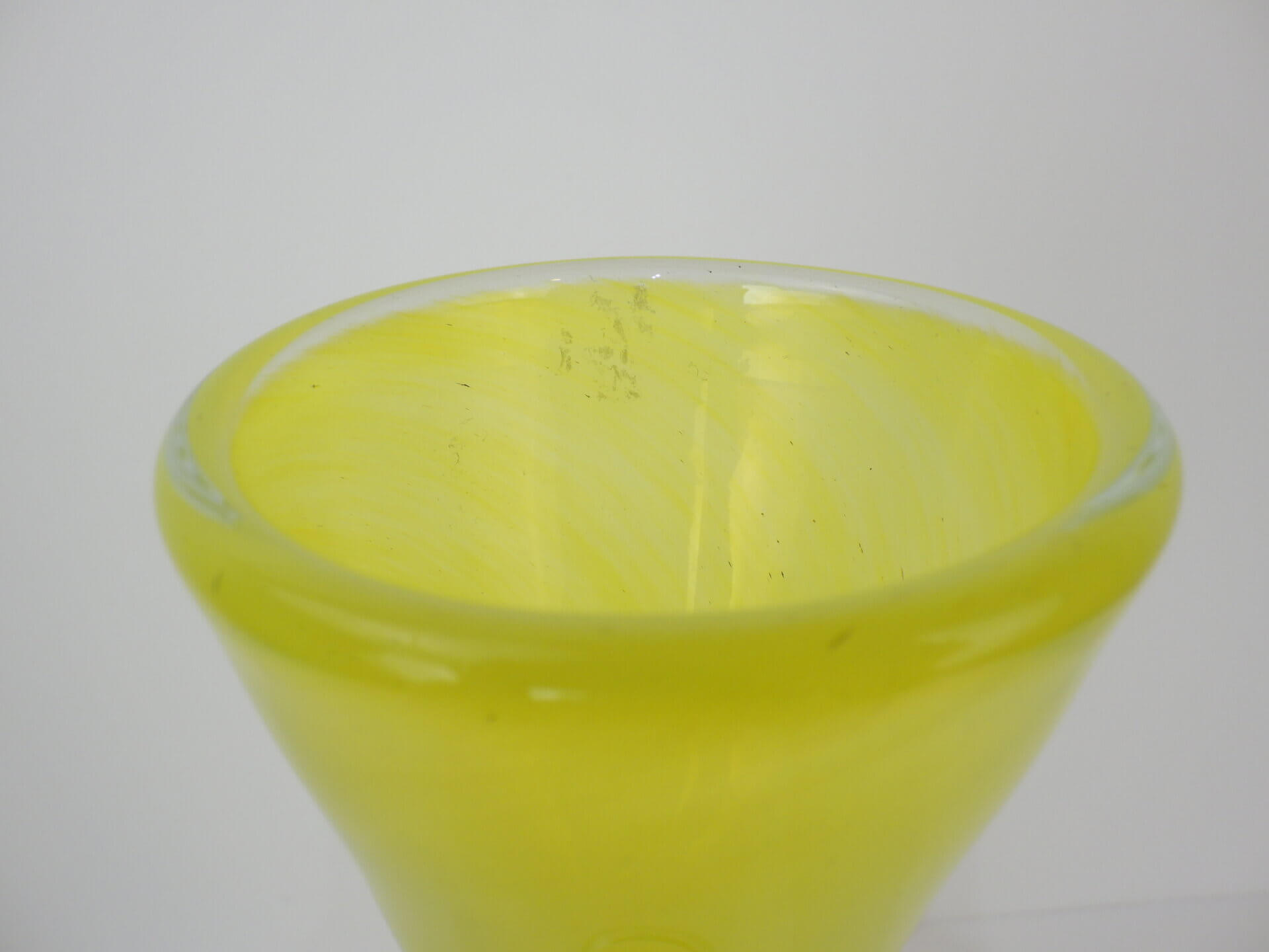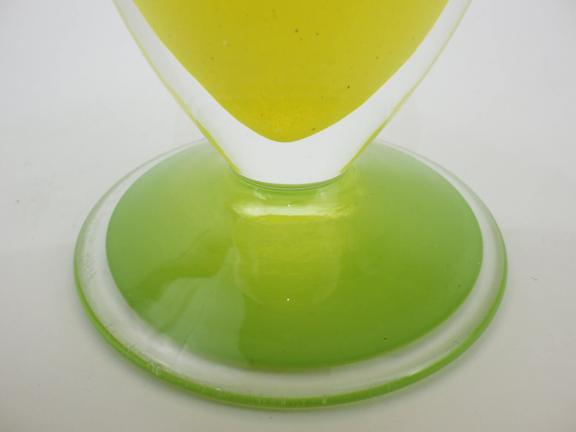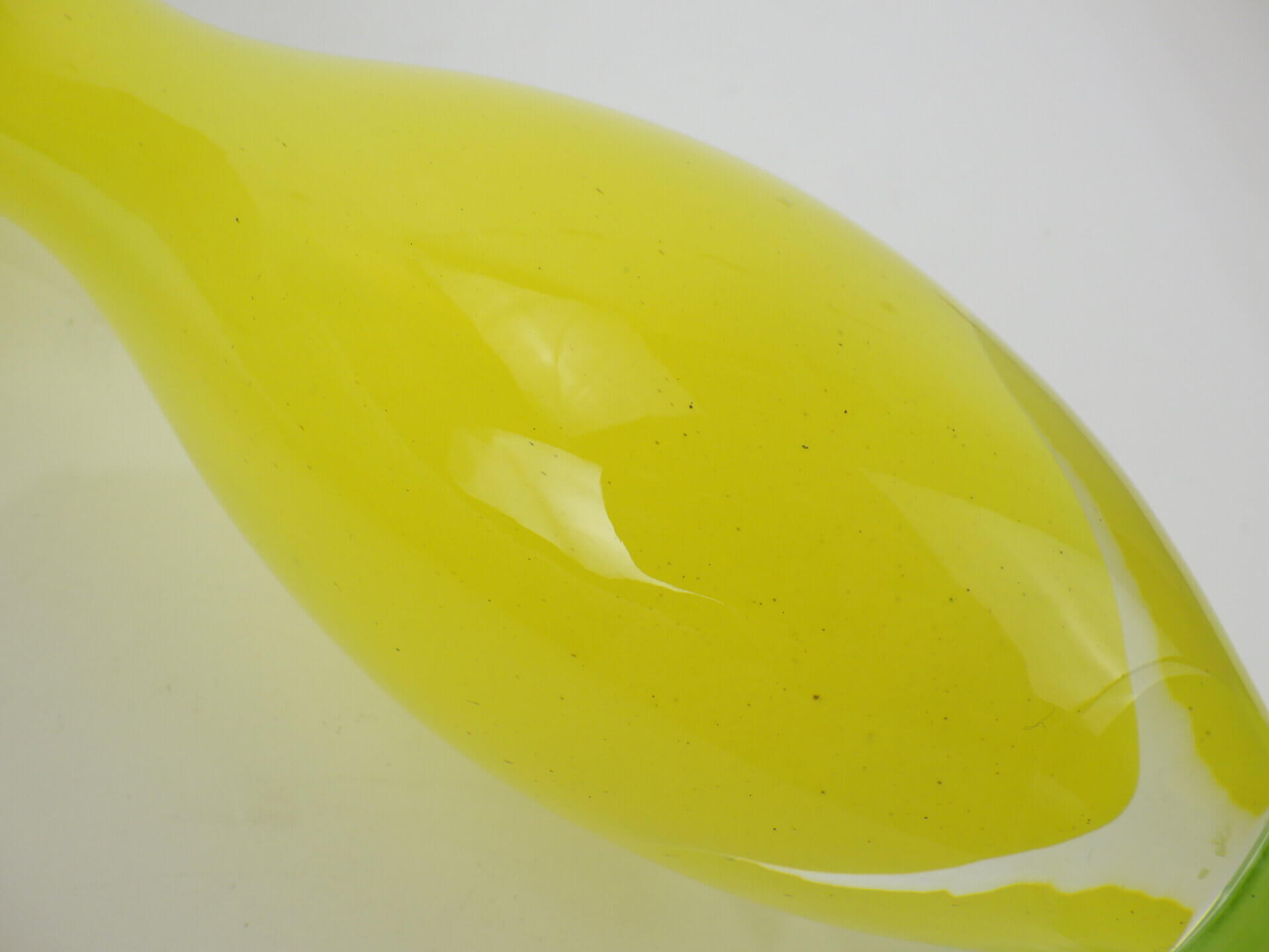 | ヨーロッパで買い付けました。 スウェーデン王室御用達の老舗ガラスブランド「Kosta Boda」のフラワーベースです。 デザインはスウェーデンのガラスデザインを牽引してきた代表的デザイナーの一人、Gunnel Sahlimによるもの。 くびれのあるシルエットと安定感のある台座のバランスが大胆ながらも美しいアイテム。 本体部分のイエローはよく見ると流れるような色の入り方をしており、黒い細かな斑点も。 光の入り方や見る角度によって深みや印象が変わって見えます。 台座部分はライムグリーンに近いカラーです。 インテリアに少し大胆にアクセントを加えたい方にピッタリの一点ですね。 |