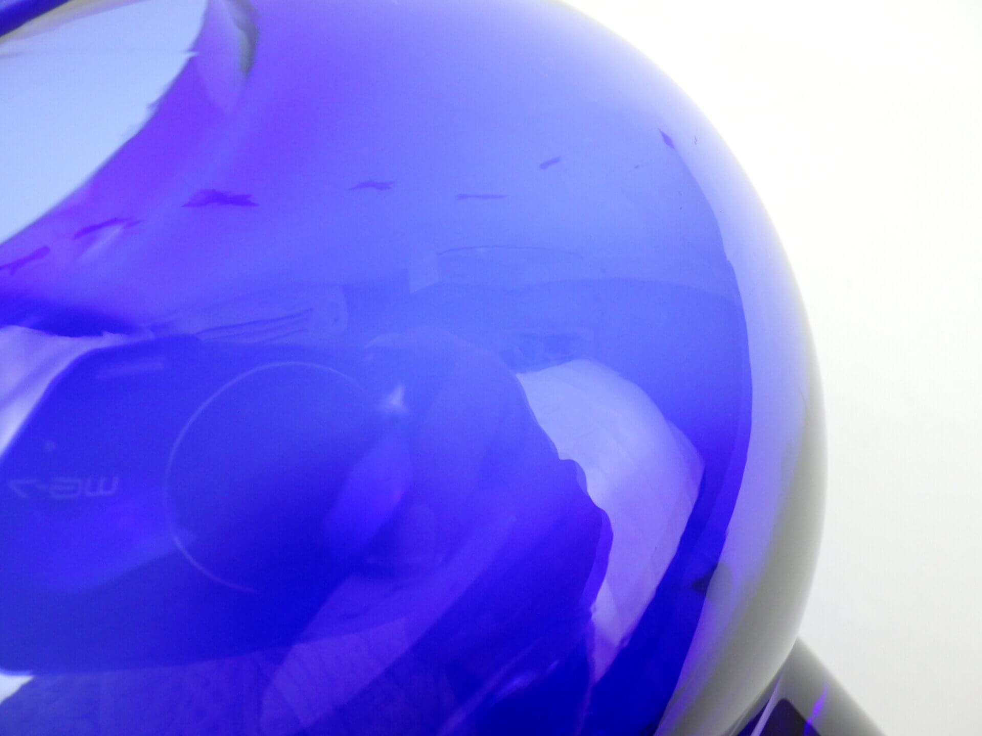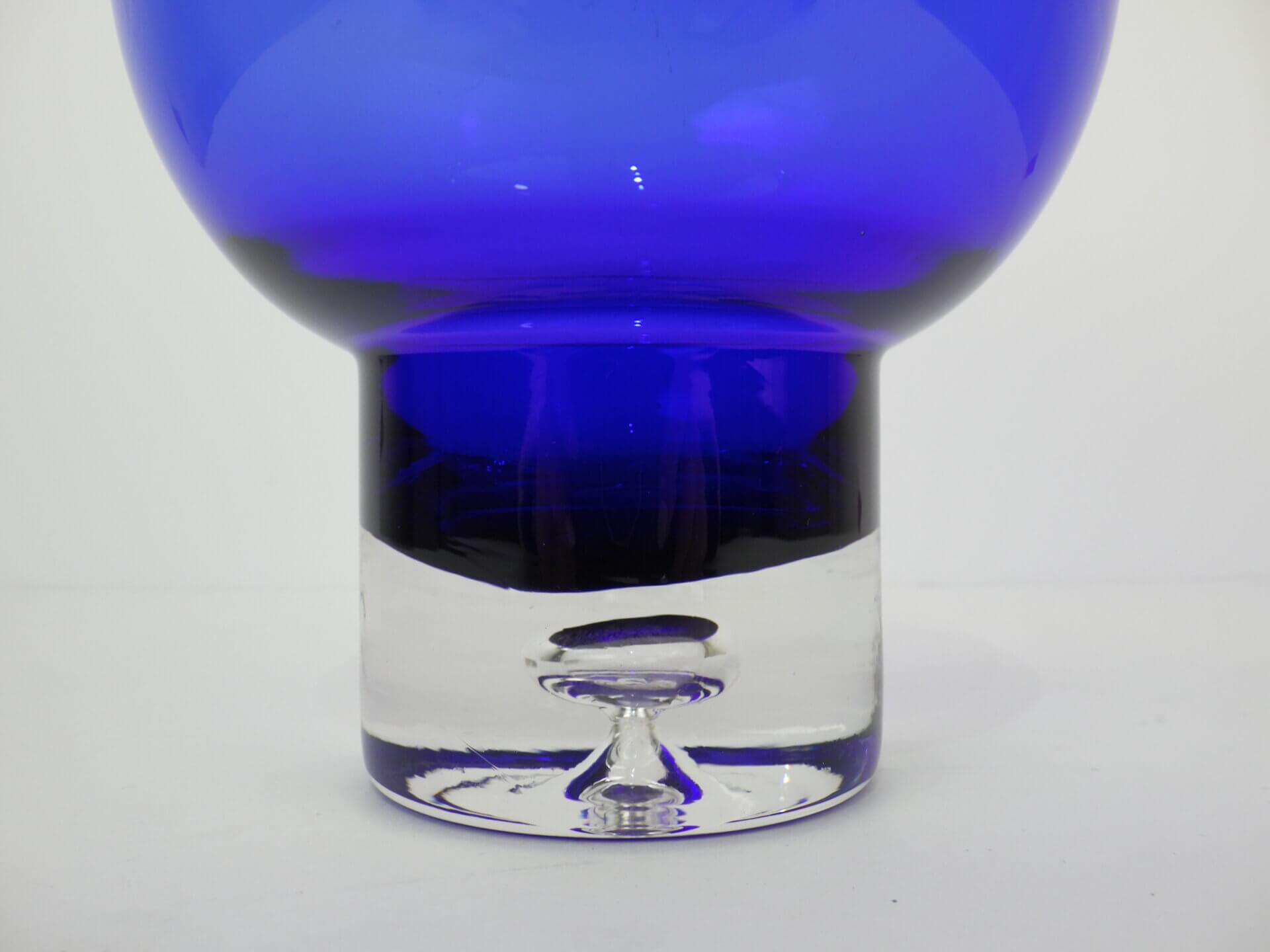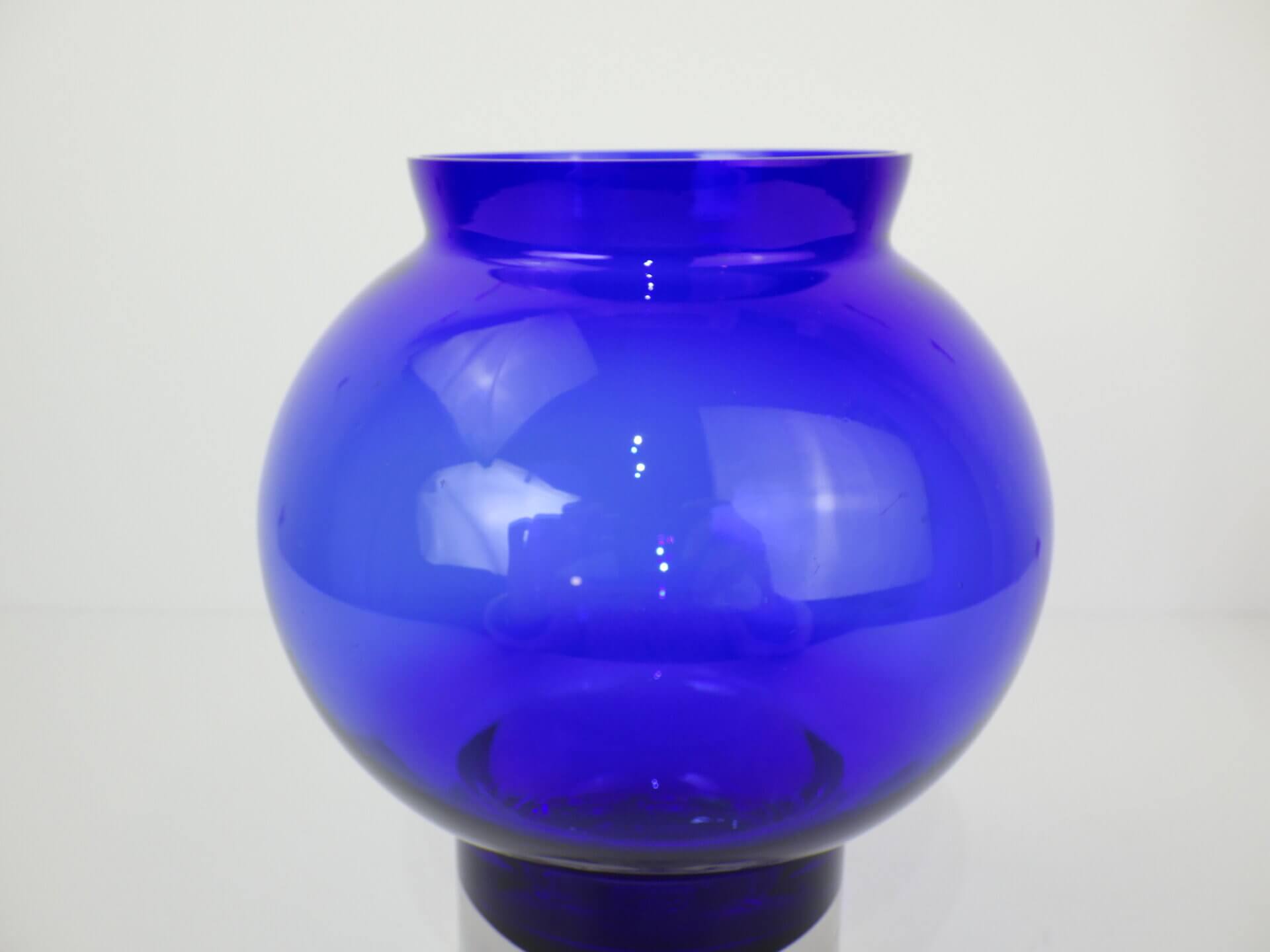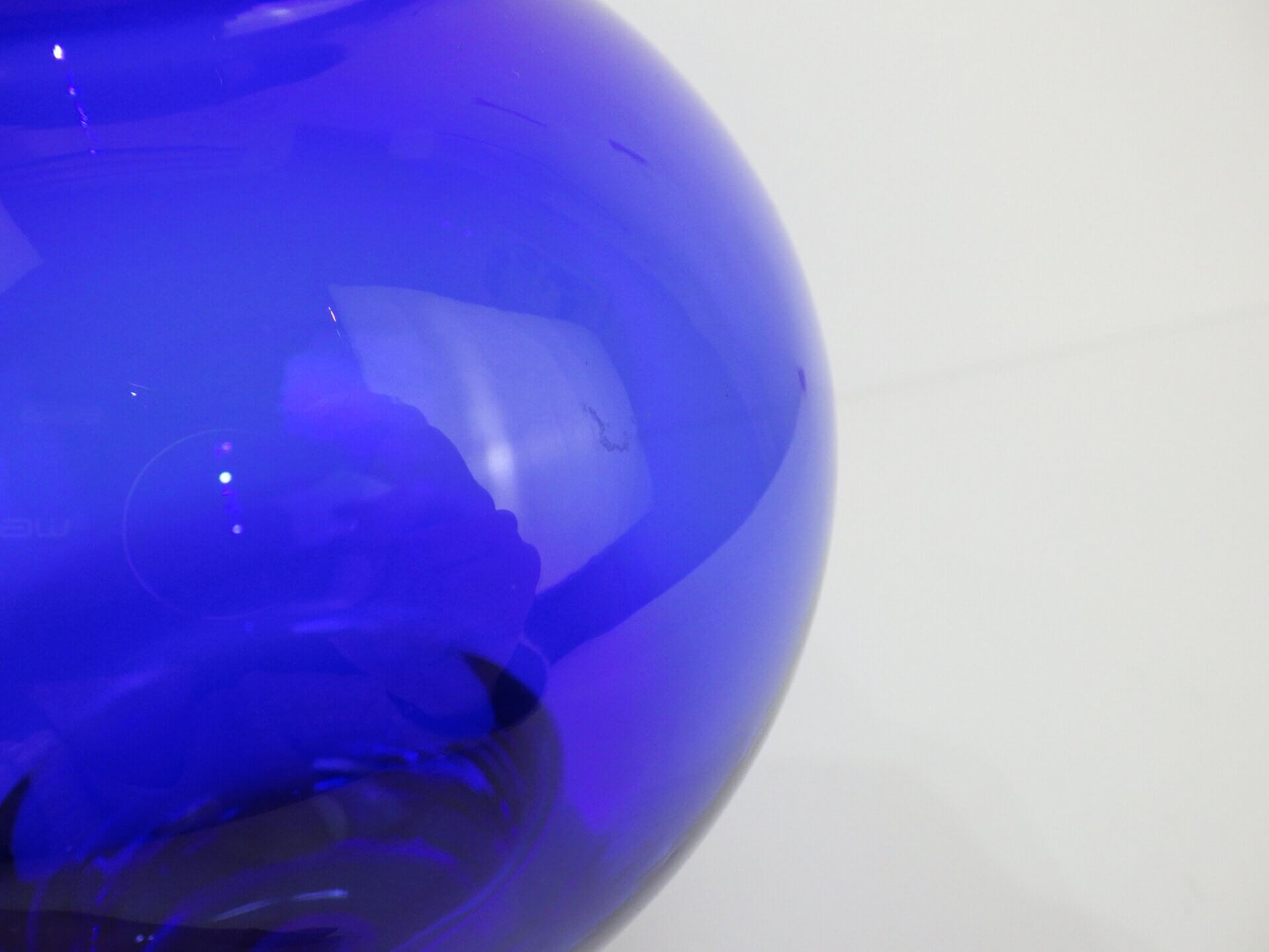 | アメリカで買い付けました。 ビンテージのフラワーベースです。 深いブルーと無色透明の台座部分のコントラストが非常に美しく、まるで宙に浮いているかのような視覚効果を生み出します。 ミッドセンチュリー期の北欧、アメリカのアートガラスに共通する、「実用品と彫刻の中間」のような思想を感じさせる佇まい。 枝物などを添えてみても良さそうですし、何も入れずにアートオブジェとして飾って楽しむのにもおすすめです。 |