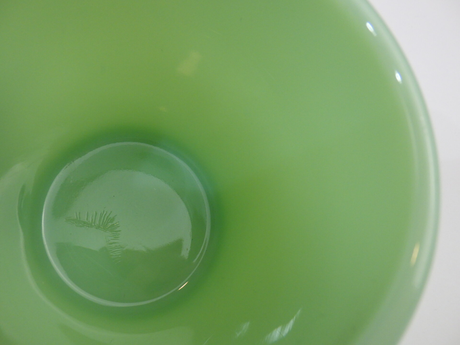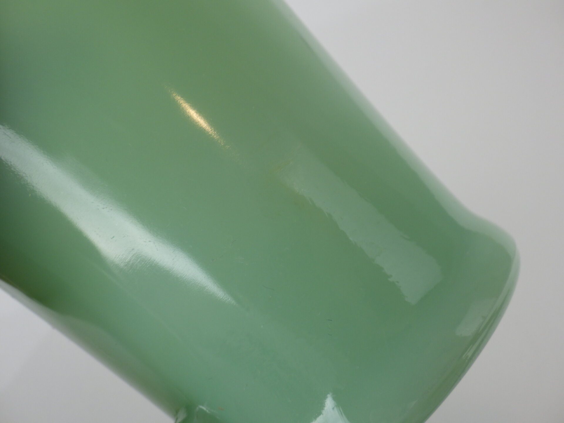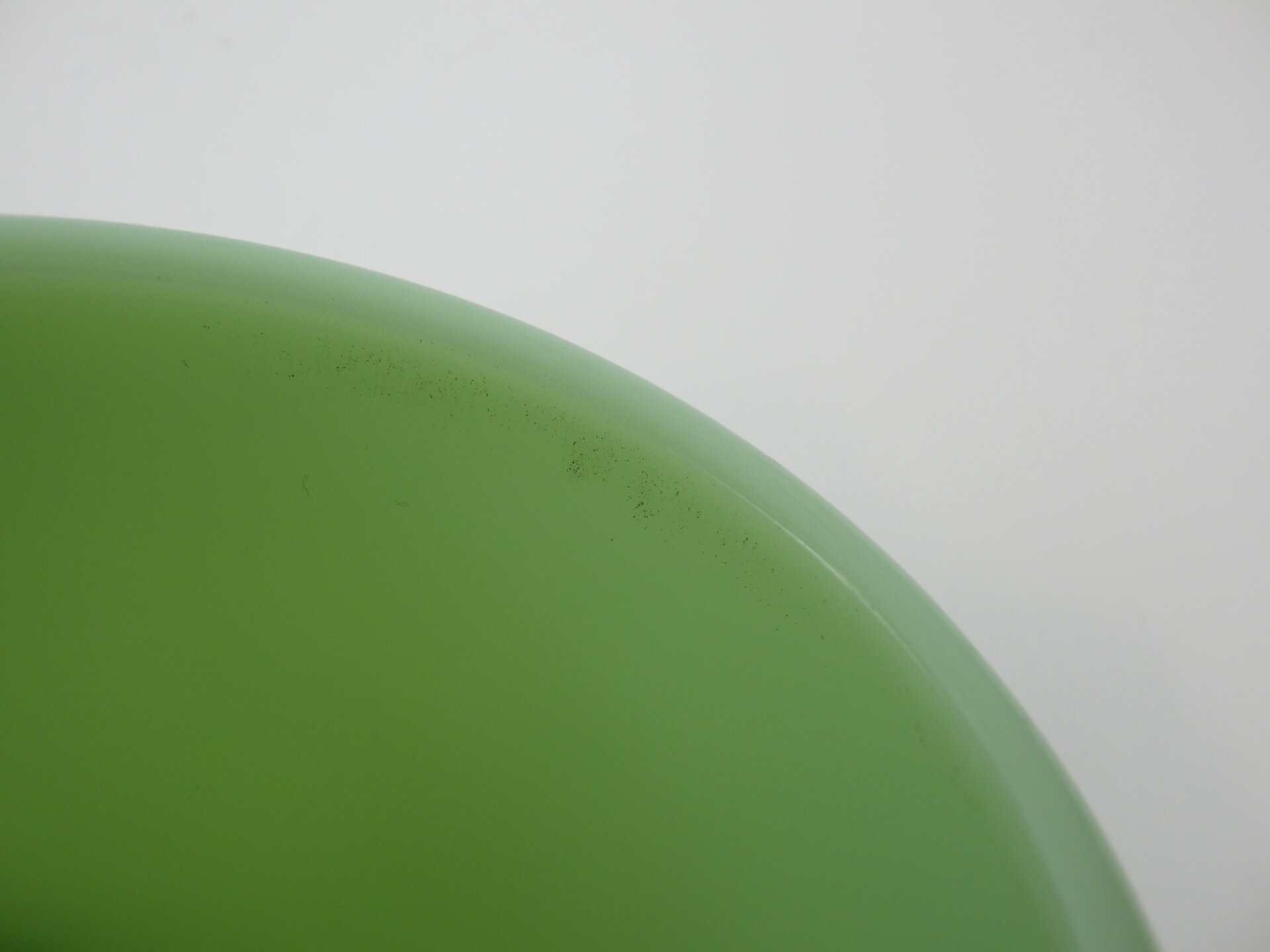 | condition | リム、ボトムにわずかなスレ、着色があります。 ボトムに小さなチップ(ぶつかり痕)があります。 側面にわずかな金属痕があります。 ミルクガラス特有の製造時よりのヘアライン、劣化線、ホワイトスポット、ガラスのヨレなどあります。 全体的にはツヤもあり、ビンテージらしい良い雰囲気です。 不明な点や追加画像の必要な場合は、お気軽にお問い合わせ下さい。 |