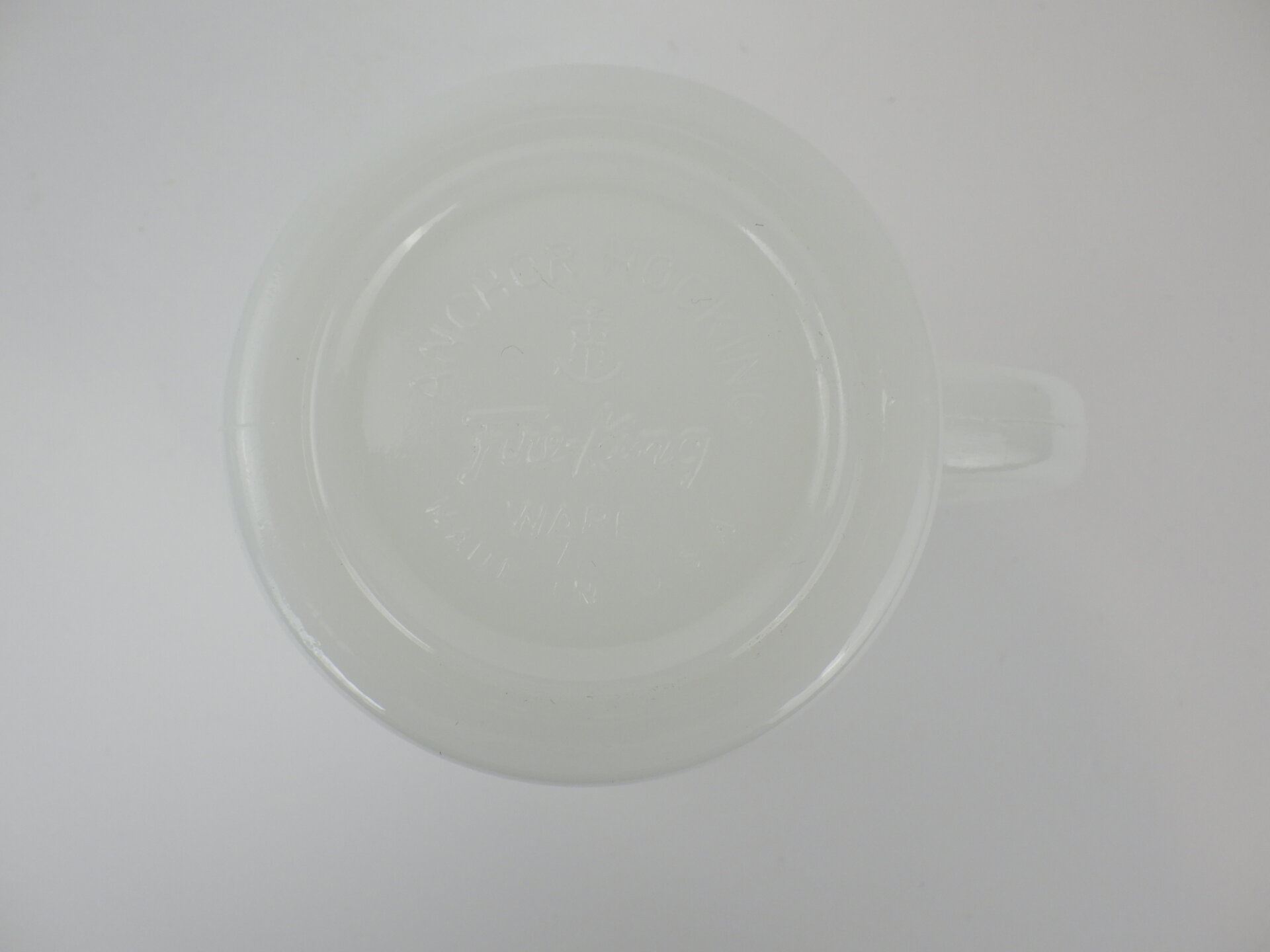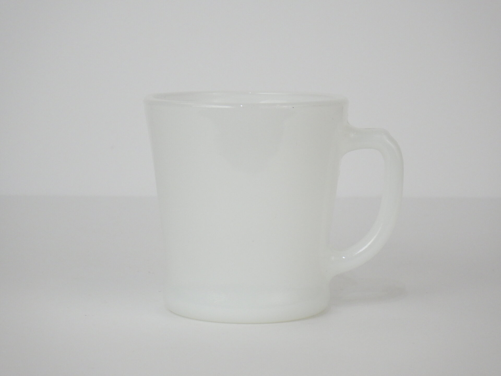 | アメリカで買い付けました。 ファイヤーキング、ミルクホワイトのDハンドルマグです。 Dハンドルマグは、正式名称を「8オンス・コーヒーマグ」と言います。 その中でもこちらのミルクホワイトは50年代から製造が始まった定番カラー。 シンプルながらもコーヒーを注いだ時のコントラストや透け感がたまらないアイテムです。 また、比較的手が出しやすい価格帯ですので、ファイヤーキングを初めて試すという方にもおすすめですよ。 |