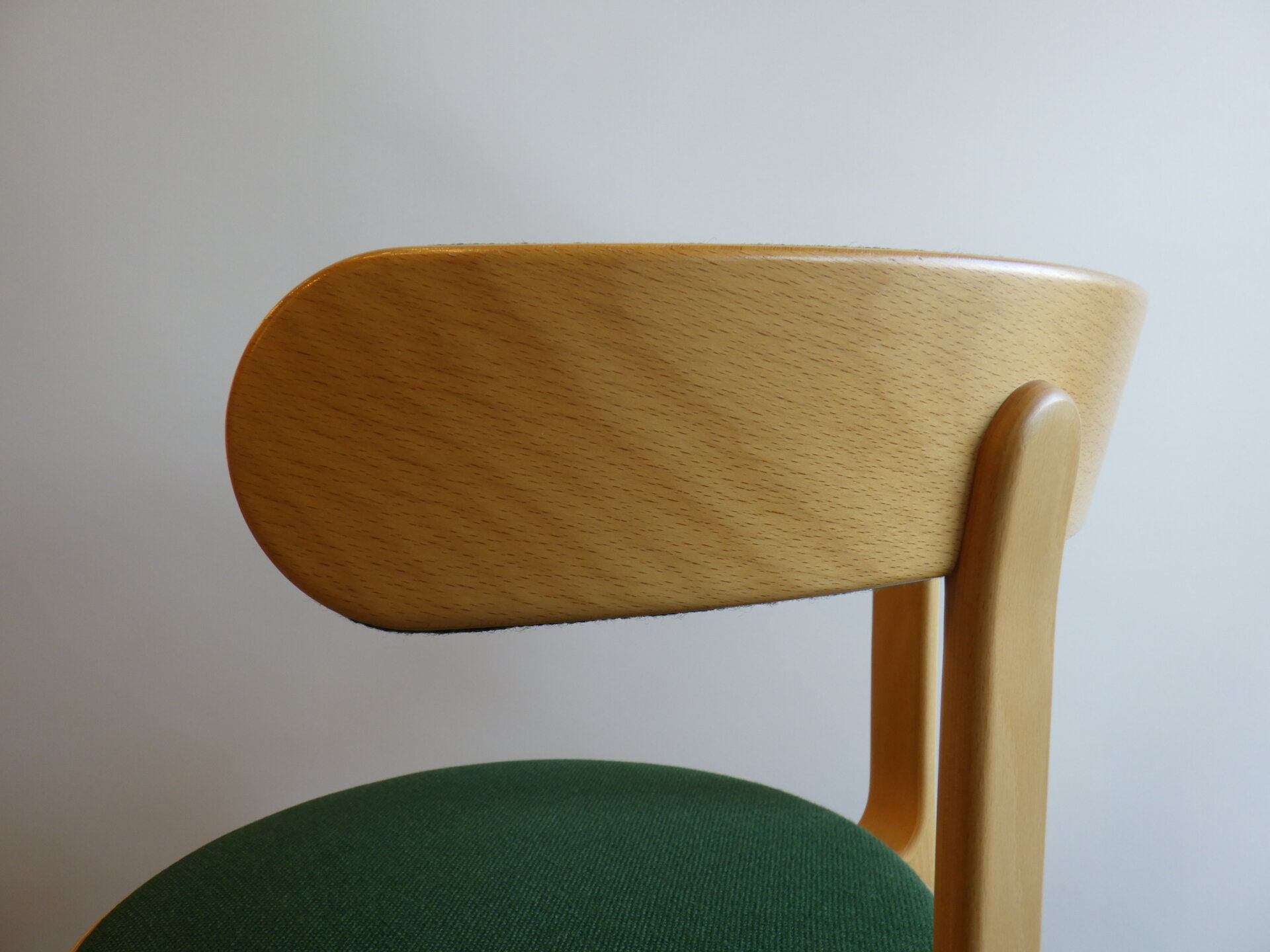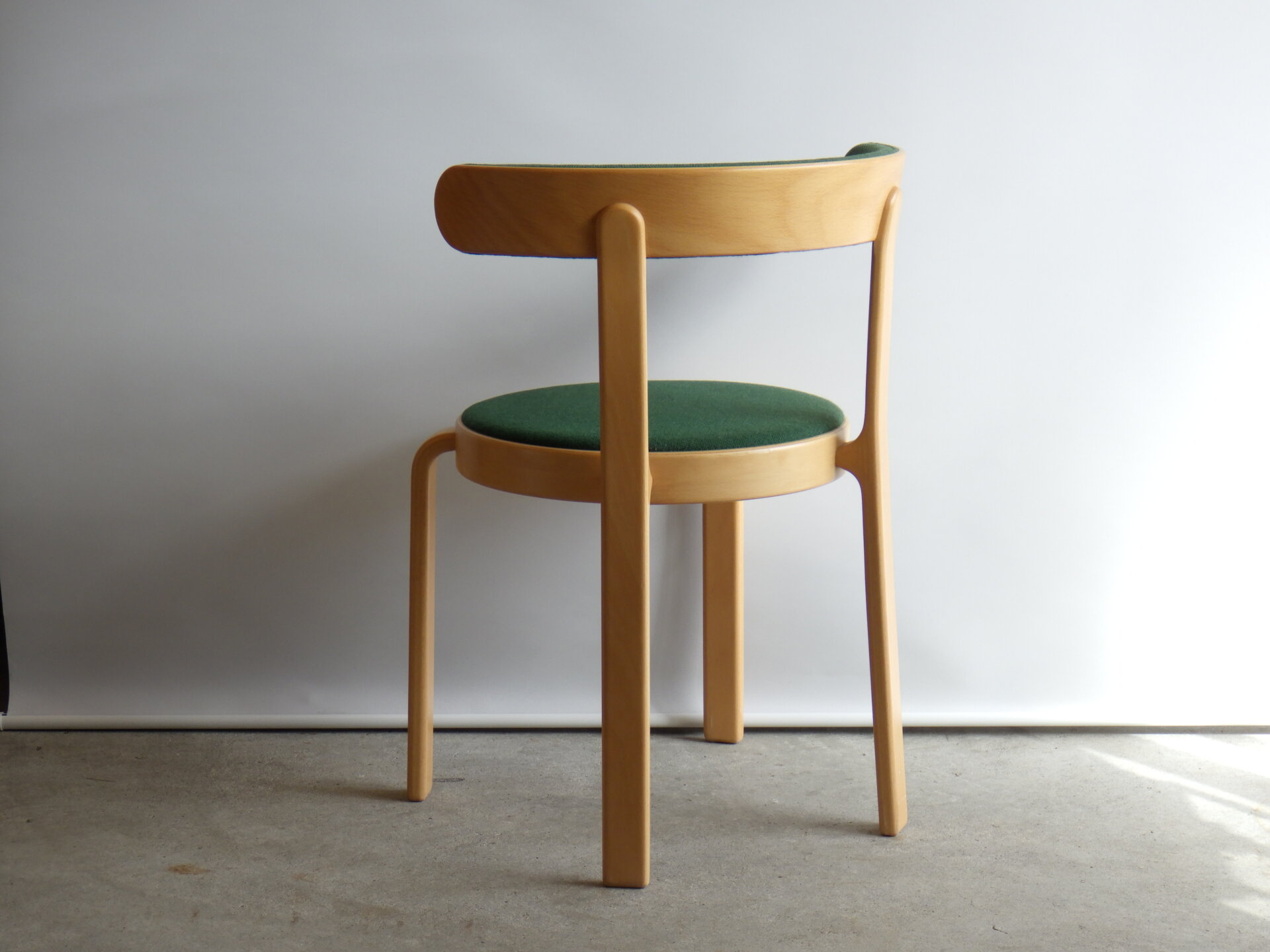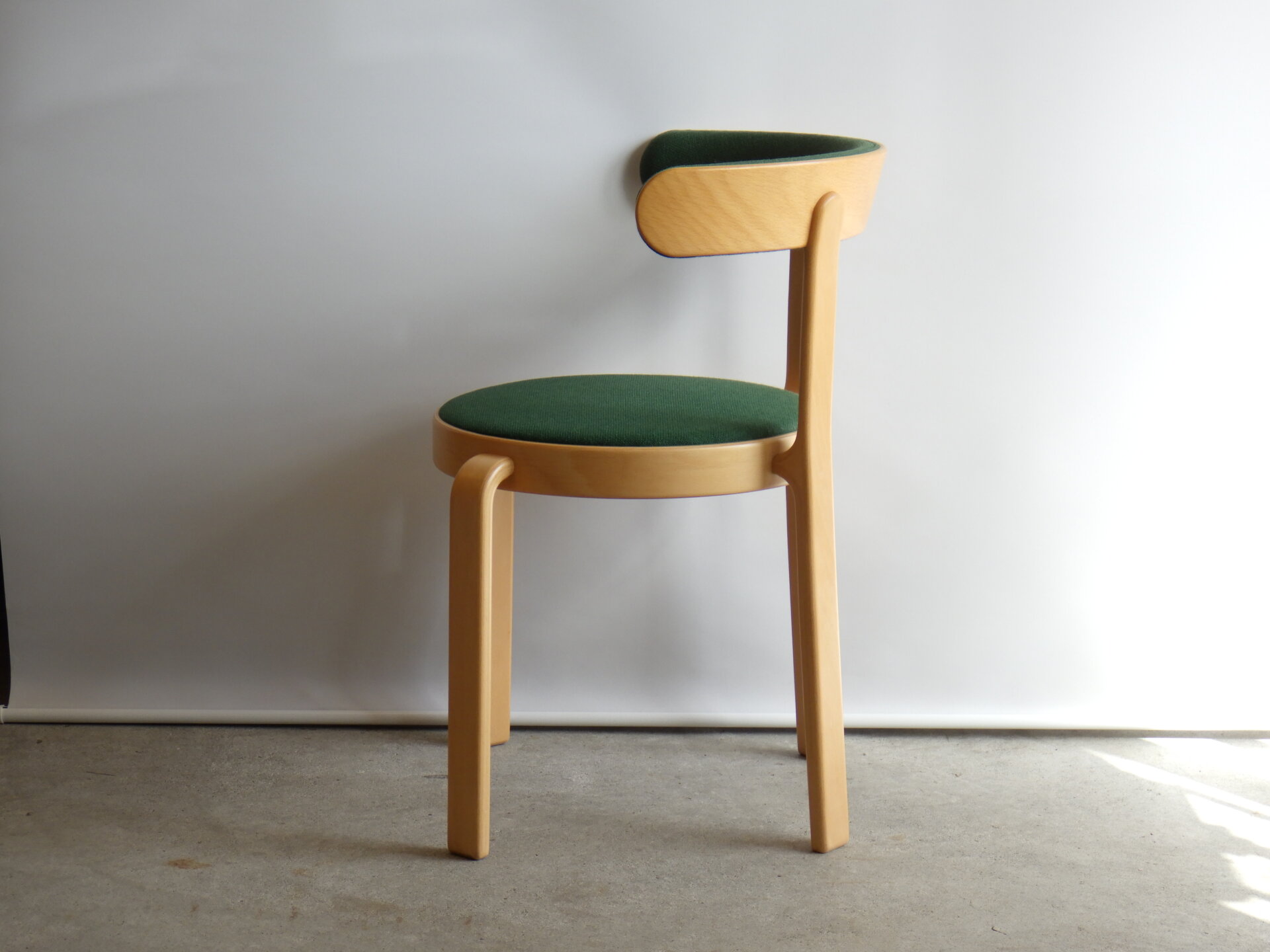 | ヨーロッパで買い付けました。 Magnus Olesen、Rud Thygesen & Johnny Soreusenデザインのビンテージチェアです。 マグナスオルセン(Magnus Olesen)とは、1937年創業のデンマークの木製家具メーカーで、高品質かつ機能的な北欧デザイン家具で世界的評価を受けるブランドです。 Rud Thygesen & Johnny Soreusen(ルド・チューエセン& ジョニー・ソーレンセン)は共にデンマーク美術工芸デザイン学校を1966年に卒業し、同年に共同のスタジオを設立しました。在学中からマグナスオルセンとは協力関係があり、協業した8000シリーズは同社の代表作となり高い評価を受けています。 最大の特徴は、脚から背・アームへとつながる曲木(ベントウッド)構造。 無駄な装飾を排しながら、曲線だけで強度と軽やかさを両立しています。 この柔らかな曲線なのに構造的に強いという点は、老舗メーカーならでは。 明るいビーチ材と色味のある張地を合わせることで、馴染み良く、印象にも残る一脚になっています。 |