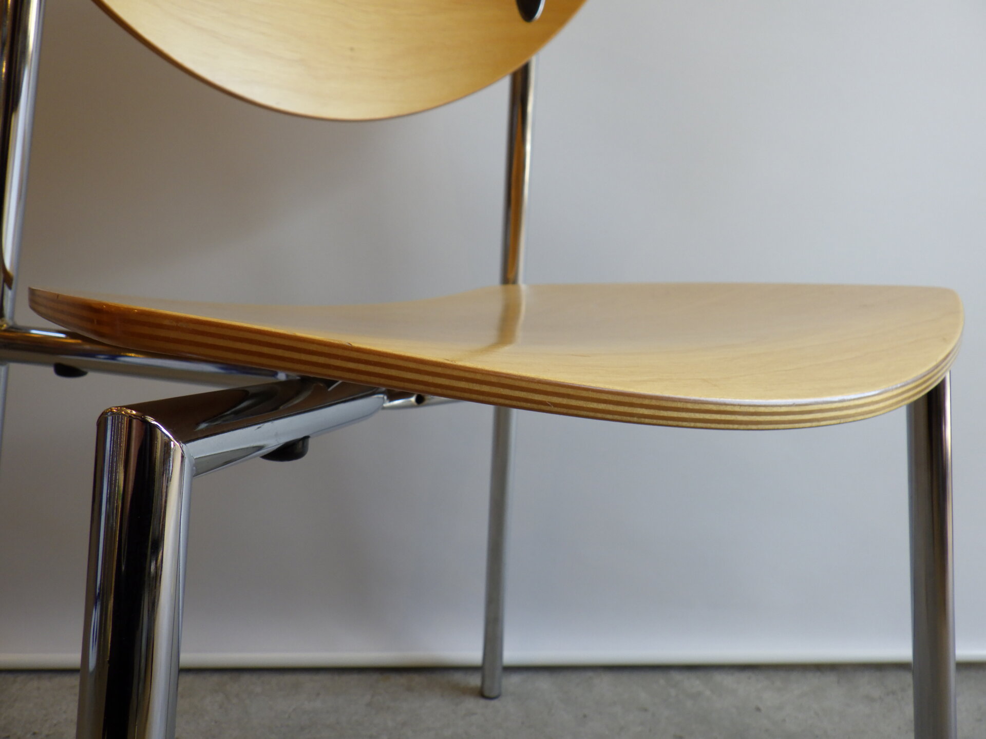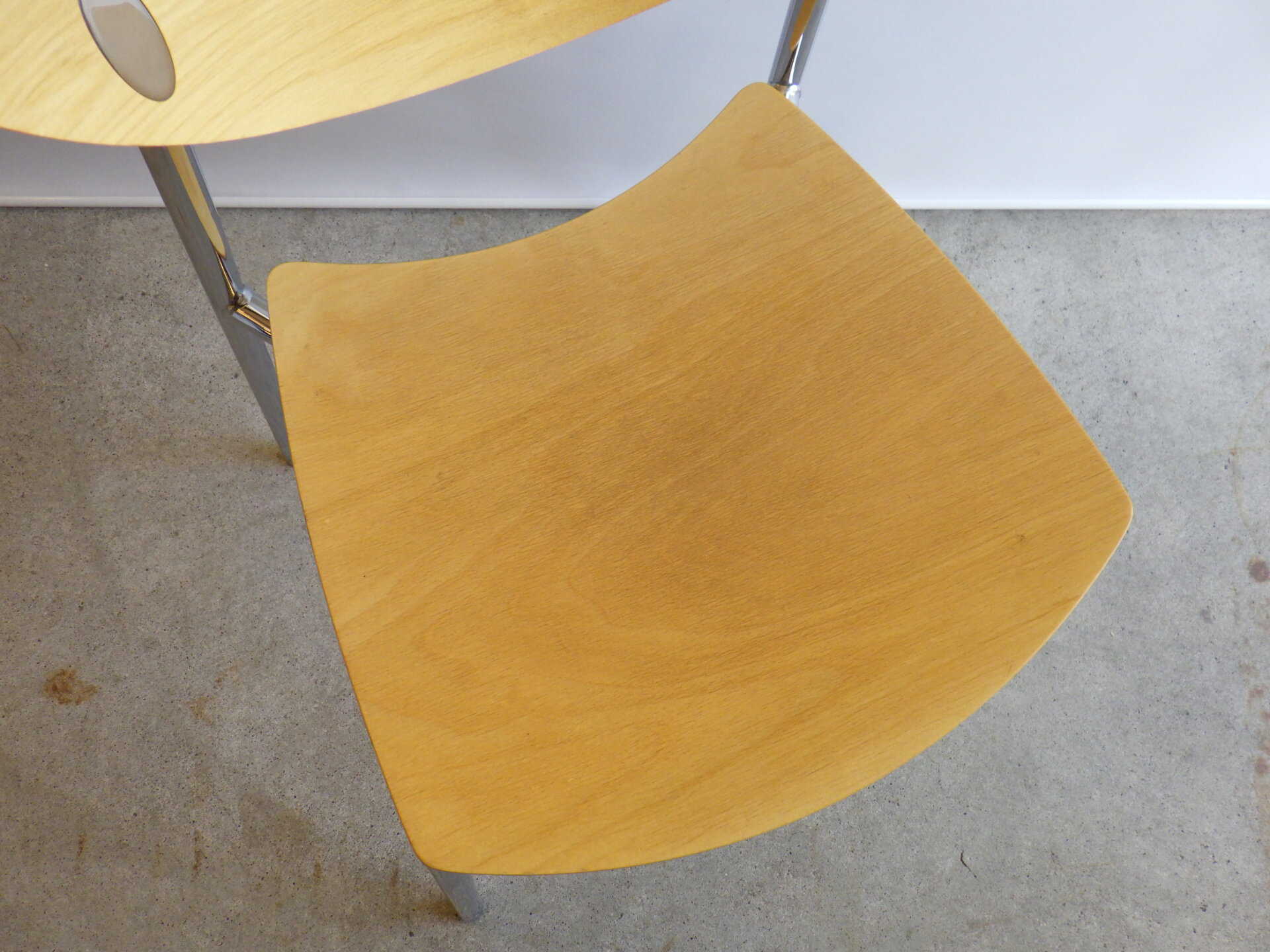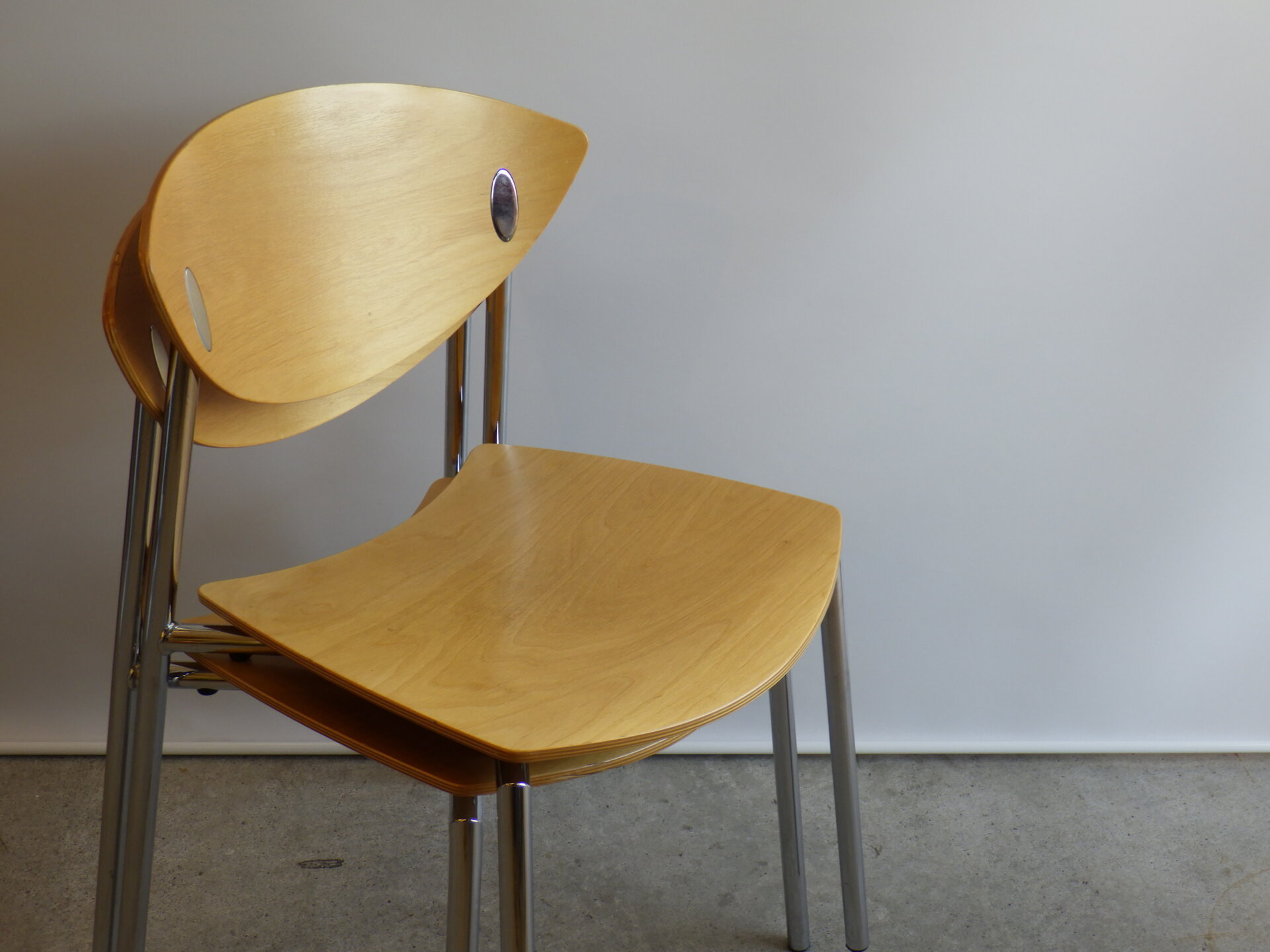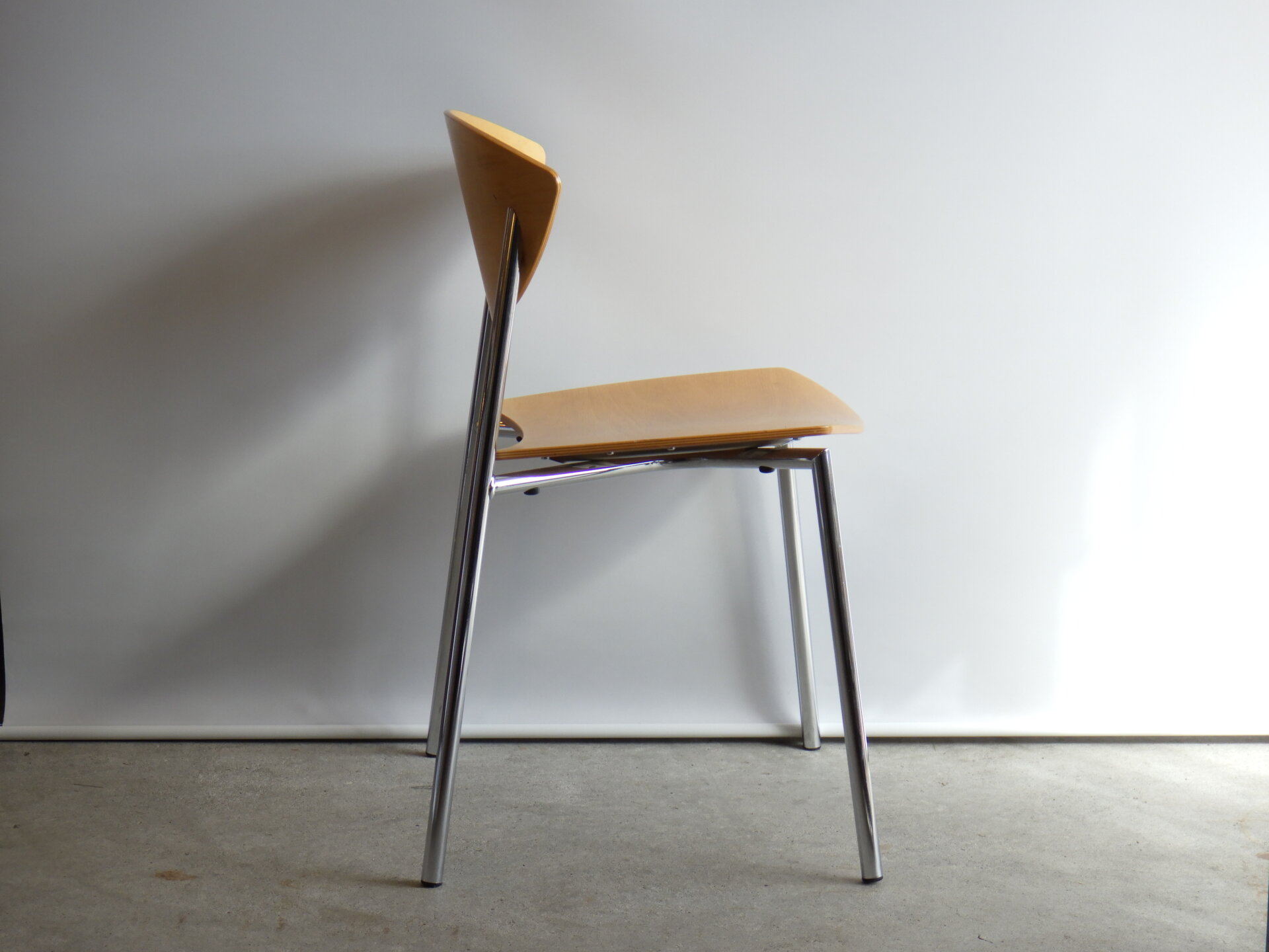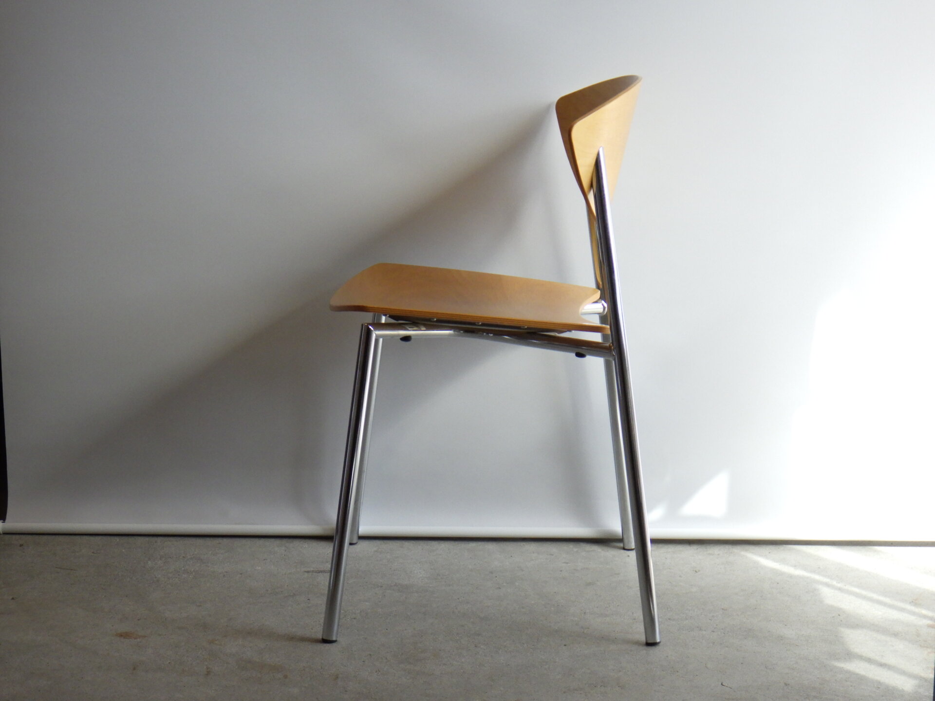 | ヨーロッパで買い付けました。 Randers+Radius、Thore Lassen & Soren Nielsenデザインのビンテージチェアです。 クローム仕上げの軽量なスチールレッグと、身体に沿う形成合板の柔らかなカーブにより、日常使いに適した快適な座り心地を実現しています。 スタッキング(積み重ね)出来るので、未使用時の収納もコンパクトに済ませられます。 無駄をそぎ落とした北欧らしい佇まいなので、日常に寄り添ってくれるデザイン。 ダイニングからワークスペースまで、空間を選ばず自然に馴染んでくれるチェアです。 |