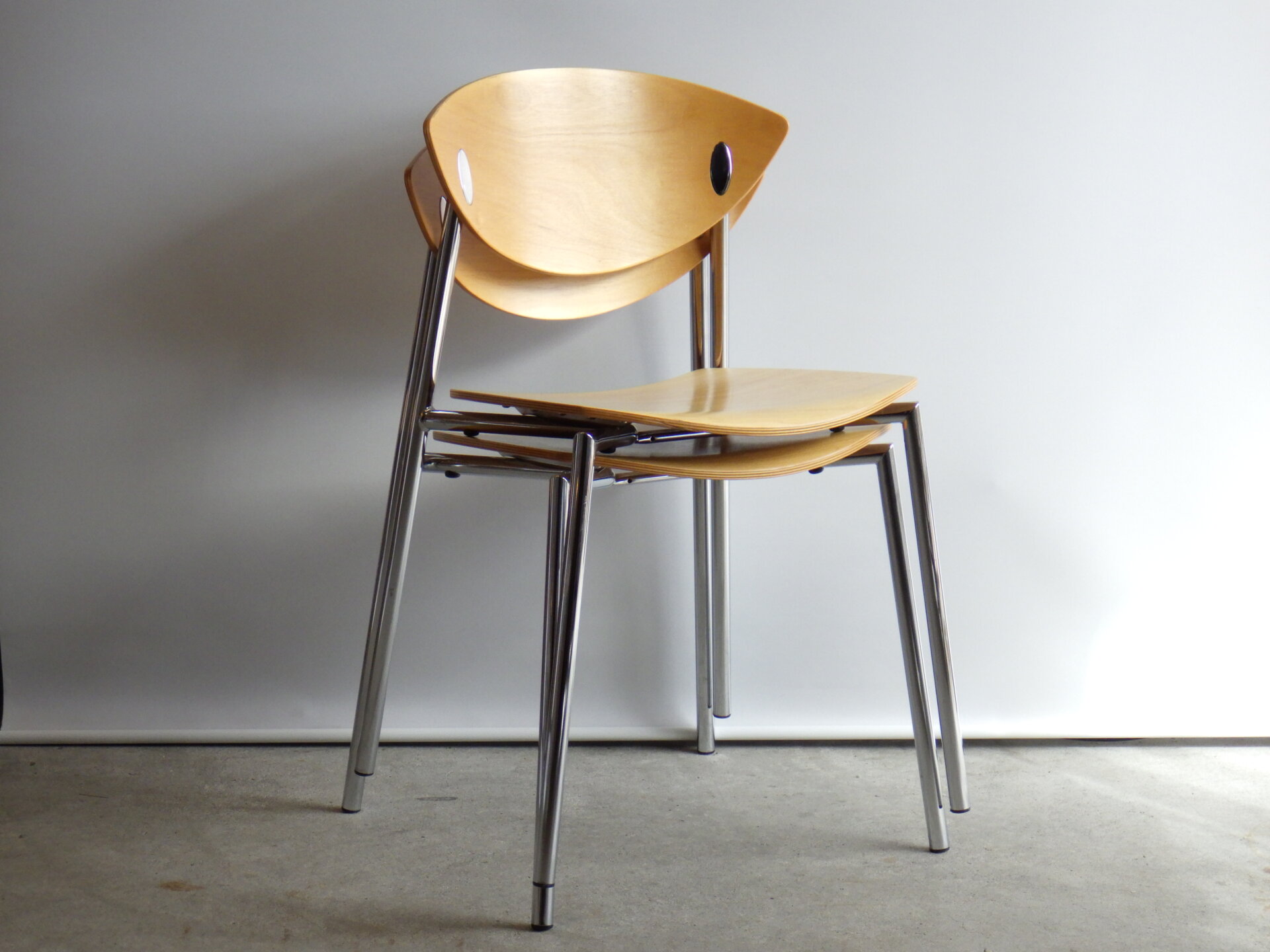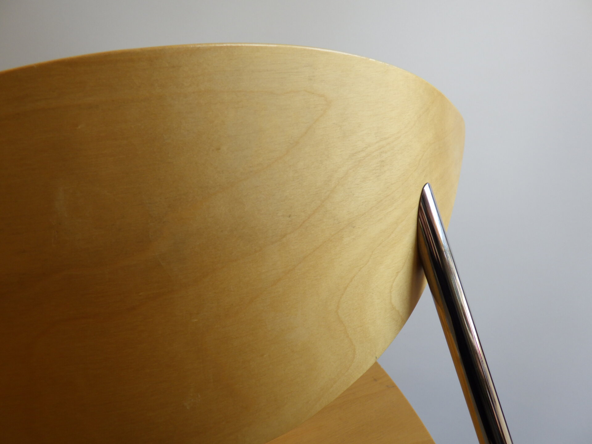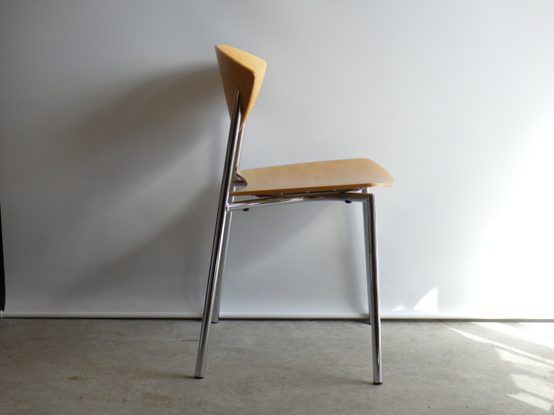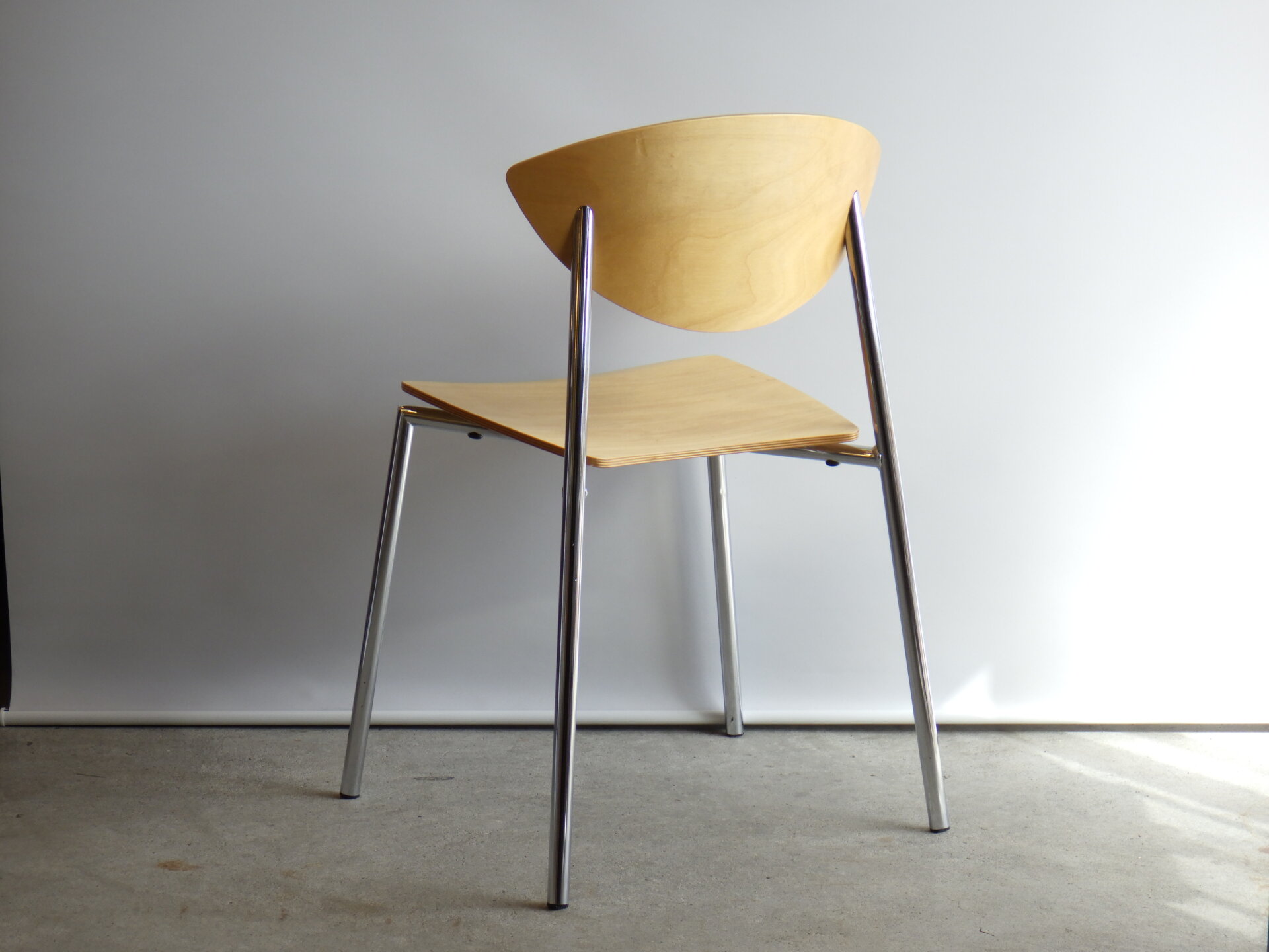 | ヨーロッパで買い付けました。 Randers+Radius、Thore Lassen & Soren Nielsenデザインのビンテージチェアです。 クローム仕上げの軽量なスチールレッグと、身体に沿う形成合板の柔らかなカーブにより、日常使いに適した快適な座り心地を実現しています。 スタッキング(積み重ね)出来るので、未使用時の収納もコンパクトに済ませられます。 無駄をそぎ落とした北欧らしい佇まいなので、日常に寄り添ってくれるデザイン。 ダイニングからワークスペースまで、空間を選ばず自然に馴染んでくれるチェアです。 |