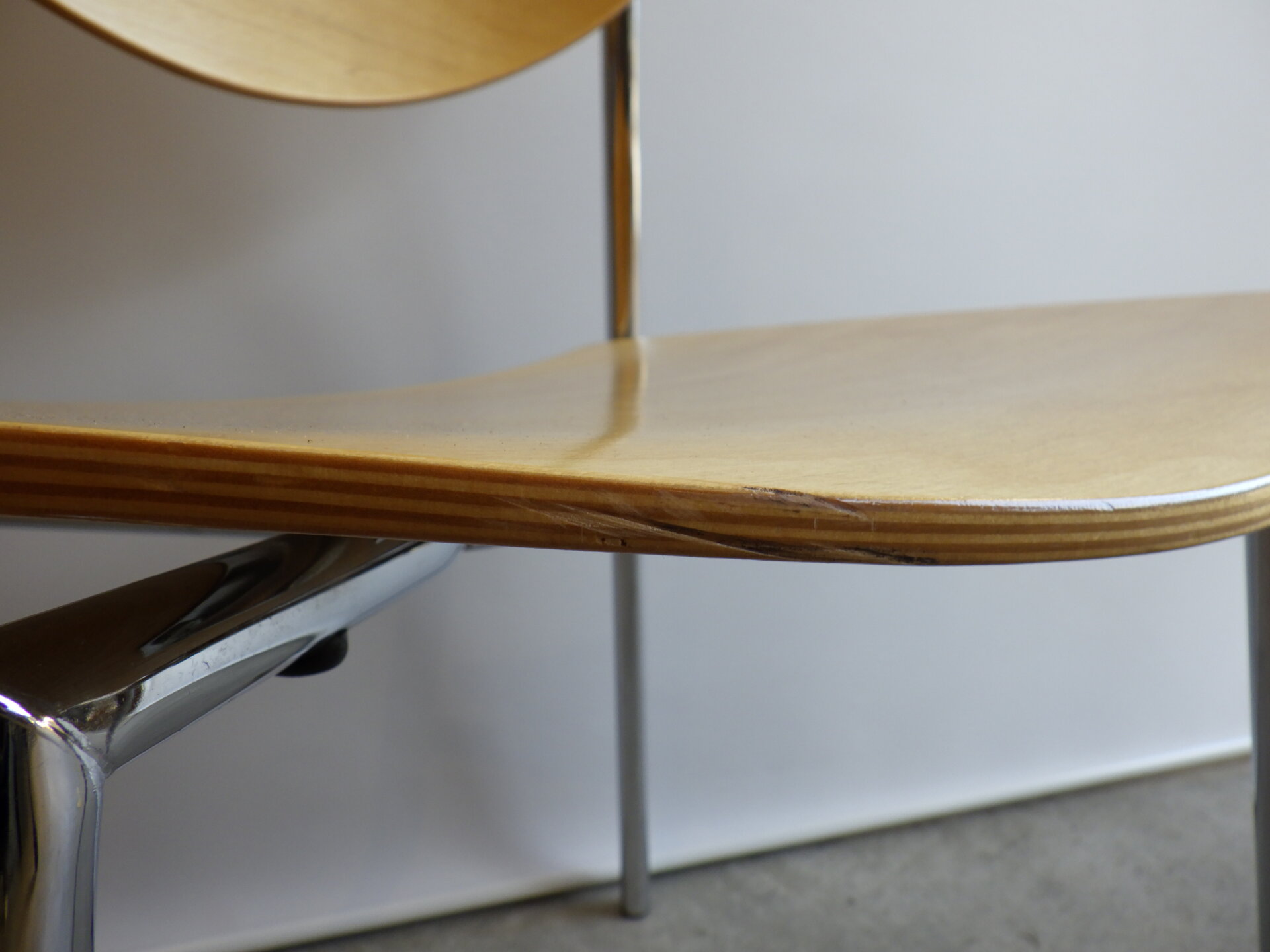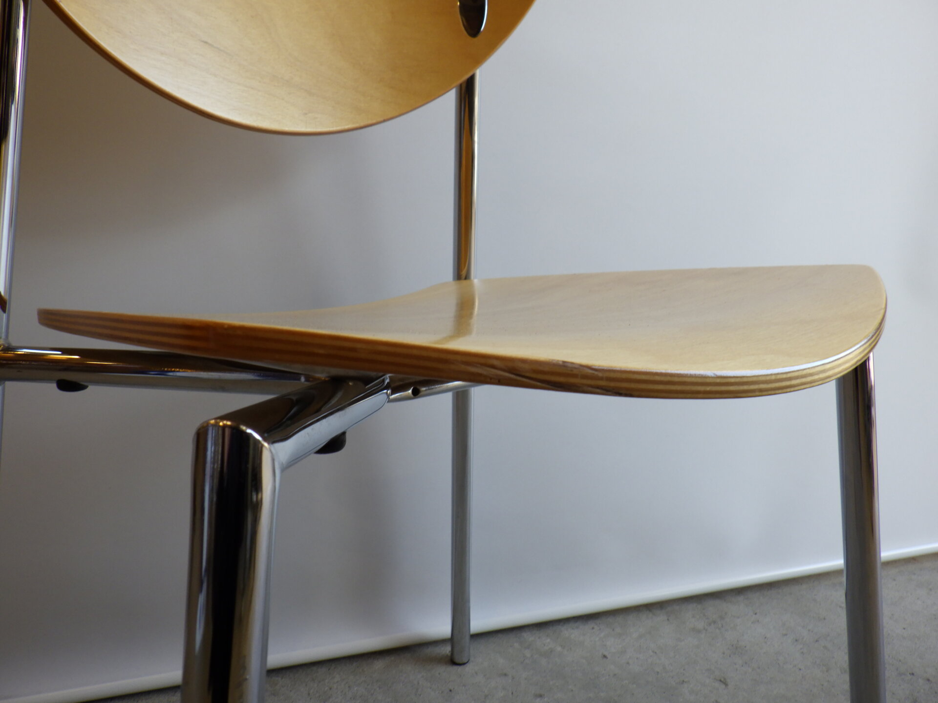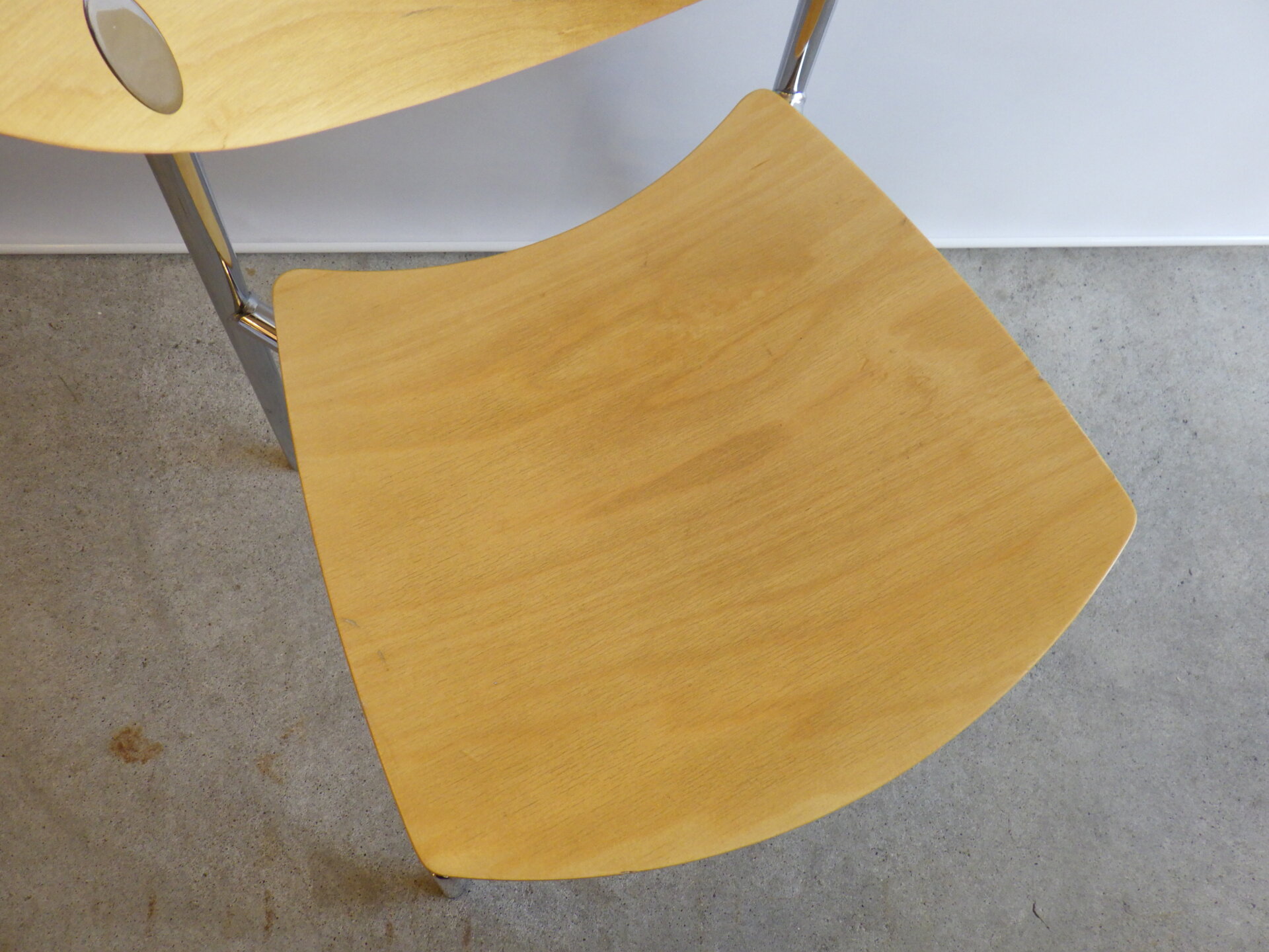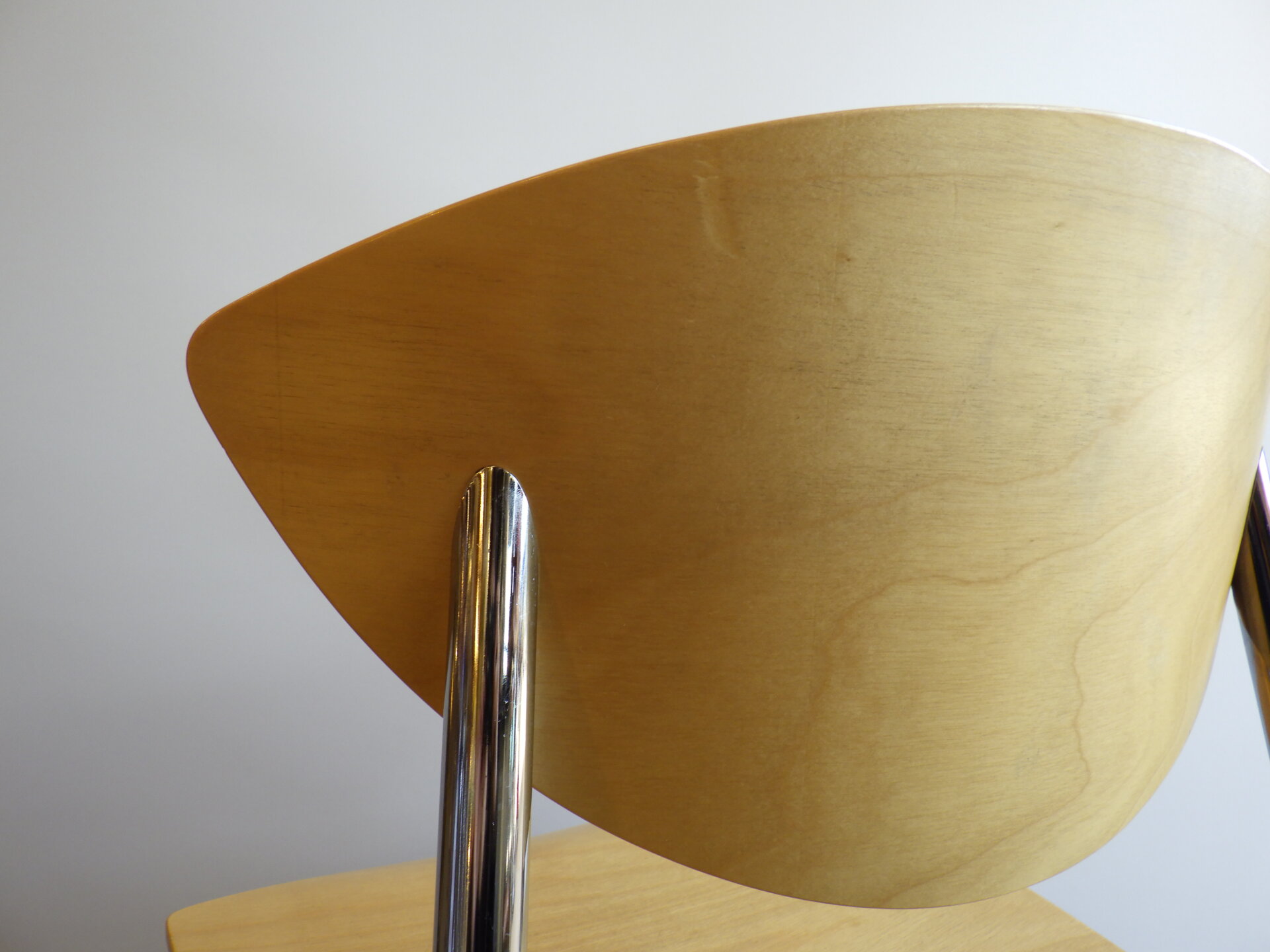 | ヨーロッパで買い付けました。 Randers+Radius、Thore Lassen & Soren Nielsenデザインのビンテージチェアです。 クローム仕上げの軽量なスチールレッグと、身体に沿う形成合板の柔らかなカーブにより、日常使いに適した快適な座り心地を実現しています。 スタッキング(積み重ね)出来るので、未使用時の収納もコンパクトに済ませられます。 無駄をそぎ落とした北欧らしい佇まいなので、日常に寄り添ってくれるデザイン。 ダイニングからワークスペースまで、空間を選ばず自然に馴染んでくれるチェアです。 |