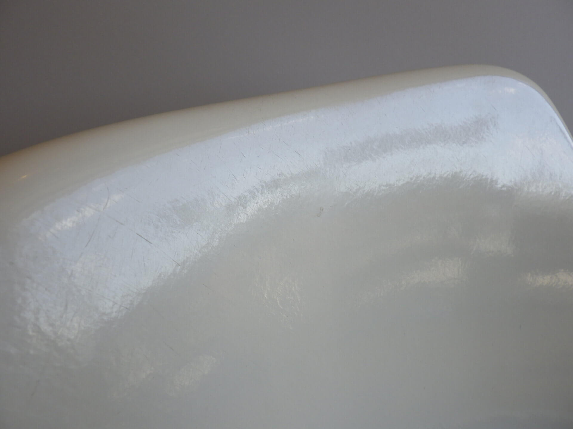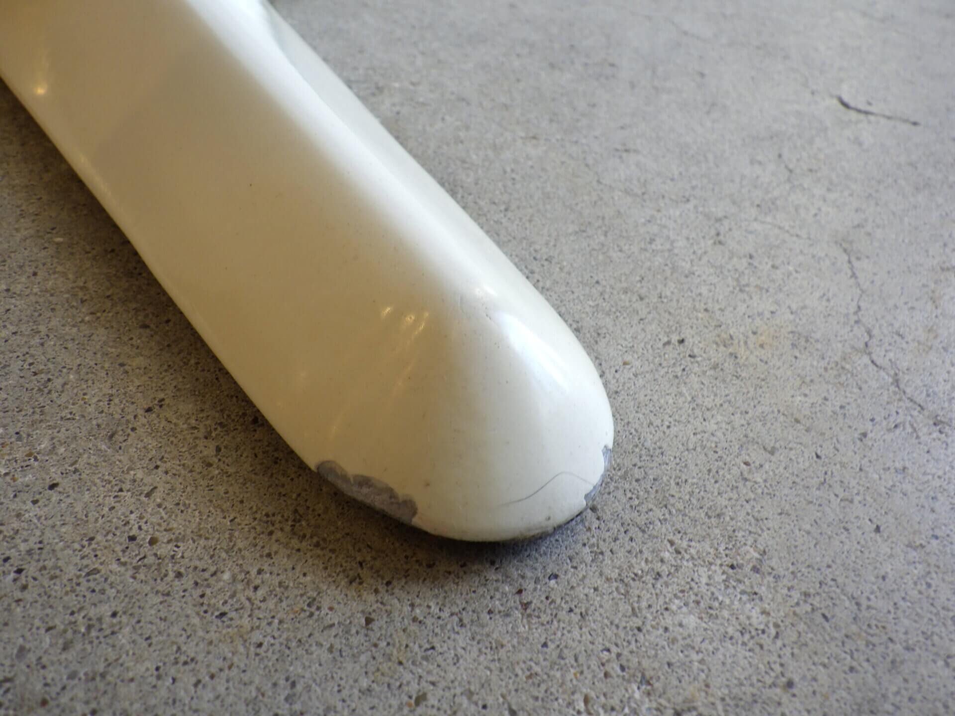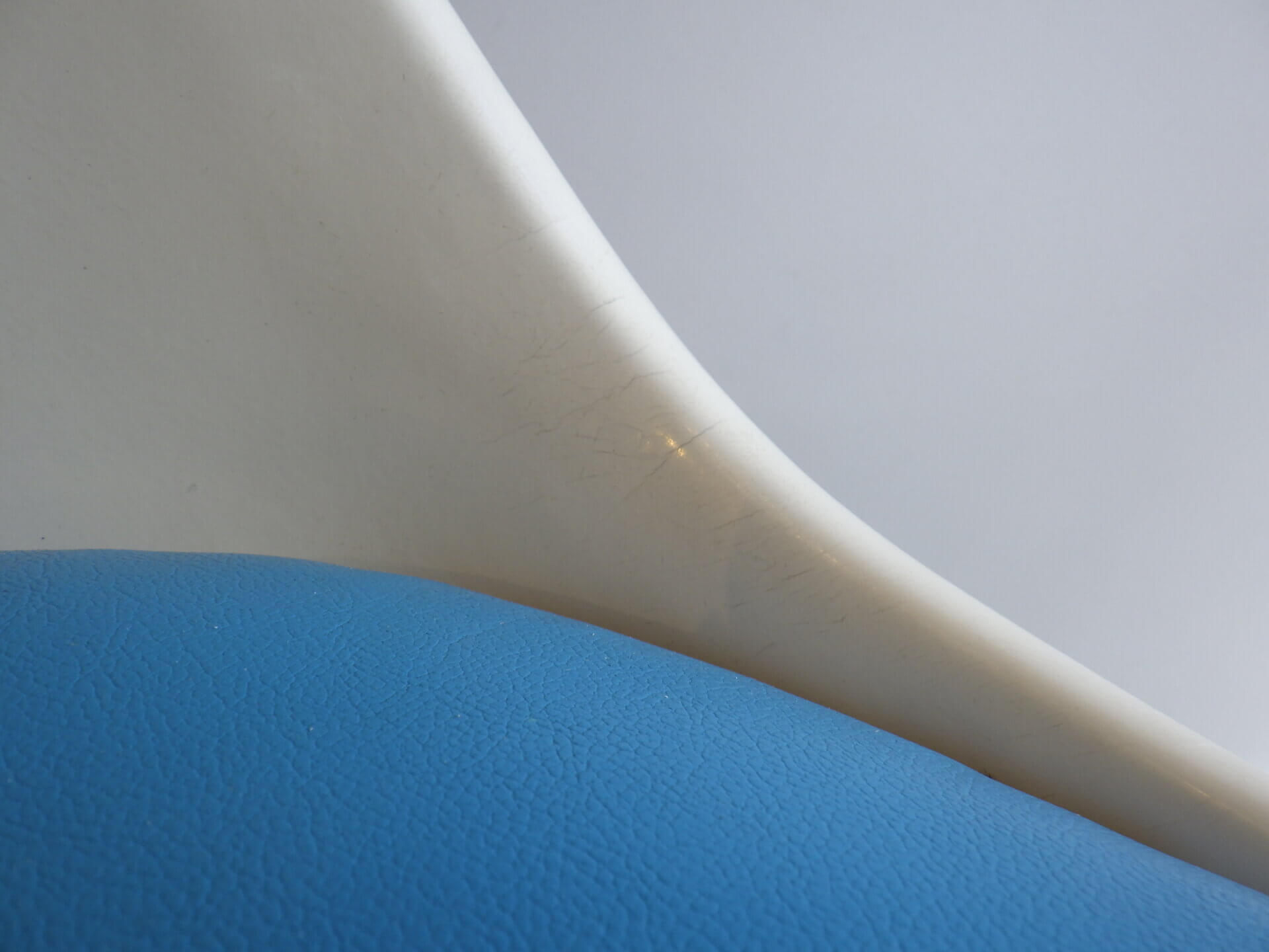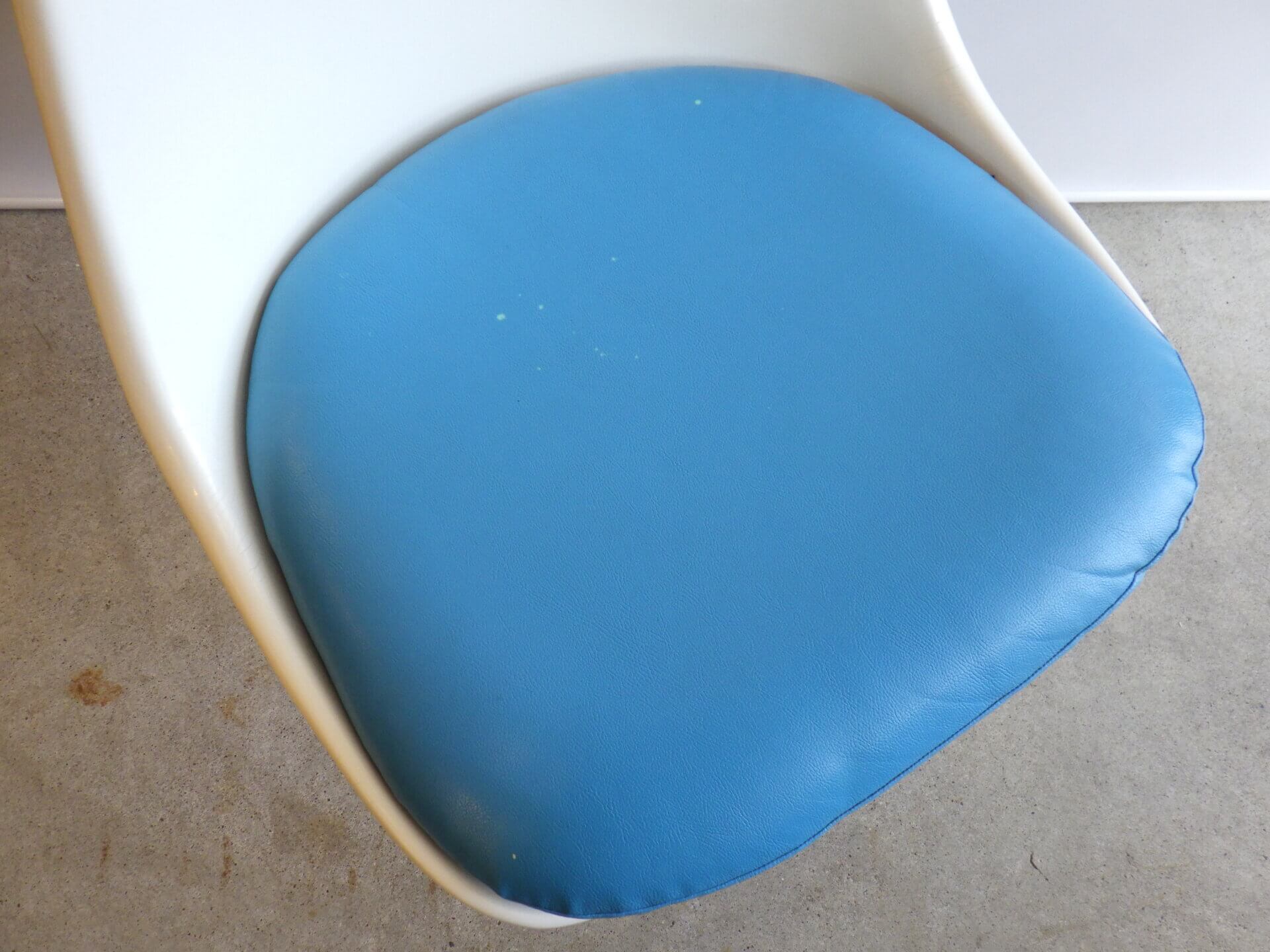 | アメリカで買い付けました。 BURKEのビンテージチェアです。 エーロ・サーリネンのチューリップチェアを思わせる曲線的フォルムが特徴のチェア。 一体成形のFRPシェルとスチール製ベースによるミニマルな構造は、当時の未来志向のデザイン思想をそのまま形にしたような存在です。 スペースエイジなアイテムとも相性は良さそう。 ブルーのクッションがアクセントになり、空間に軽やかな彩りを添える点も魅力的ですので、ダイニングやワークスペースだけでなく、ショップ什器として単体でオブジェのように置いても楽しめそうです。 |