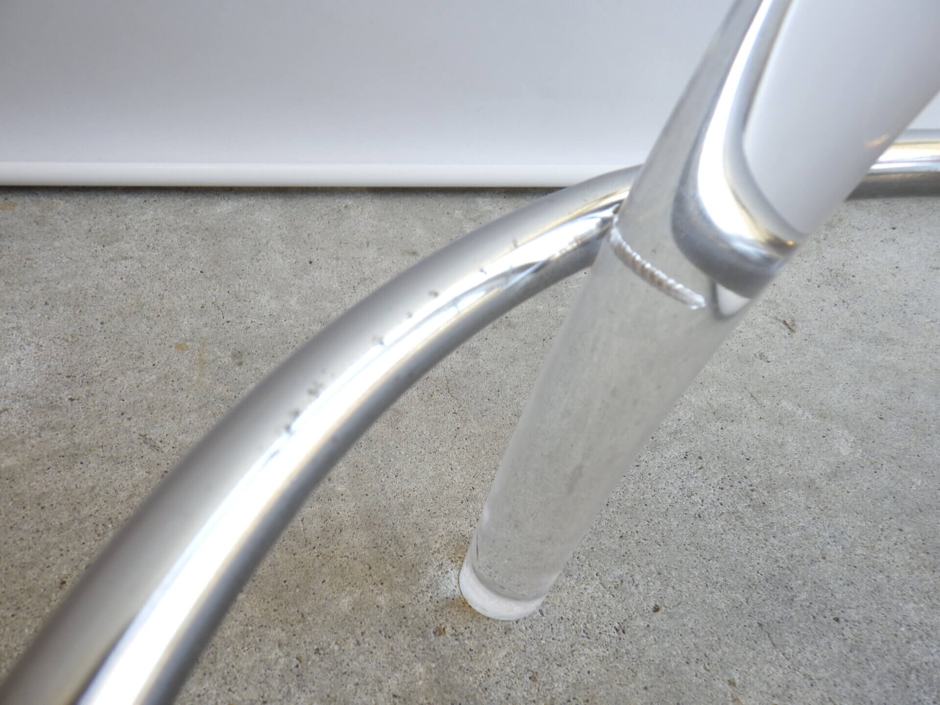 | アメリカで買い付けました。 ビンテージのハイスツールです。 Hill Manufacturing Coep.はニューヨークを拠点にしていた家具メーカーで、1960~70年代にかけてルーサイト(アクリル)家具やモダン系スツールを多く生産していました。 こちらのスツールもルーサイトのベースにクロームのフットリングが組み合わさった、スペースエイジ、モダンラグジュアリー寄りのデザインとなっています。 視覚的に軽やかに見せつつ高級感もあるため、ご自宅使いはもちろんのこと、バーやラウンジなどの店舗什器としてもおすすめしています。 |