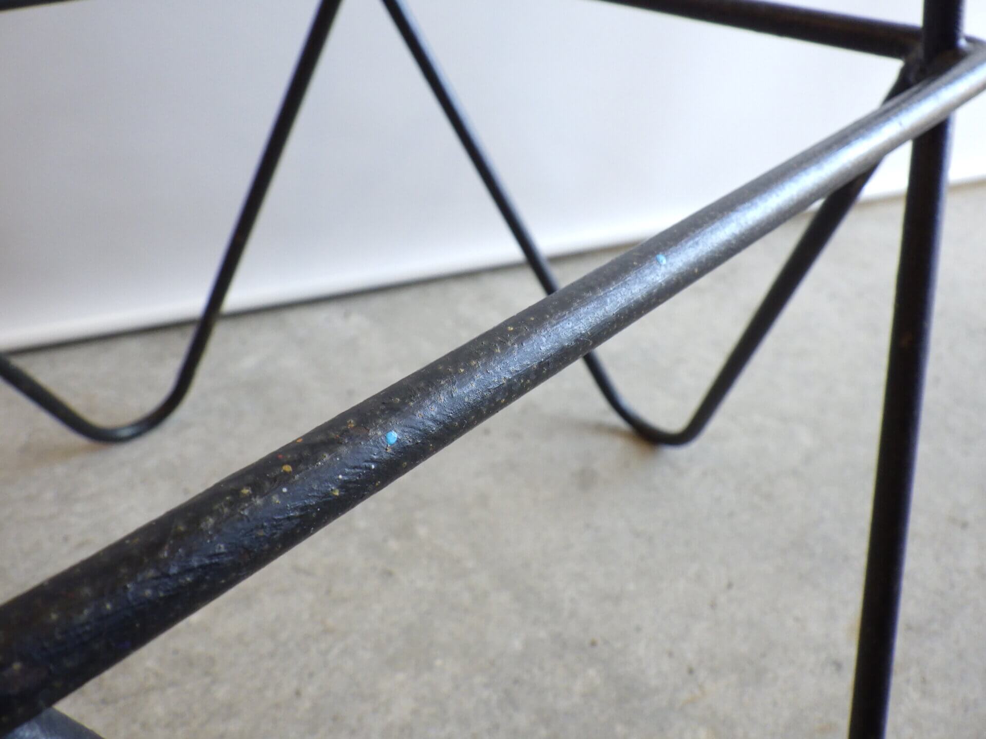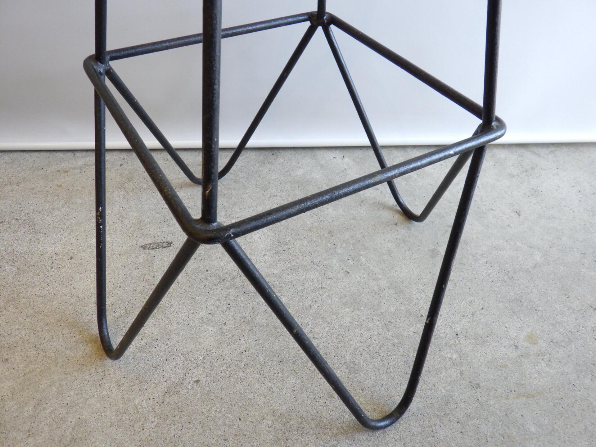 | アメリカで買い付けました。 ビンテージのバースツールです。 細身のスチールベースは軽やかで抜け感のあるデザイン。幾何学的な補強構造が視覚的なアクセントになりつつ、しっかりとした強度も確保しています。 座面のウッドトップと無機質なスチールベースとのコントラストが心地良く、温かみをプラスしてくれます。 ラフになり過ぎず、モダン空間にもビンテージ空間にも自然に馴染んでくれそうです。 カウンター用としてはもちろん、ディスプレイ台や植物スタンドとして使うのもおすすめ。 用途の広さもビンテージスツールの強みですね。 |