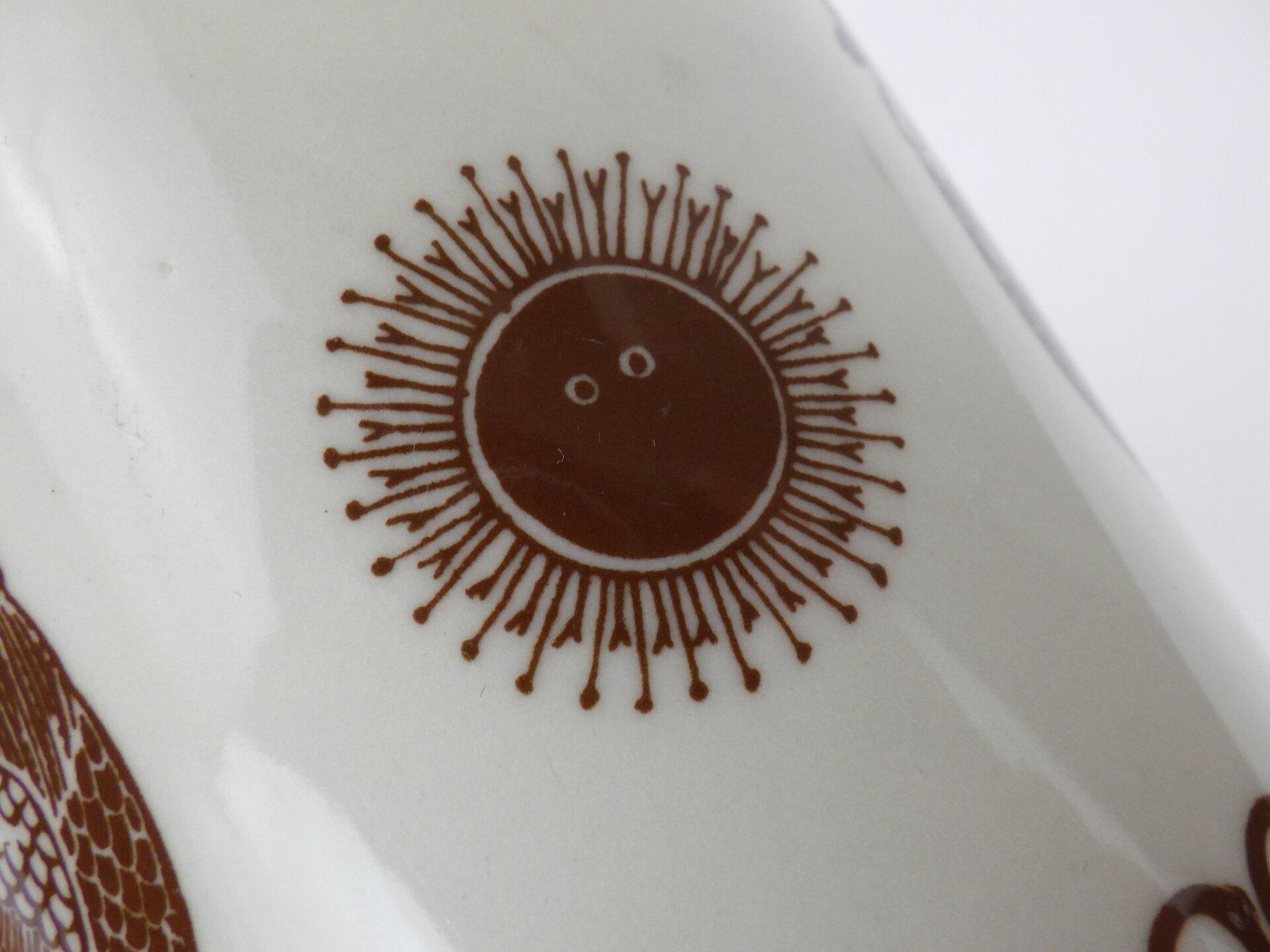 | アメリカで買い付けました。 Taylor&Ngの1979年製、ビンテージマグです。 Taylor&Ngは1960年代に米サンフランシスコで誕生したアジア風デザインのキッチン用品・雑貨ブランド。 手書き風の線画イラスト、少しユーモアがあり素朴なデザインのこちらの動物シリーズは、思わず集めて並べたくなる可愛さがあります。 製造はJAPAN。(この時代の陶器アイテムは日本で作られアメリカに輸出されていた物が多く存在します) 比較的大きめサイズで、しっかりと厚みもある頑丈なお作りです。 |