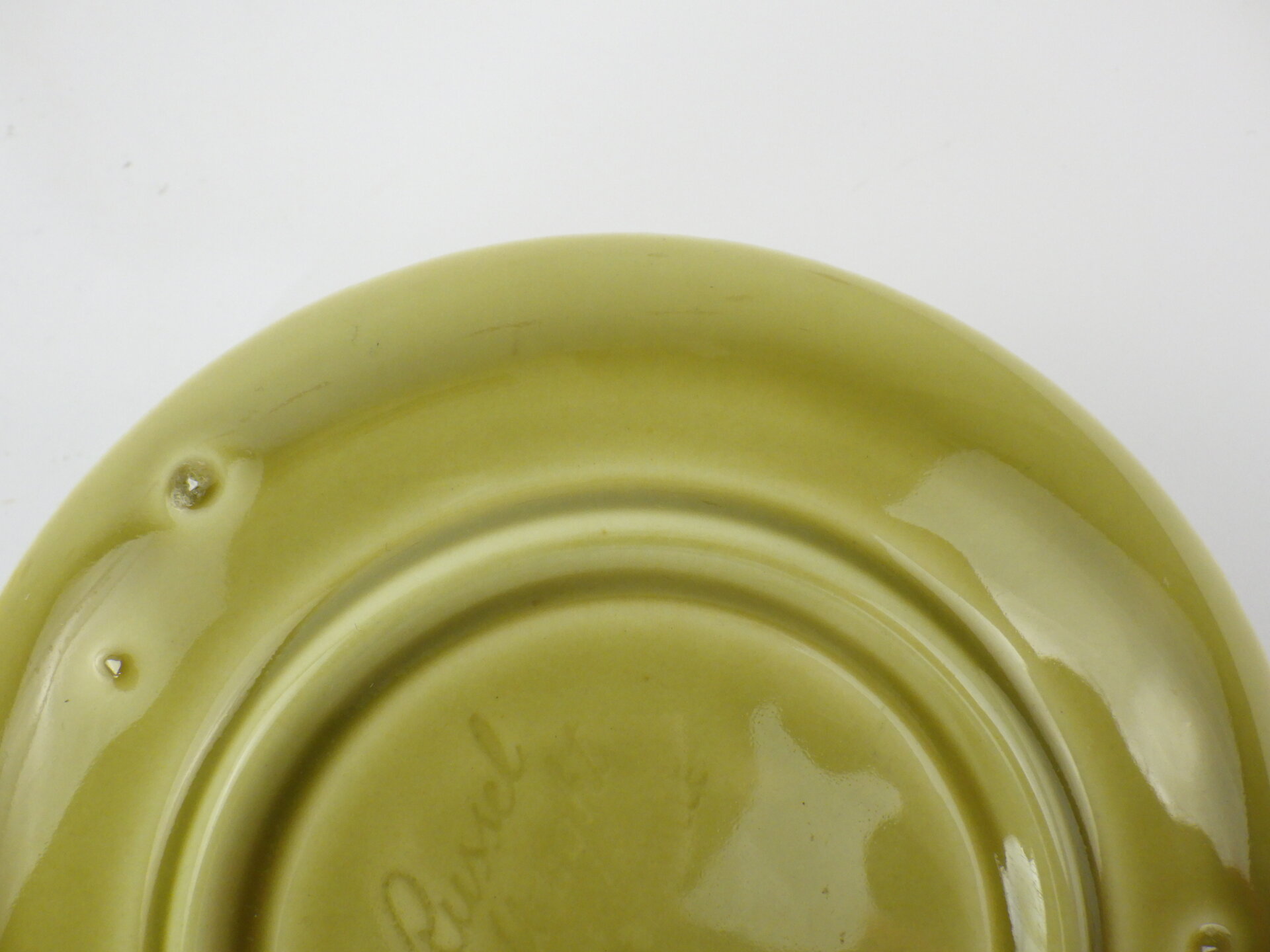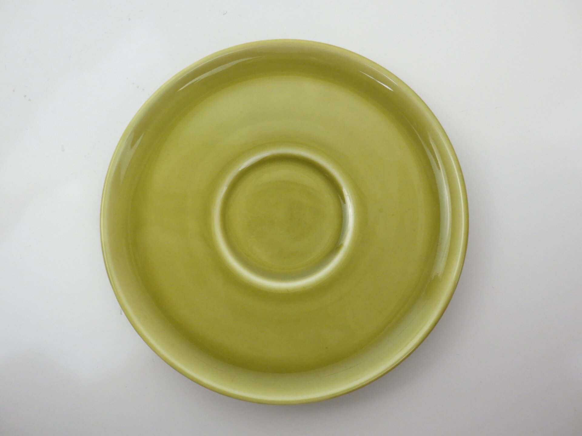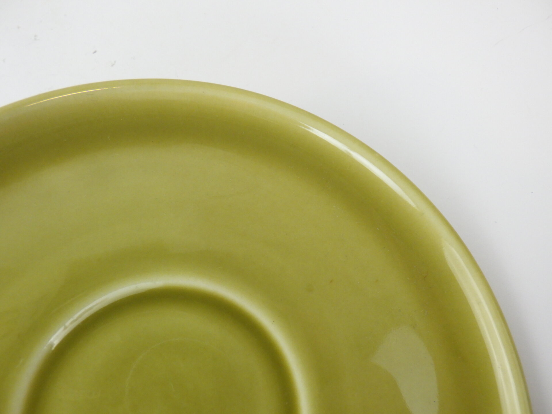 | アメリカを代表する工業デザイナー「ラッセル・ライト」デザインによる、1939年から1959年に製造されたSteubenville(スチューベンヴィル)社製のアメリカンモダンシリーズです。 ラッセル・ライトは、それまでの時代の主流であった華美な装飾を廃し、機能的でシンプル、それでいてデザイン的で安価な食器を生み出し、当時のアメリカにおける食器の価値観を大きく変えました。 こちらのC&Sはラッセルライトらしい丸みがあり、縁がぽってりしているデザインで、時代を経ても全く古めかしさを感じません。 こちらはフランスを代表するリキュールの一つである「シャルトリューズ」をイメージしたイエローカラーが印象的で、ラッセルライトらしさを存分にお楽しみいただけると思います。 |