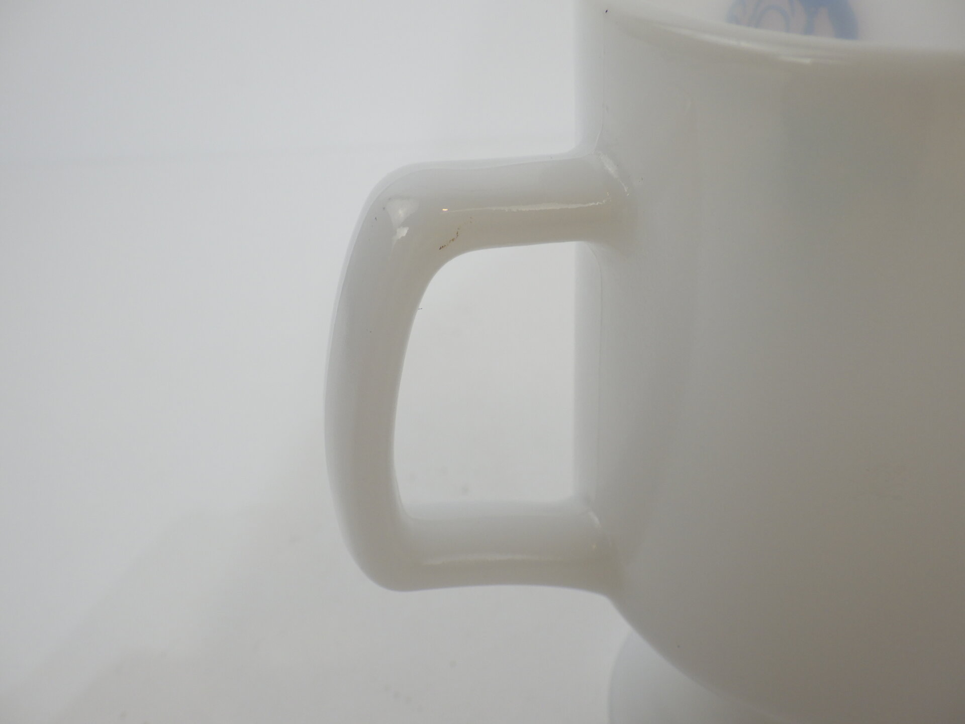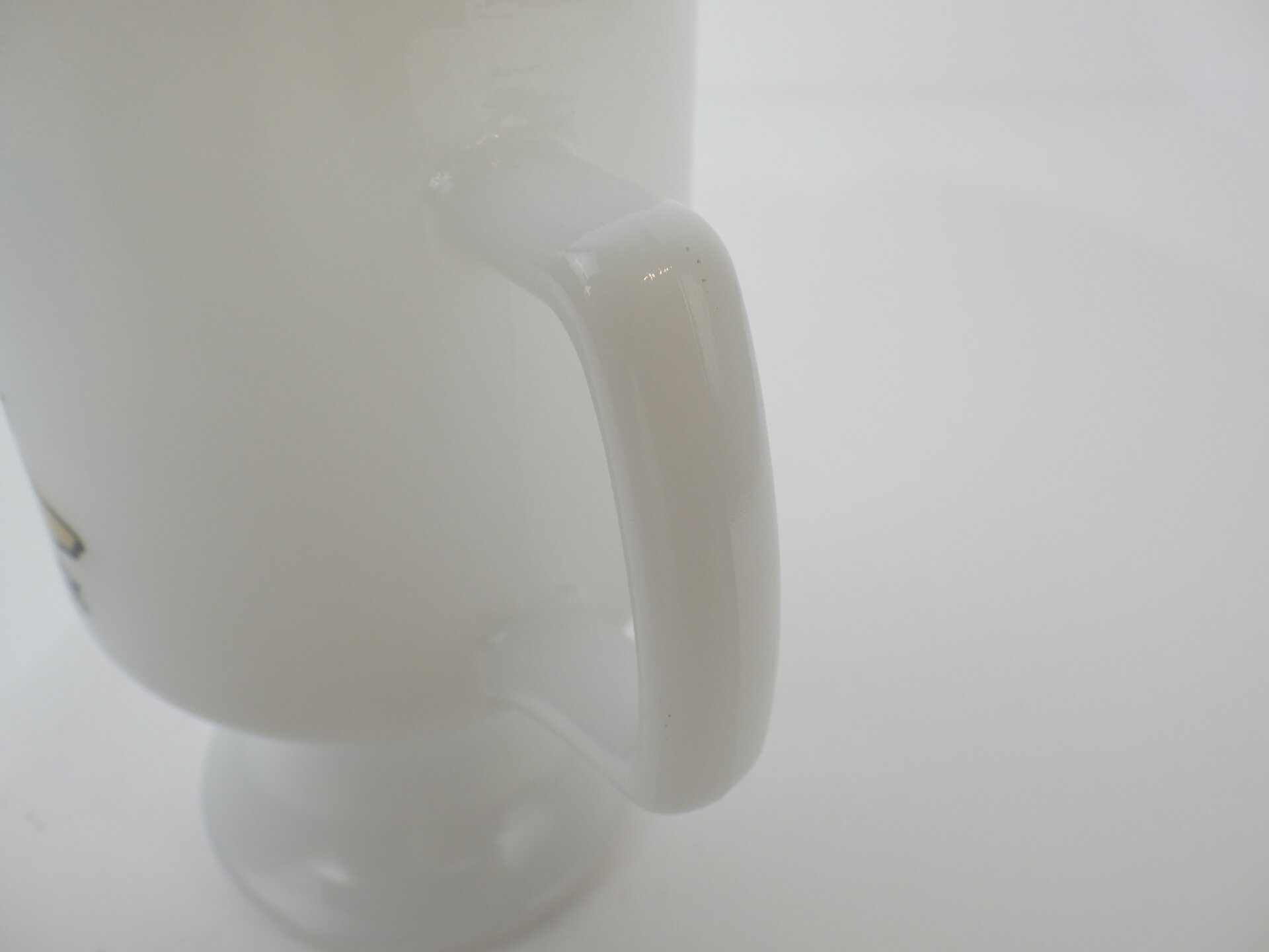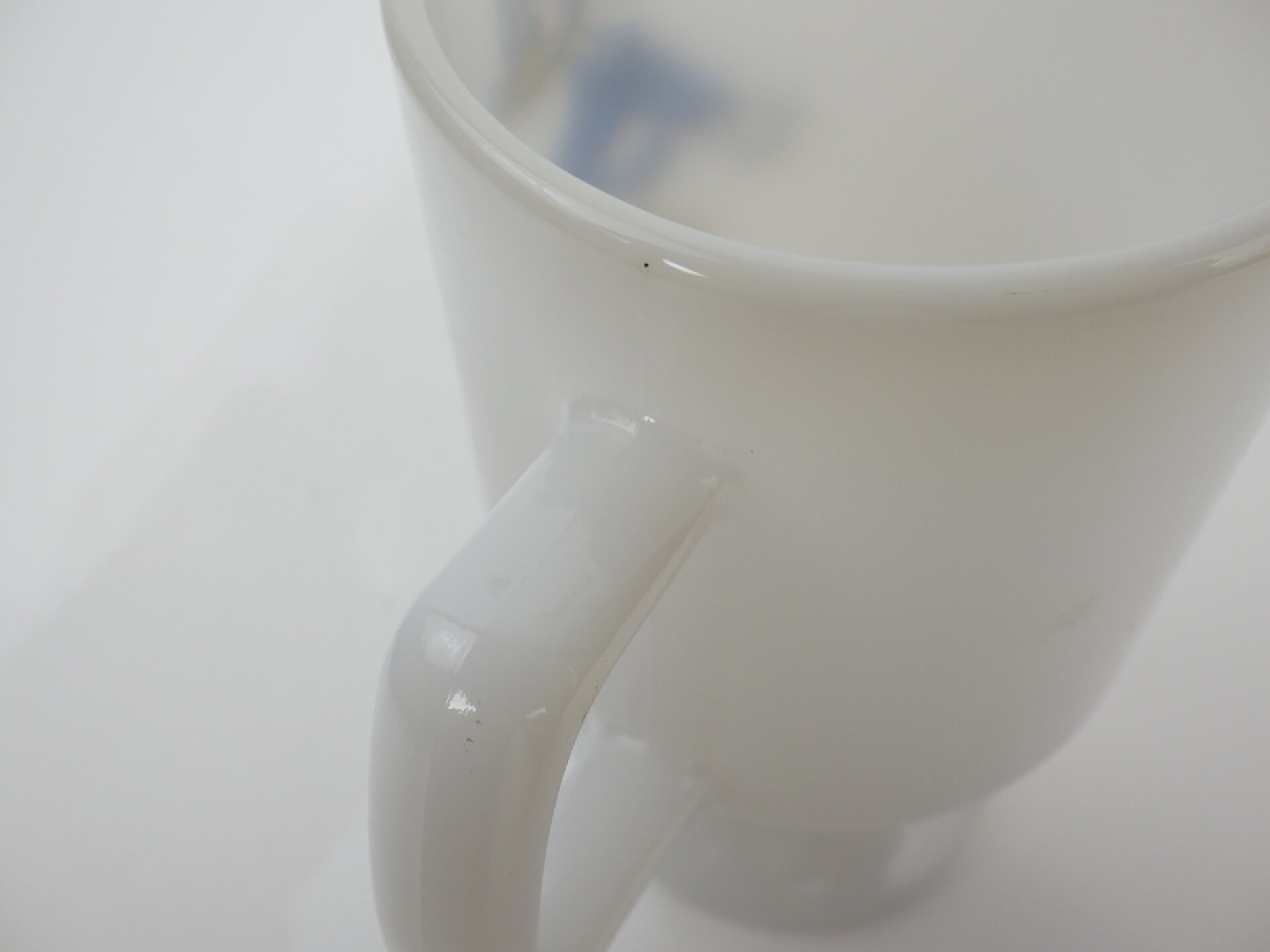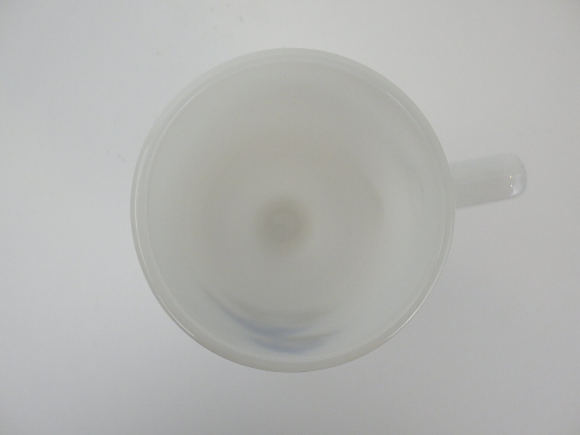 | condition | リム、ボトムにわずかなスレ、着色があります。 ハンドルに薄い着色があります。 ミルクガラス特有の製造時よりのヘアライン、劣化線、ホワイトスポット、ガラスのヨレなどあります。 |
