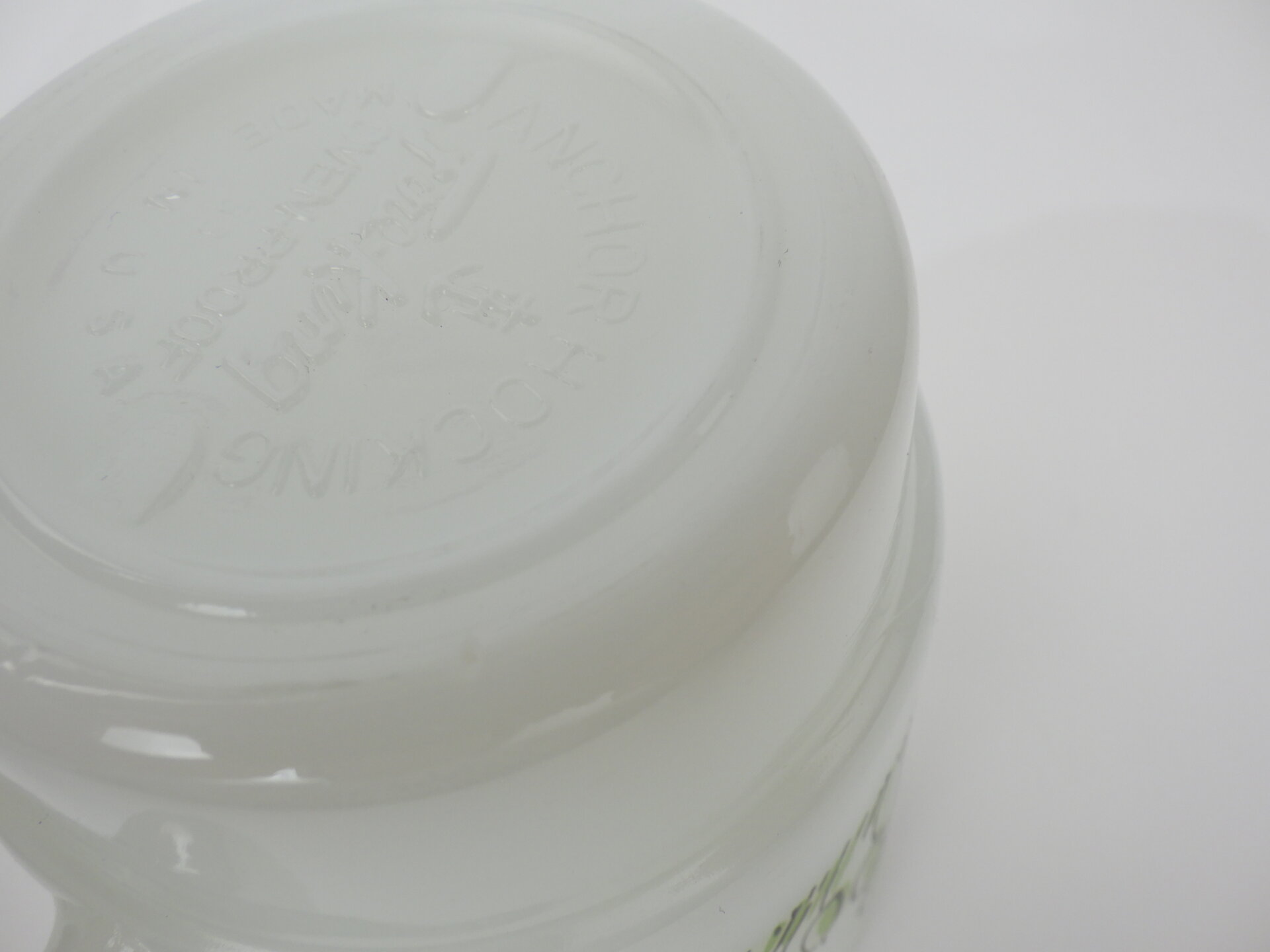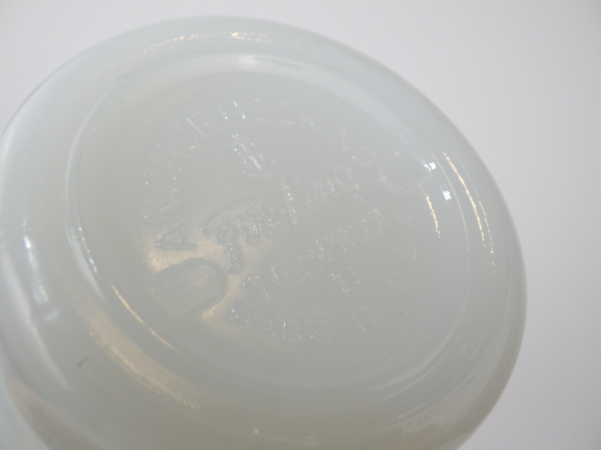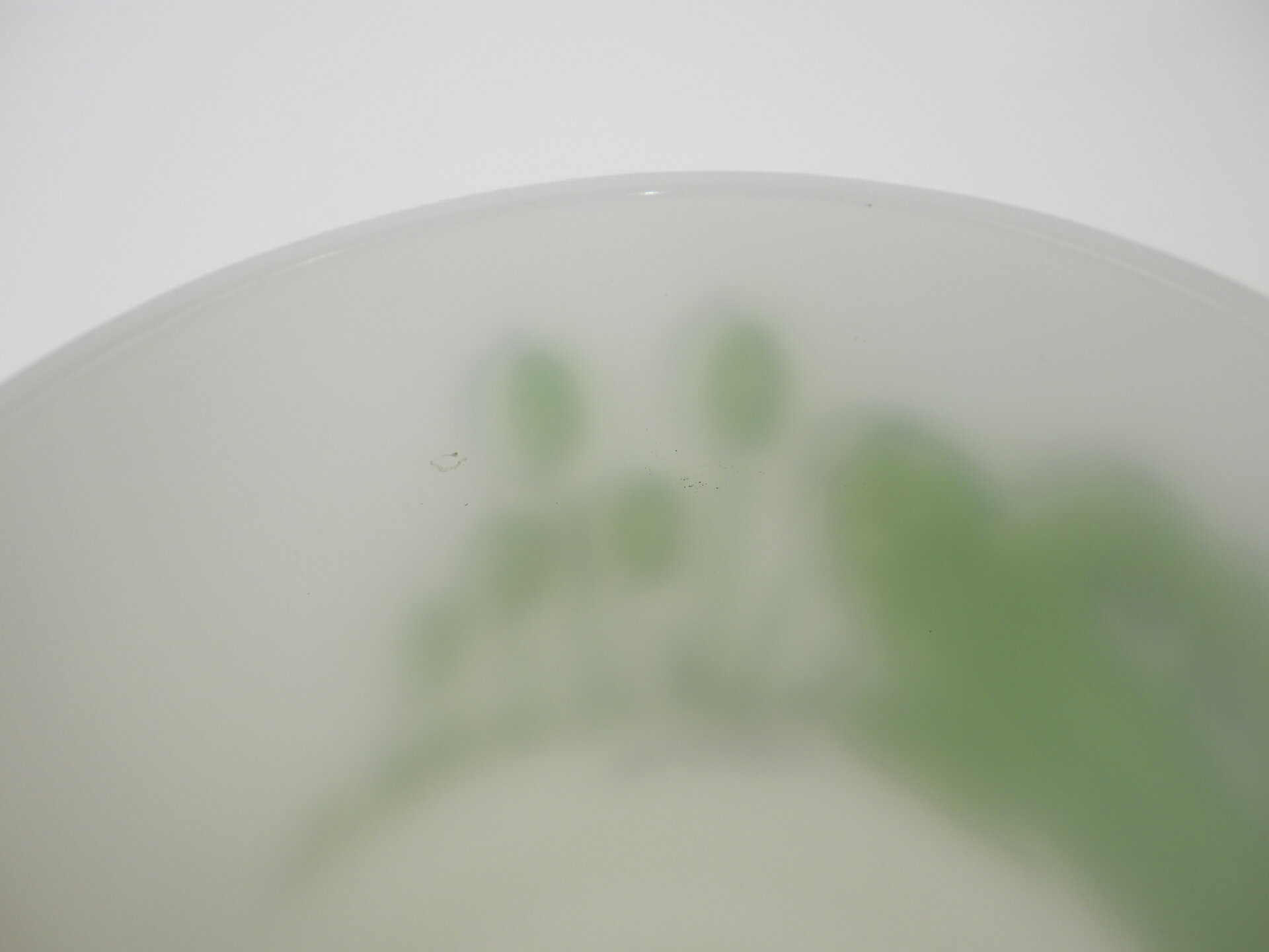 | condition | リム、ボトム、側面、内側にわずかな着色があります。 その他、製造時よりのヘアライン、劣化線、凹凸などありますが、ミルクガラス特有のものです。 |