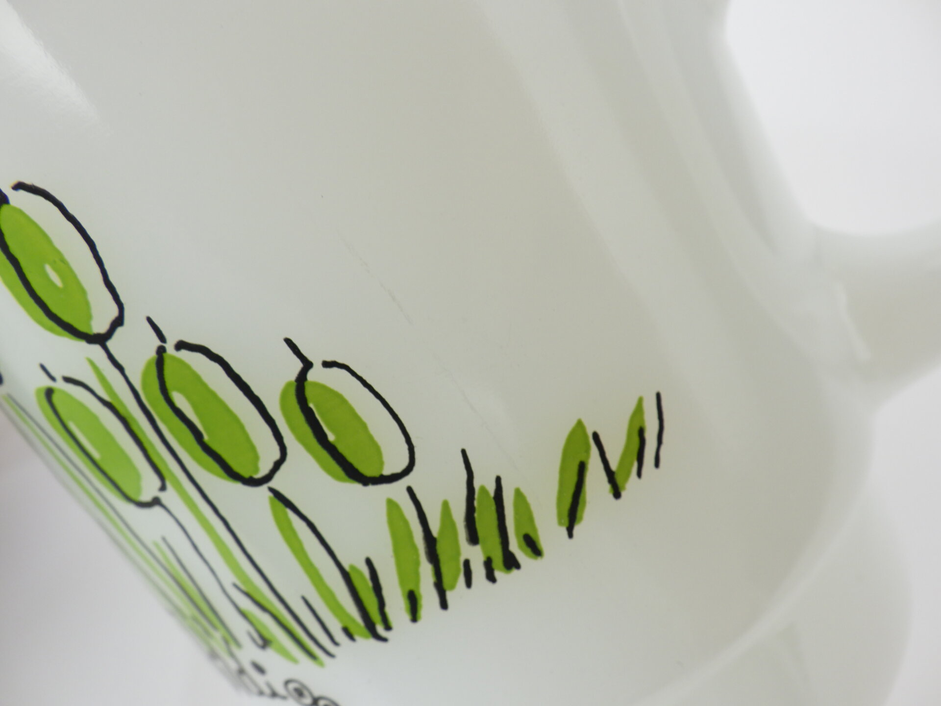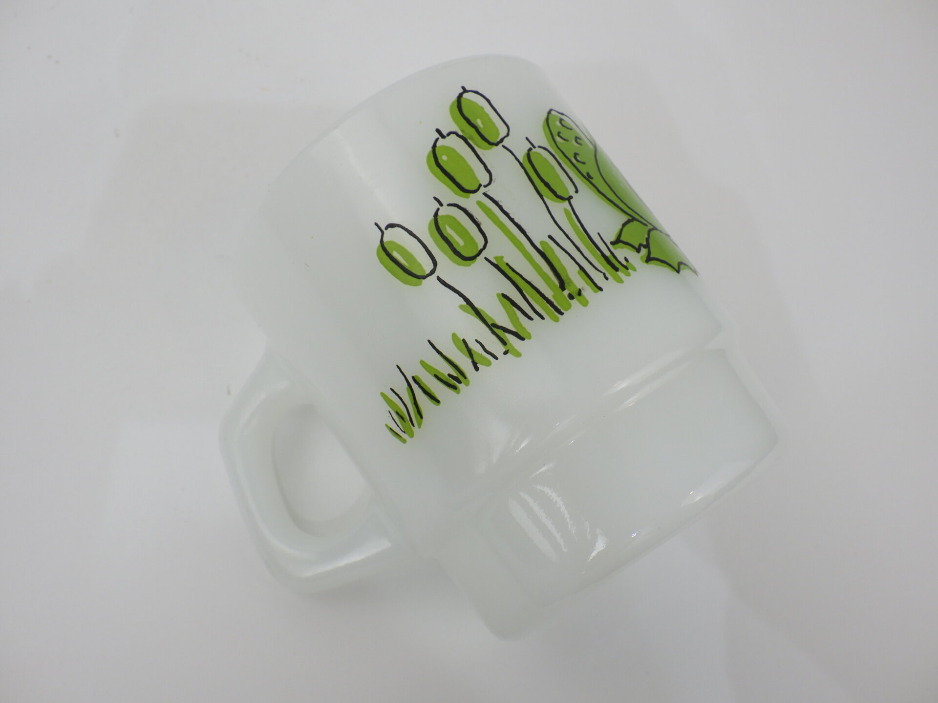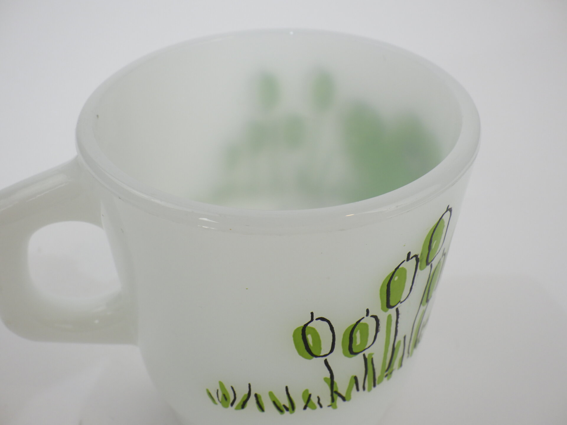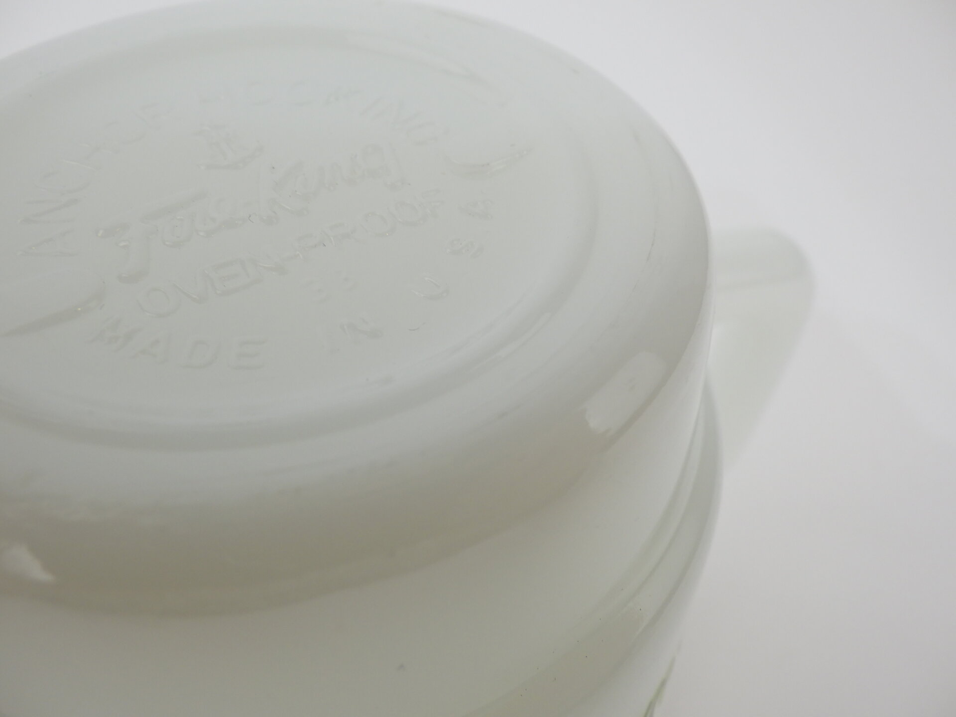 | condition | リム、ボトム、側面、内側にわずかな着色があります。 その他、製造時よりのヘアライン、劣化線、凹凸などありますが、ミルクガラス特有のものです。 |