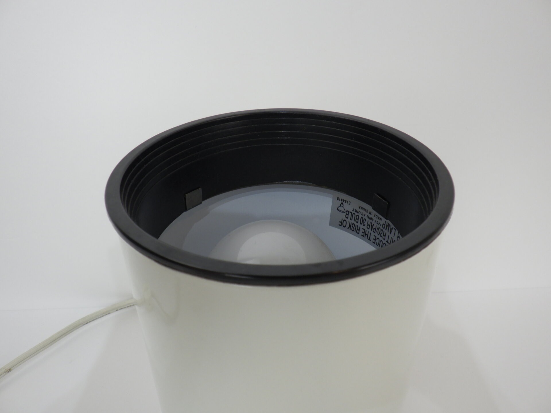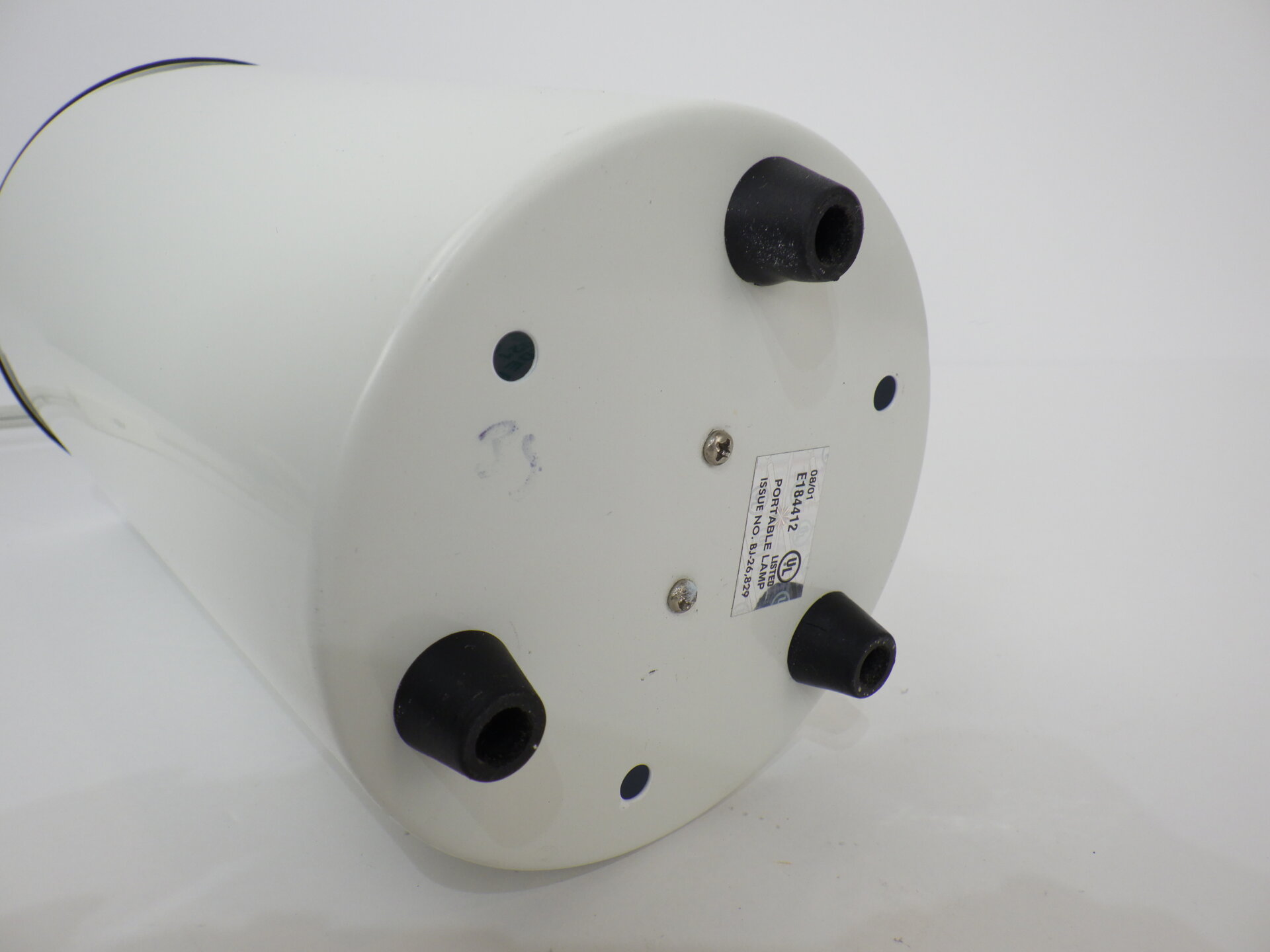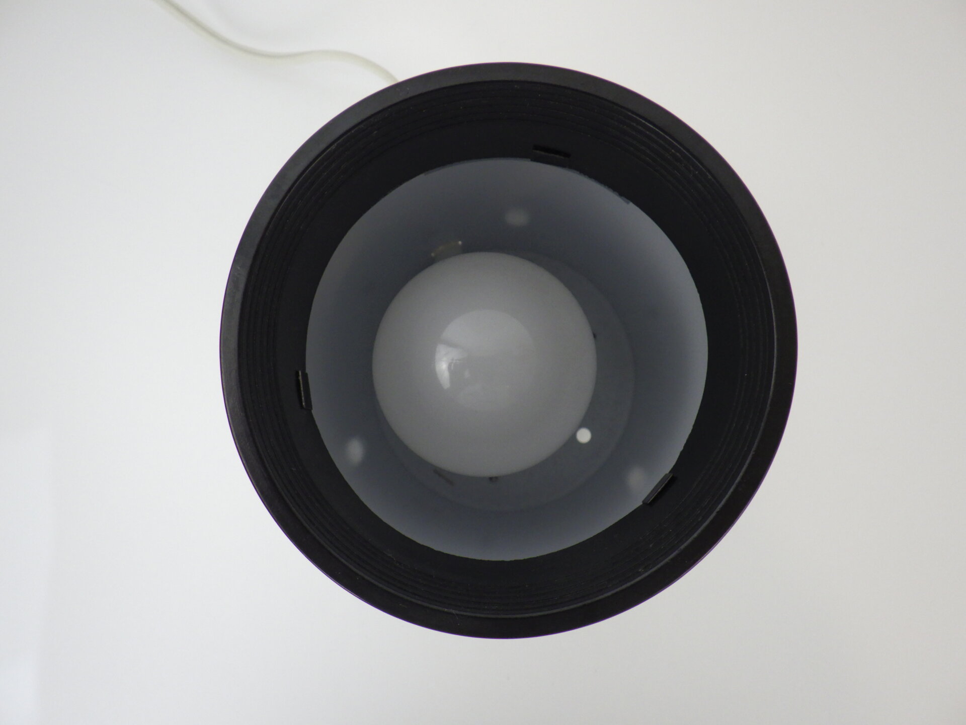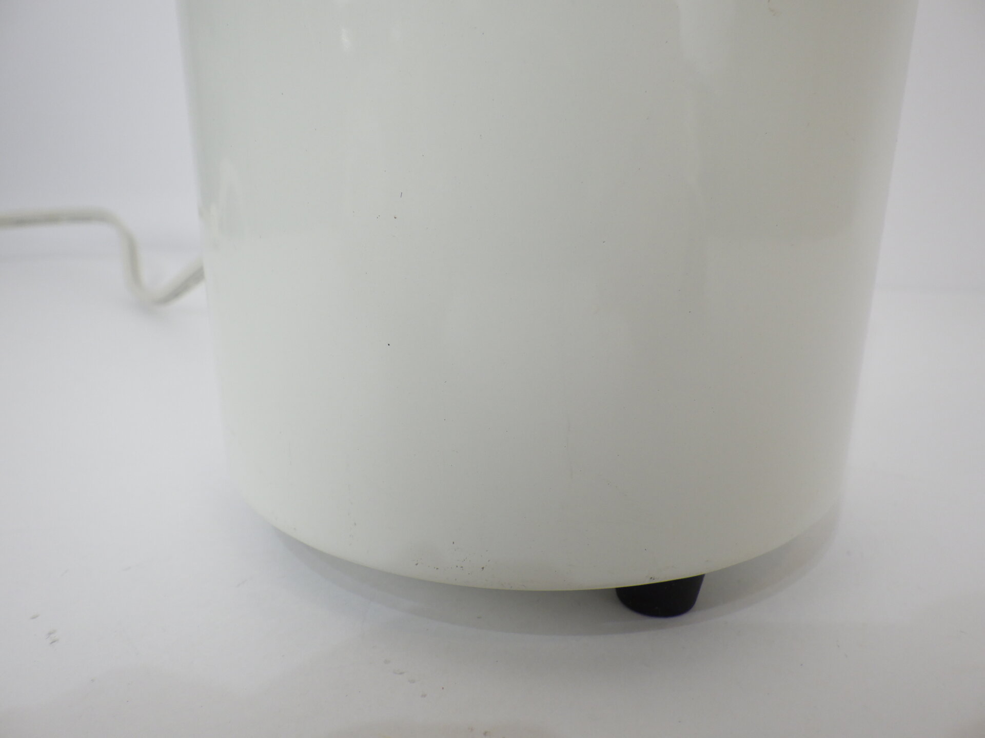 | アメリカで買い付けました。 ビンテージのテーブルランプです。 装飾など可能なまでにそぎ落とし、真っ白な円柱ボディに、上下にわずかなブラックが足されただけのシンプルなデザイン。 灯りをともすと柔らかく滲むように広がる光。 足元は数センチ浮いており、そこからもかすかに灯りがもれます。 ホテルライクな空間作りをされている方や、ミニマルな間接照明をお探しの方にぴったりなデザインです。 コード部分のスイッチでON/OFFが切り替えられます。 (電球の口金サイズ:E26 LED対応) |