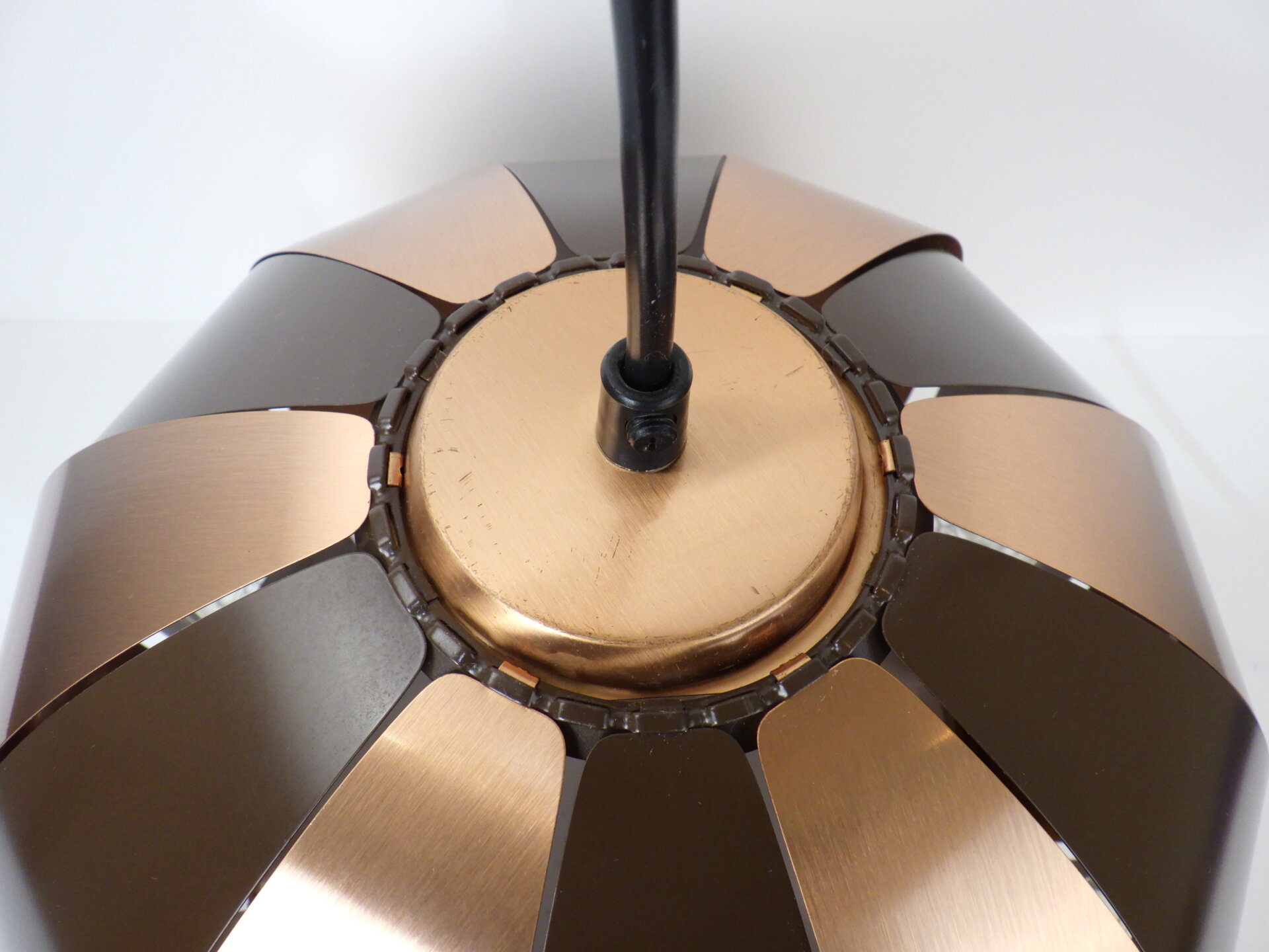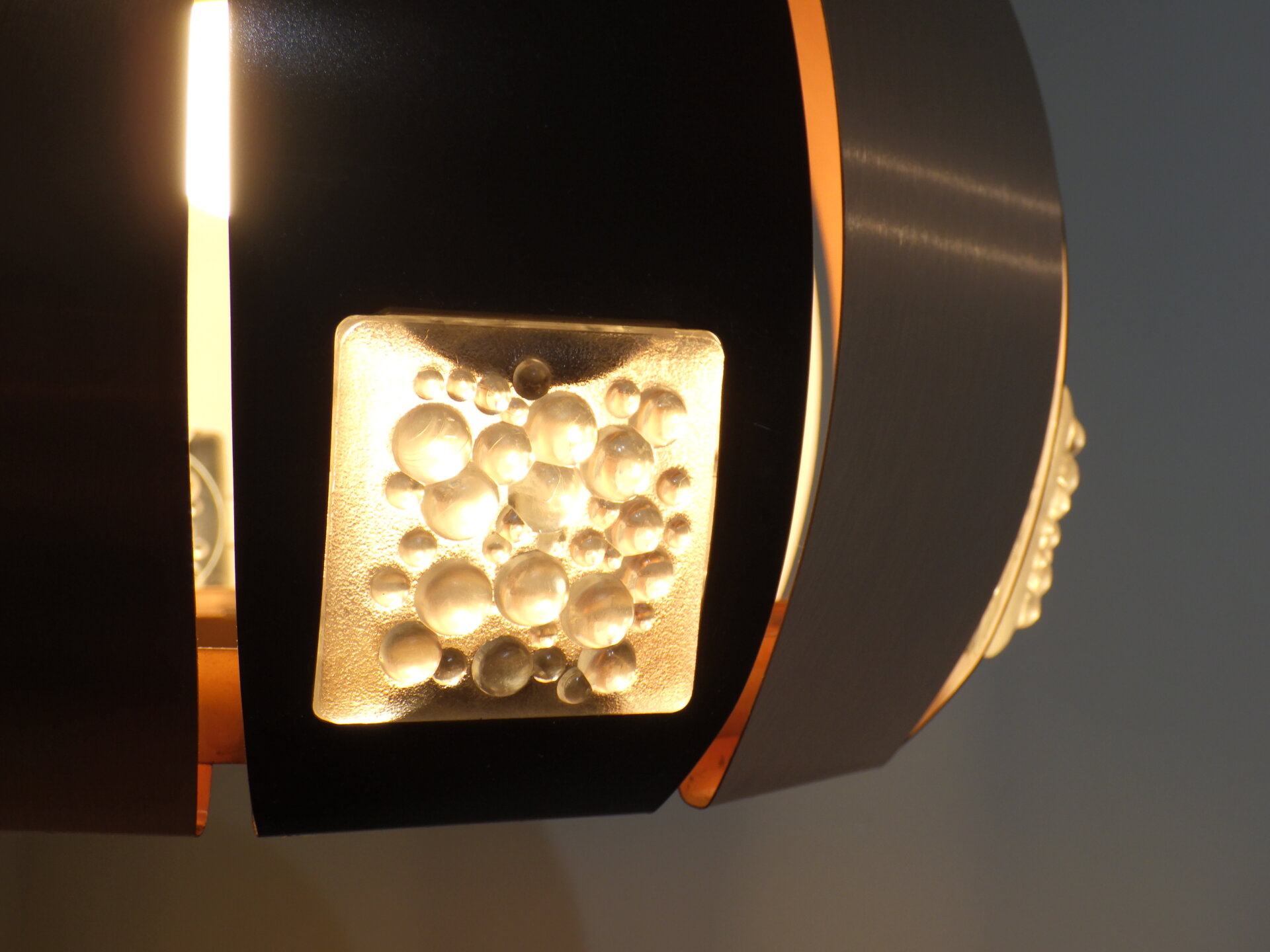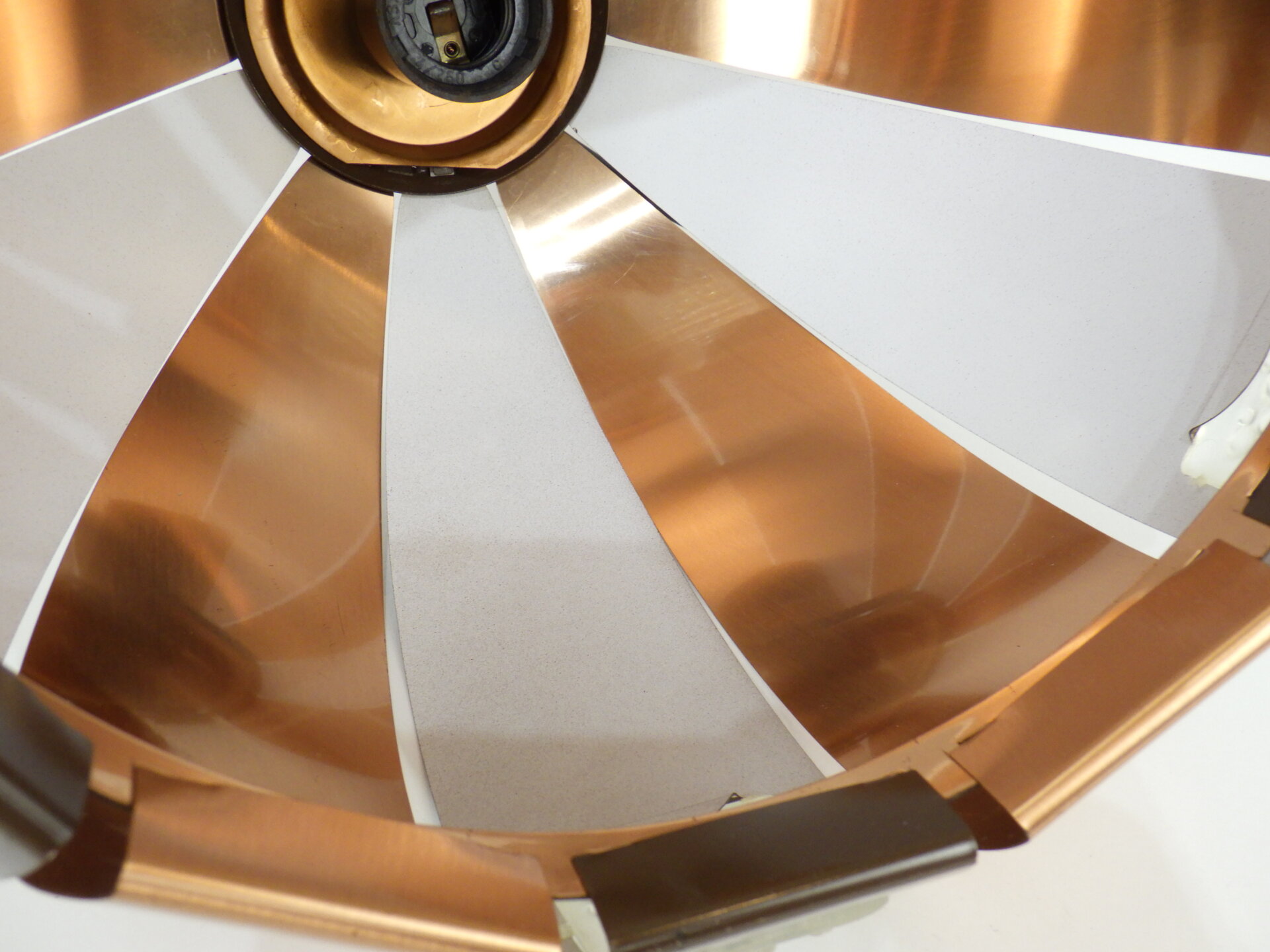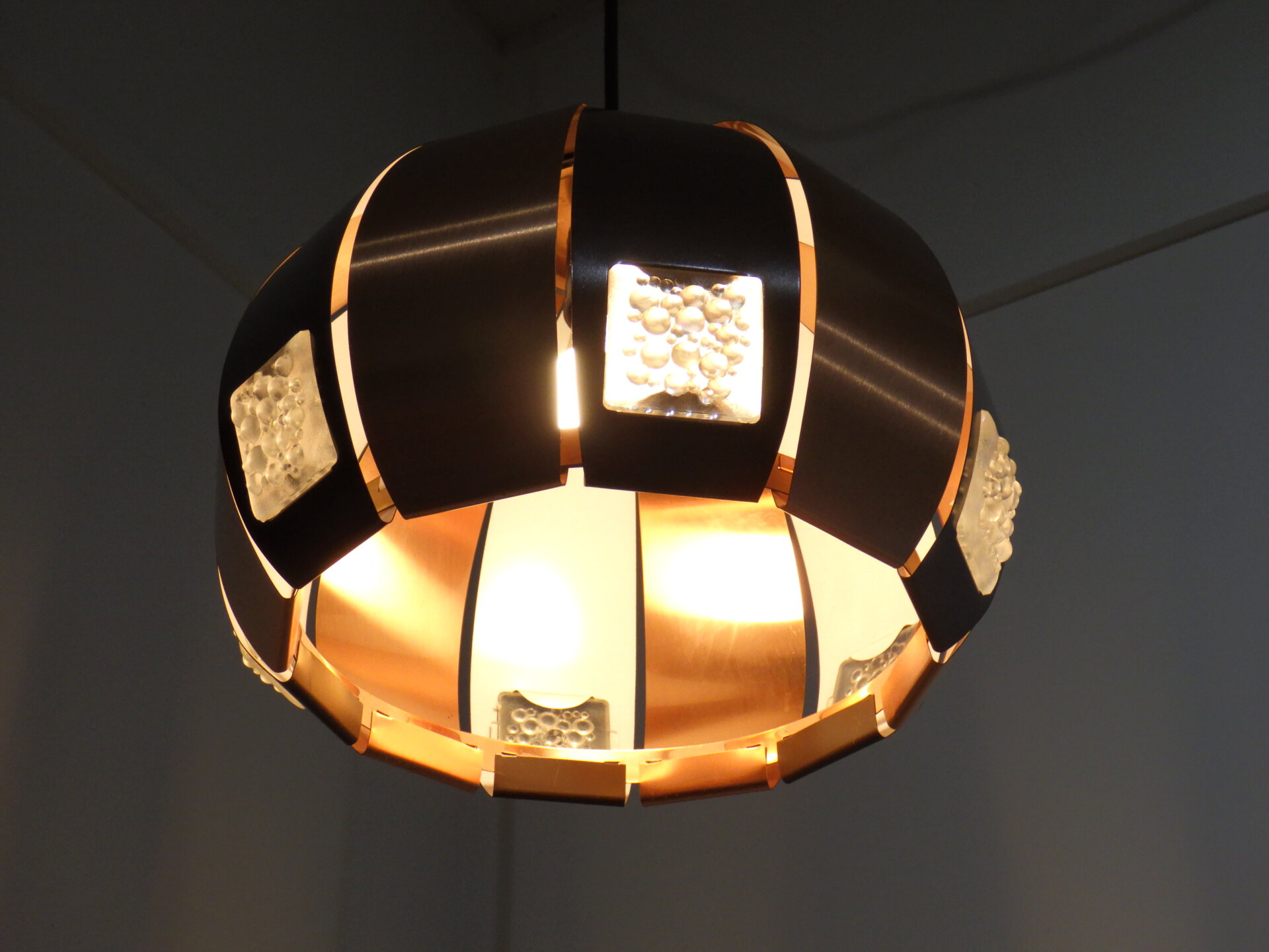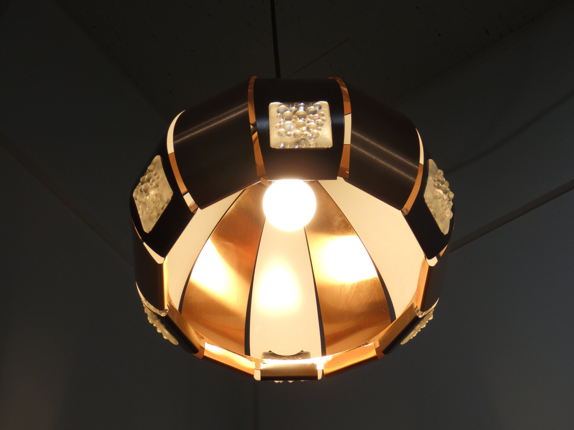 | デンマークで買い付けました。 Werner Schouデザイン、Coronell Elektroのビンテージペンダントランプです。 銅とスチールのパネルが放射状に分割されて取り付けられており、パネルの隙間とアクリルの小窓から柔らかく灯りがもれる構造は、北欧らしいグレアフリー思想(快適な光環境)ならでは。 空間にひとつ吊るすだけで、素敵な雰囲気を漂わせてくれます。 点灯していない時でも成立するオブジェ性の強さも魅力的。 リビングや寝室、ショップなどの店舗什器におすすめしています。 |
