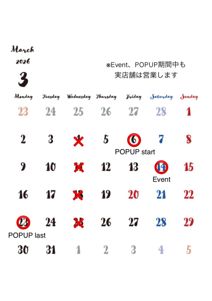 ※POPUP、イベント期間中も実店舗は営業いたします。