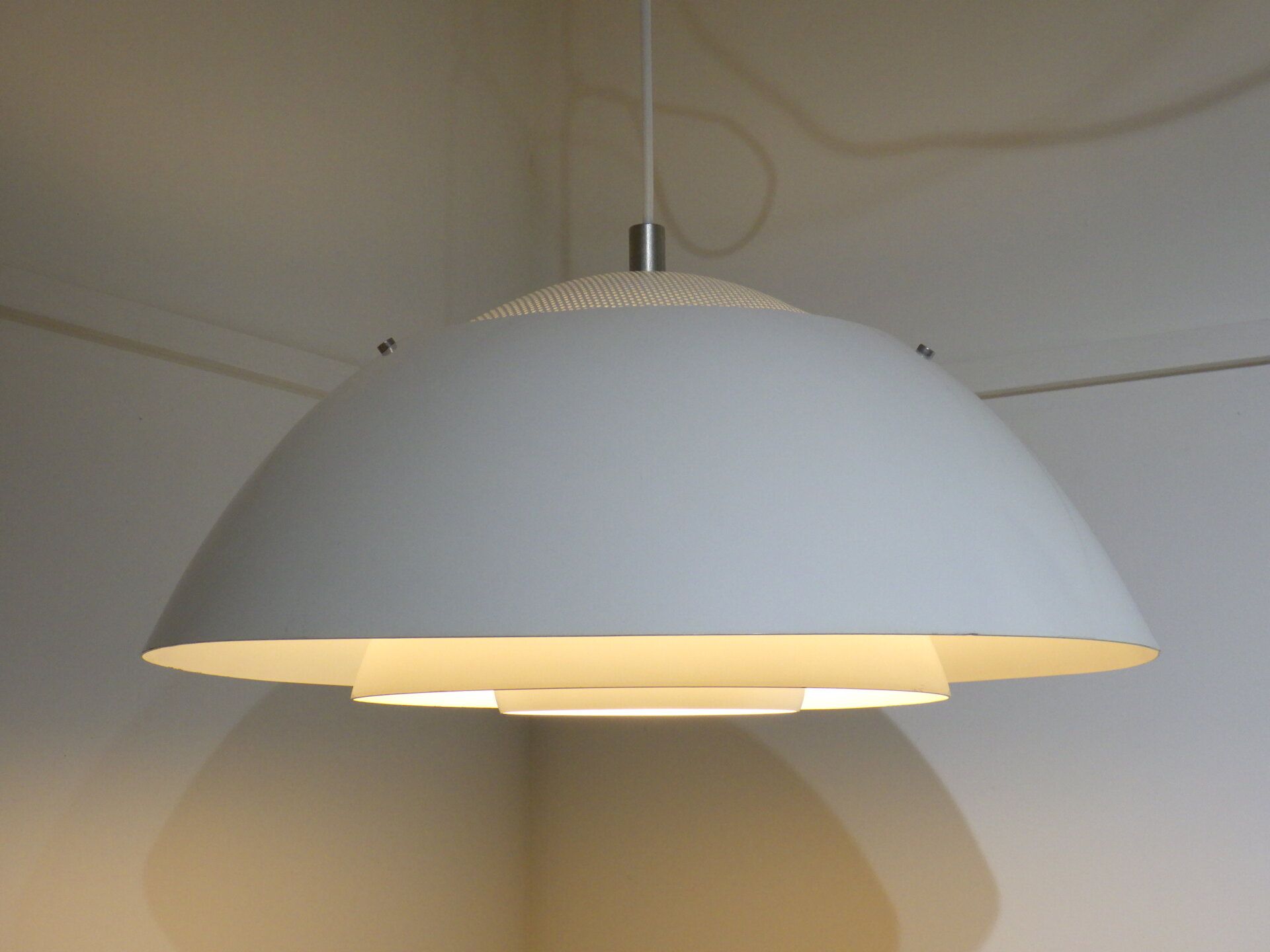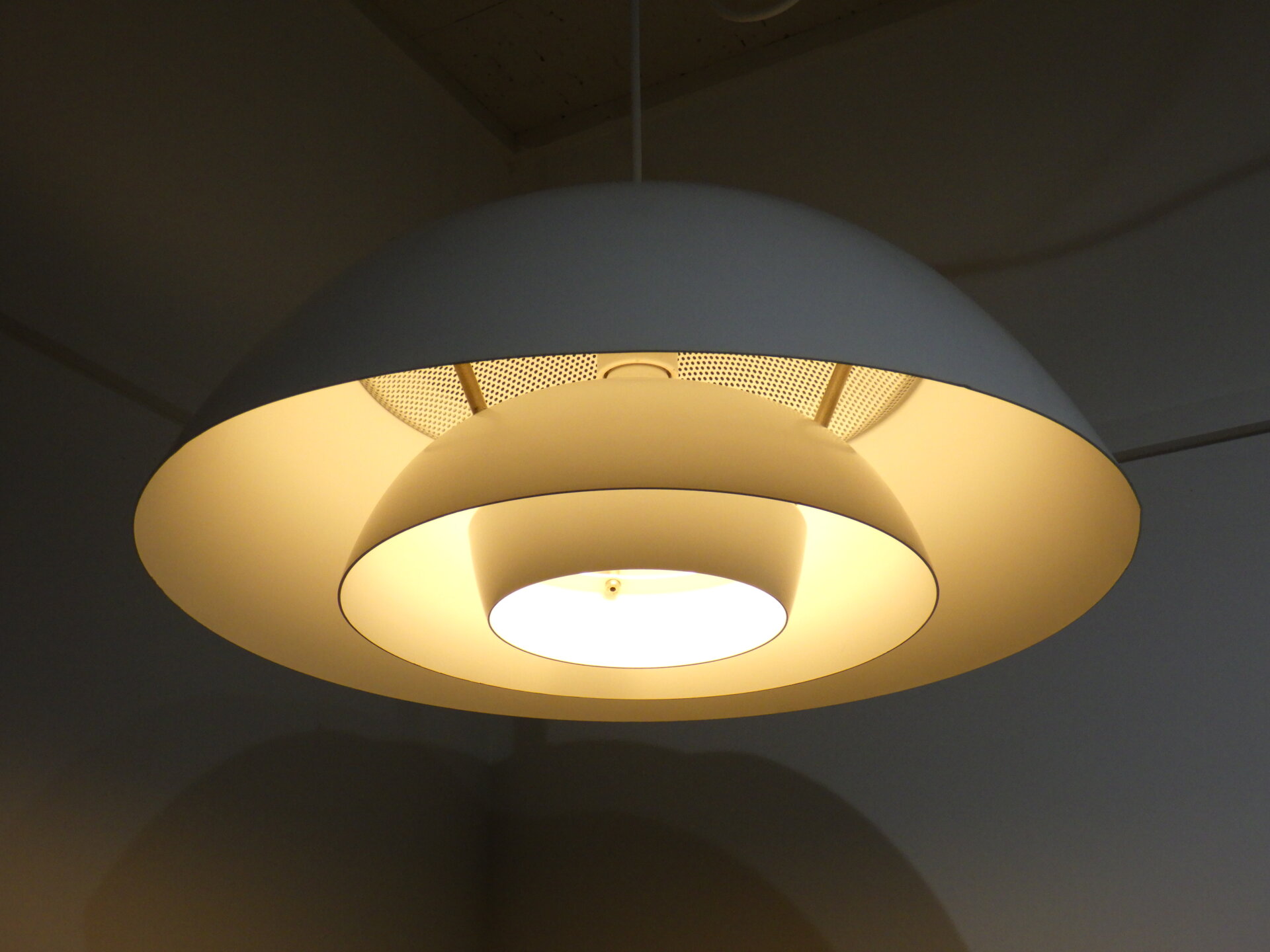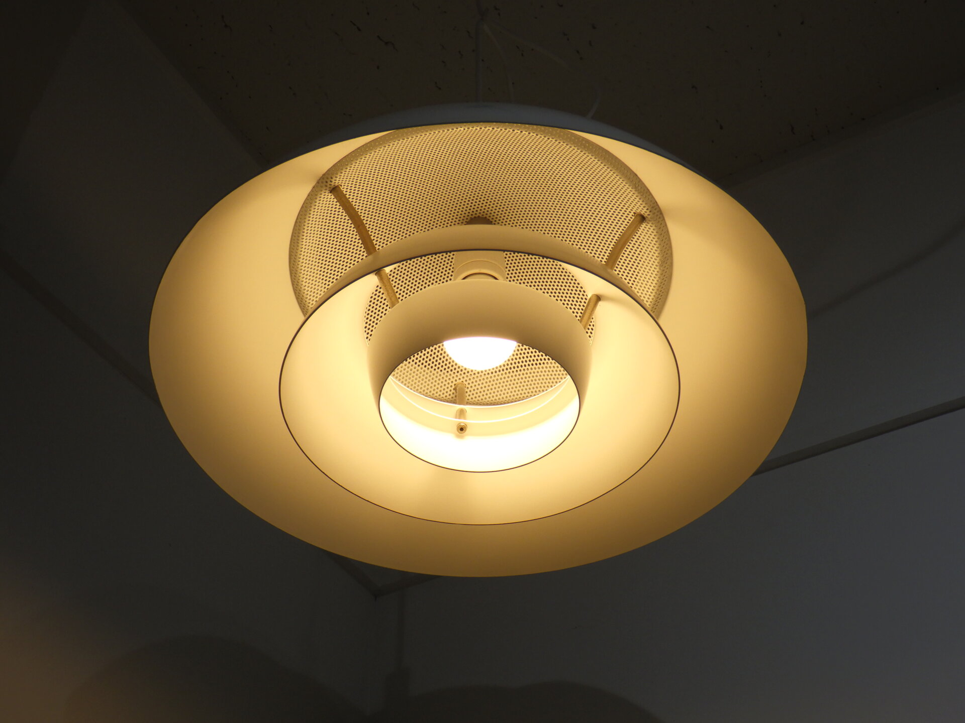 | デンマークで買い付けました。 Nordisk SolarのSafariです。 Nordisk Solarは1919年にデンマークで創業した照明メーカーで、こちらのランプは設計事務所Peter Hvidt&O.M.Nilsenが共同でデザインを手掛けました。 半球型のシェードが重なり柔らかい灯りを拡散させる、北欧らしいグレアフリー設計のランプです。 上部がパンチングになっているため、熱がこもらず天井方向にも灯りが漏れるようになっています。 1981年に世界的権威ある「iFデザインアワード」を受賞した、北欧ビンテージ照明の中でも評価の高いペンダントランプです。 ご自宅のダイニングに合わせたり、ショップやカフェなどの商業空間のアクセントとして取り入れられるのもおすすめしています。 |