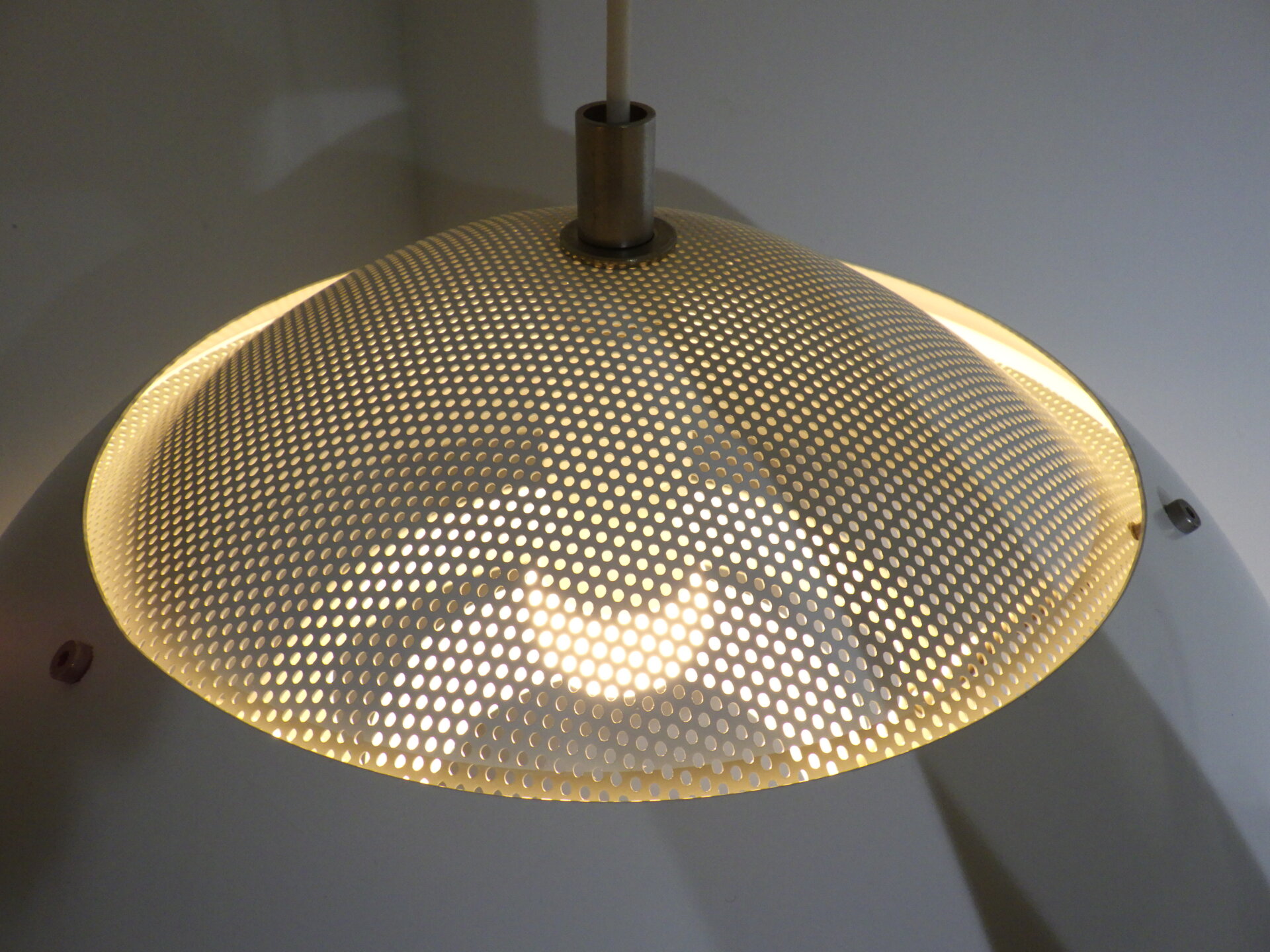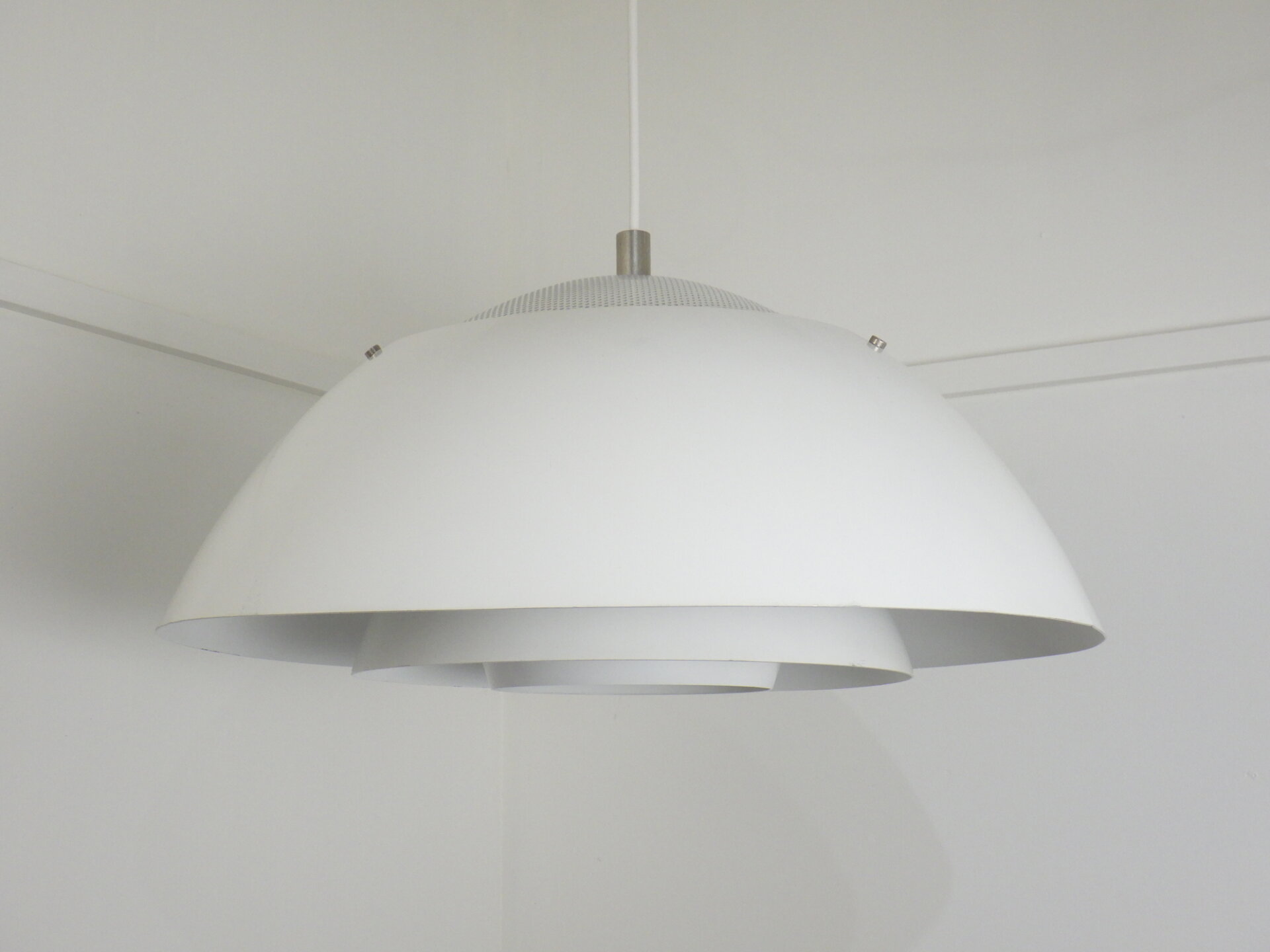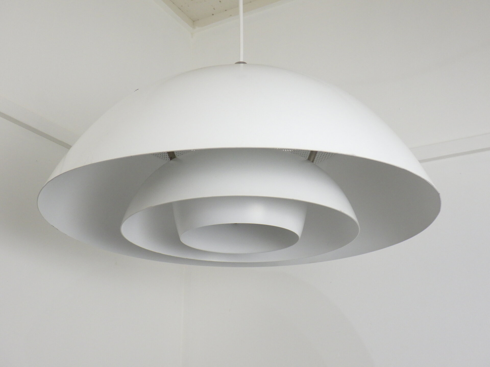 | デンマークで買い付けました。 Nordisk SolarのSafariです。 Nordisk Solarは1919年にデンマークで創業した照明メーカーで、こちらのランプは設計事務所Peter Hvidt&O.M.Nilsenが共同でデザインを手掛けました。 半球型のシェードが重なり柔らかい灯りを拡散させる、北欧らしいグレアフリー設計のランプです。 上部がパンチングになっているため、熱がこもらず天井方向にも灯りが漏れるようになっています。 1981年に世界的権威ある「iFデザインアワード」を受賞した、北欧ビンテージ照明の中でも評価の高いペンダントランプです。 ご自宅のダイニングに合わせたり、ショップやカフェなどの商業空間のアクセントとして取り入れられるのもおすすめしています。 |