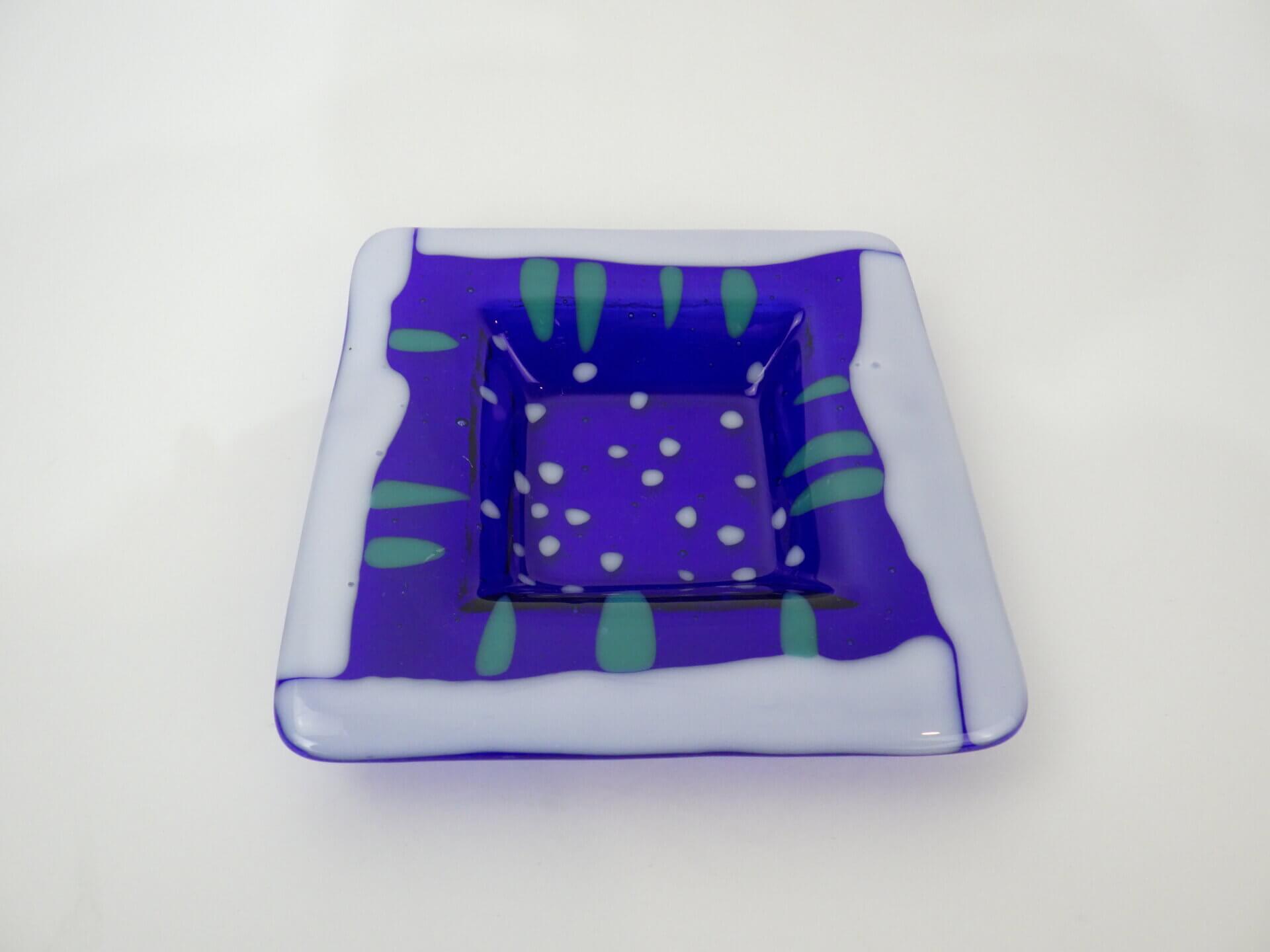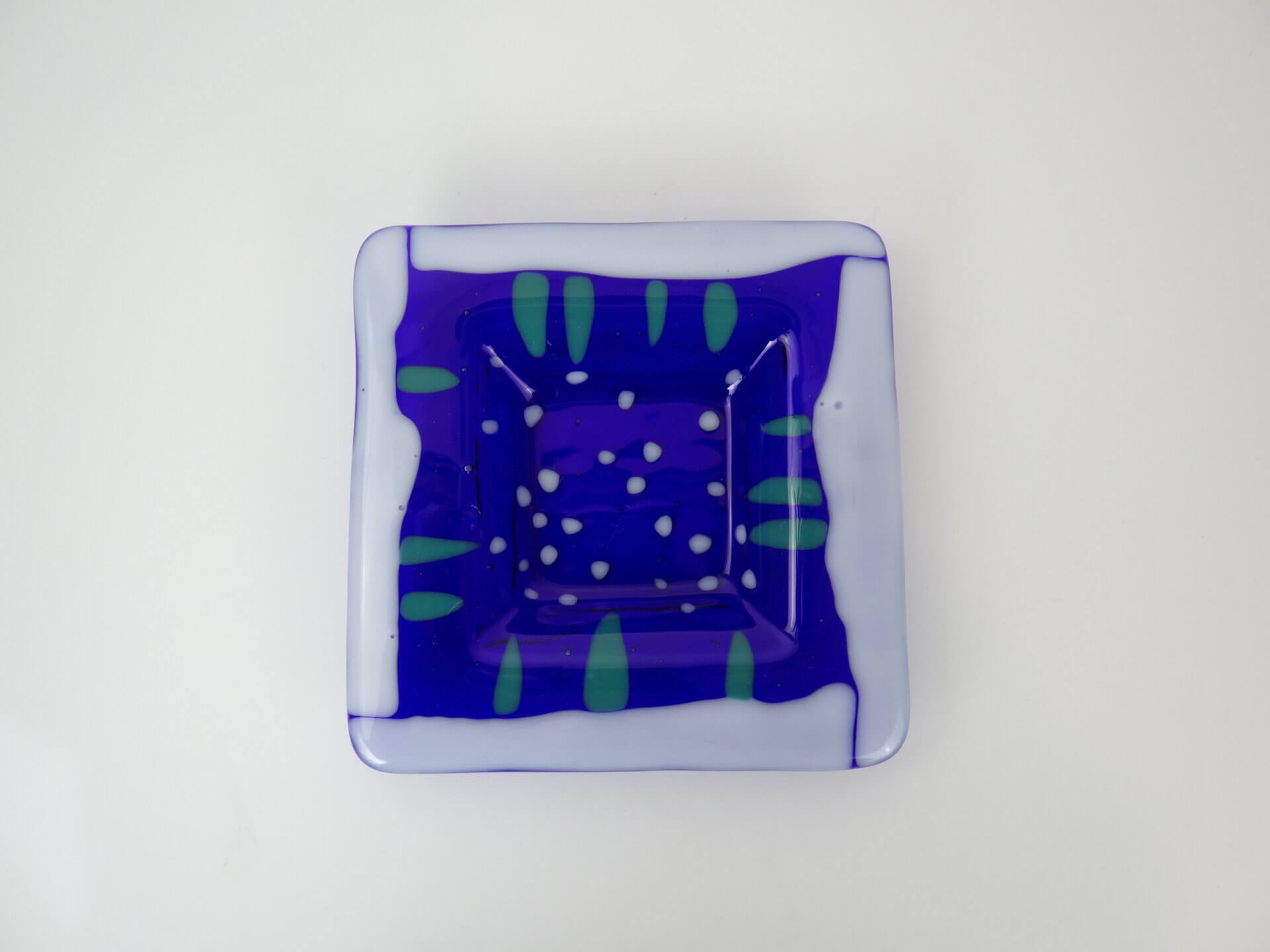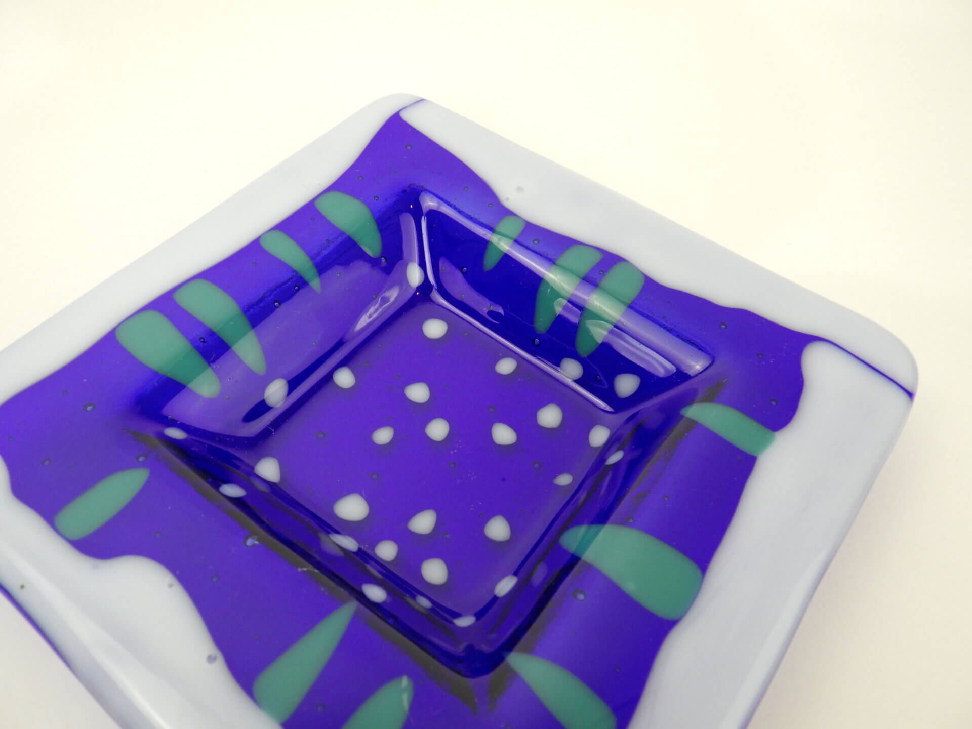 | ヨーロッパで買い付けました。 ビンテージのアートトレーです。 深みのあるブルーをベースに、ホワイトの縁取りとターコイズグリーンのライン、さらにガラスの中に浮かぶような白いドット装飾が印象的。 立体的な厚みのある成形ガラスと、宝石を閉じ込めたような内部の気泡の粒が、光を受けると美しく輝きます。 アクセサリートレーや小物置き、灰皿としてはもちろん、オブジェの様に飾るだけでも空間に彩りを添えてくれるアイテムです。 |