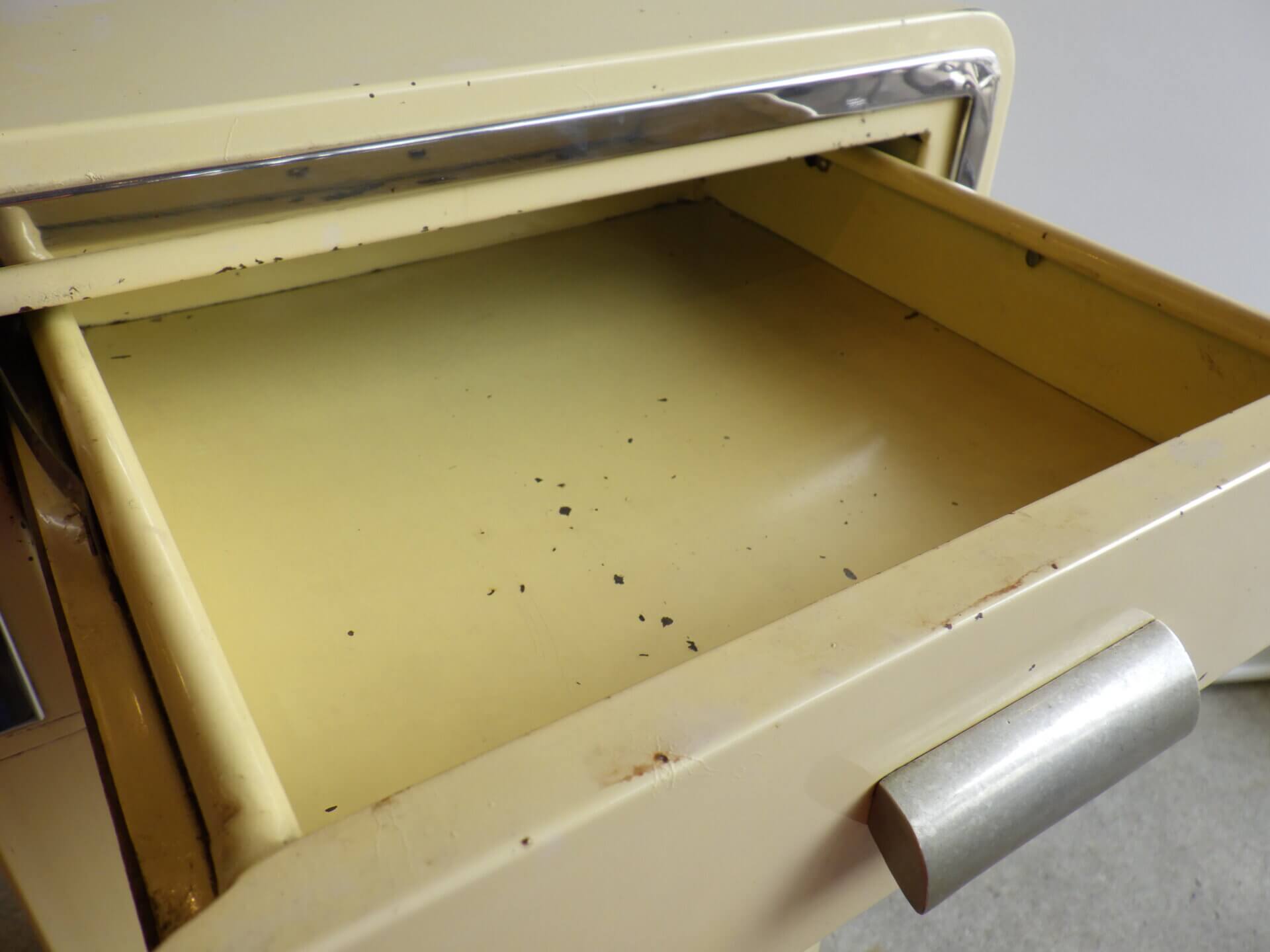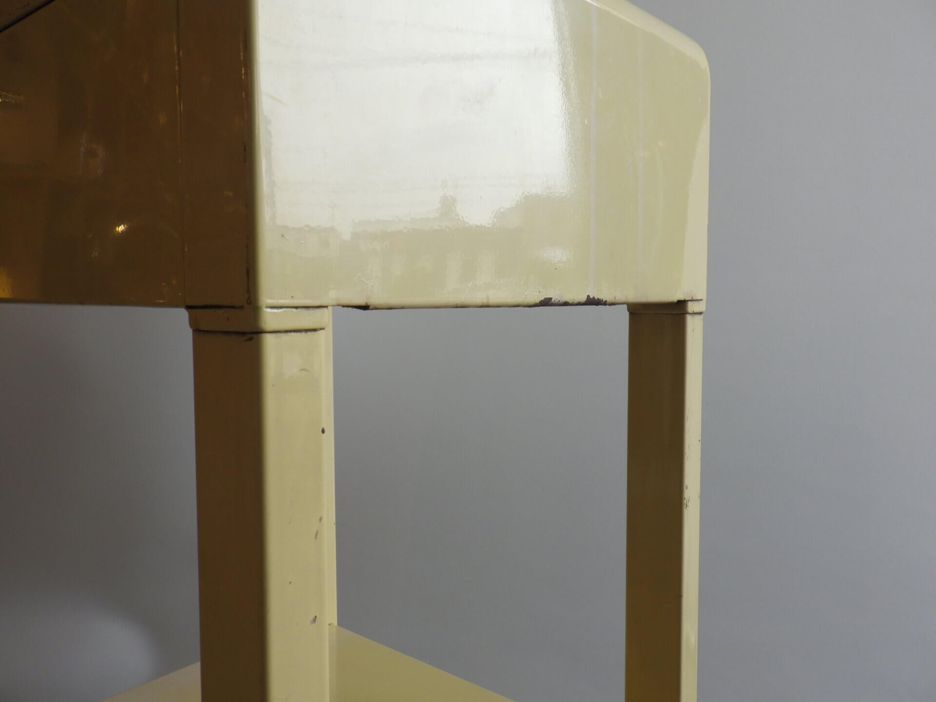 | condition | 経年によるキズ、汚れ、塗装の剥がれ、サビなどありますが、ご使用に影響のある大きなダメージはなく、ビンテージらしい良い雰囲気です。 (引き出しの動きもスムーズです) 不明な点や追加画像が必要な場合は、お気軽にお問い合わせ下さい。 |