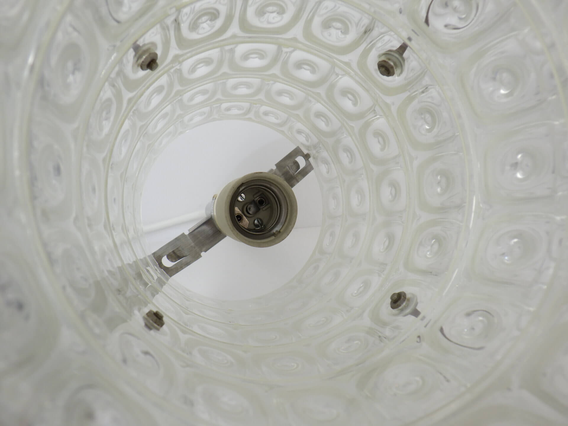 | ヨーロッパで買い付けました。 ERCO社製のプラスチックペンダントランプです。 1934年にドイツで創業した老舗照明ブランドのERCO。 「光そのものをデザインする」思想で知られ、視覚体験をコントロールすることに特化した設計になっています。 そのため、美術館やギャラリー、ホテル、高級ブティックなどで用いられることも多く、高い評価を得ています。 こちらの照明も、ERCOらしい「光の質」にフォーカスされており、厚みのあるプラスチックシェードに施された幾何学的なレリーフは、点灯時に独特の陰影を生み出し、空間にリズムを与えてくれます。 多重構造のシェードは、光源を直接見せずに光をコントロールする設計。 ERCOが得意とする「眩しさを抑え、空間を美しく見せる光」を体現しています。 素材には軽量で扱いやすいプラスチックが採用されており、ダイニングやリビング、ショップ空間にも取り入れやすい一点です。 |
