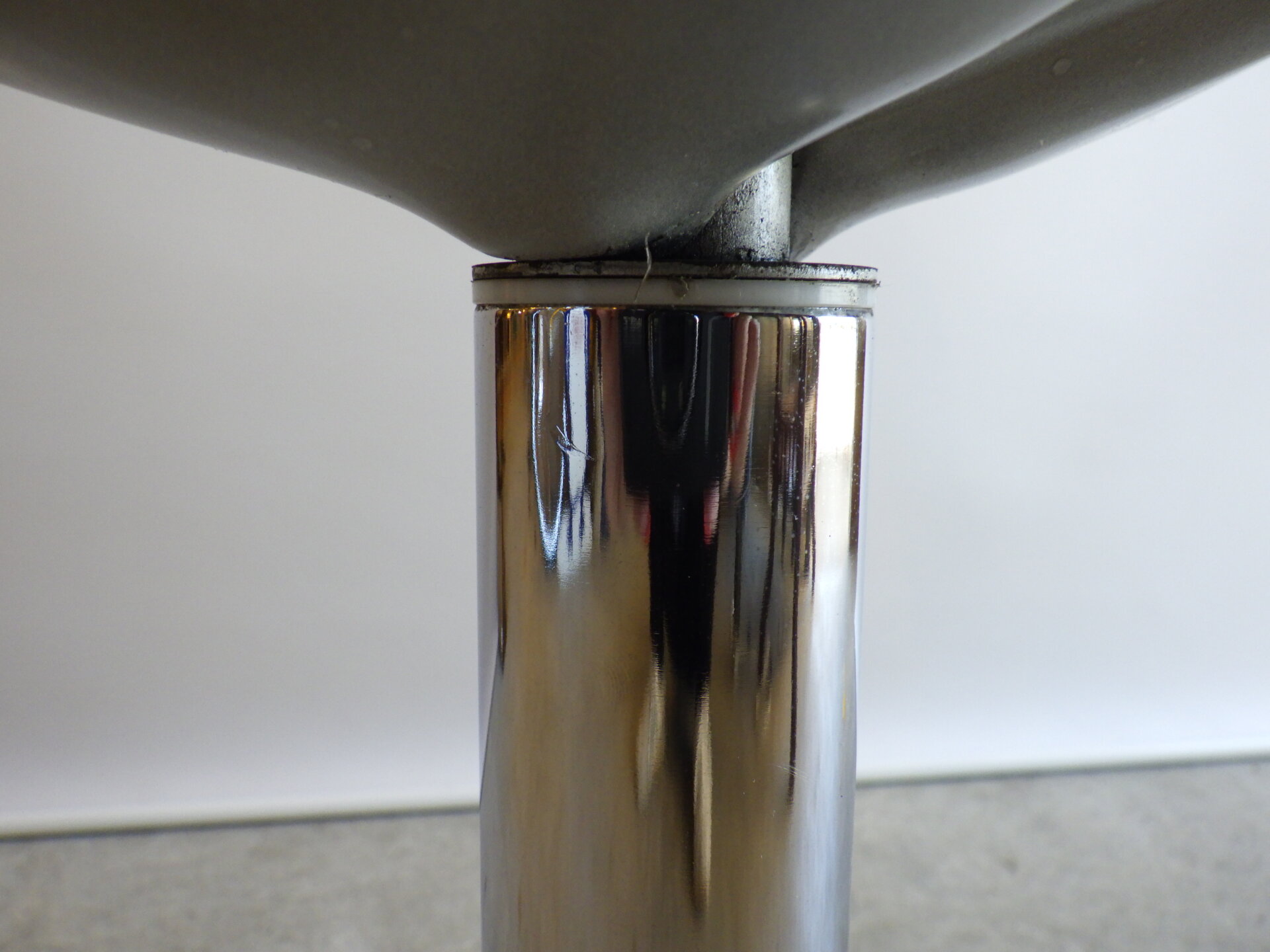 | アメリカで買い付けました。 無機質な美しさと造形美が際立つ、ビンテージシェルチェアです。 滑らかに成形されたシェルは、光を受けて表情を変えるメタリックな質感が特徴。 無駄を削ぎ落したミニマルなフォルムでありながら、身体に自然にフィットする曲線設計により、見た目以上の快適さを備えています。 回転式ベースには安定感のある四本脚を採用。 軽やかでありながらしっかりとした存在感を持ち、空間にクリーンで洗練された印象を与えてくれます。 ダイニングやワークスペースにはもちろん、単体でオブジェのように置くだけでも空間の完成度をひいき上げてくれる一脚です。 |