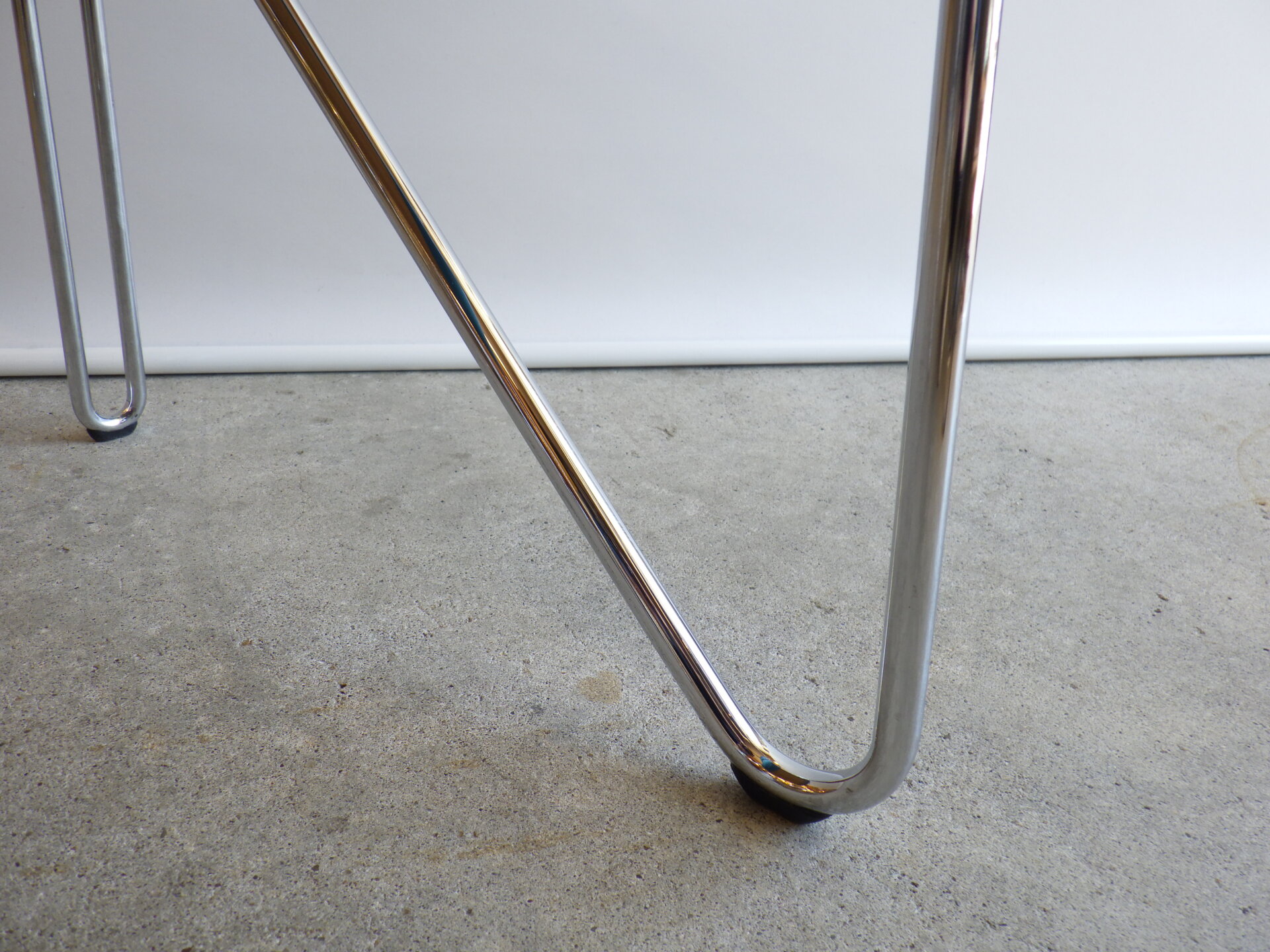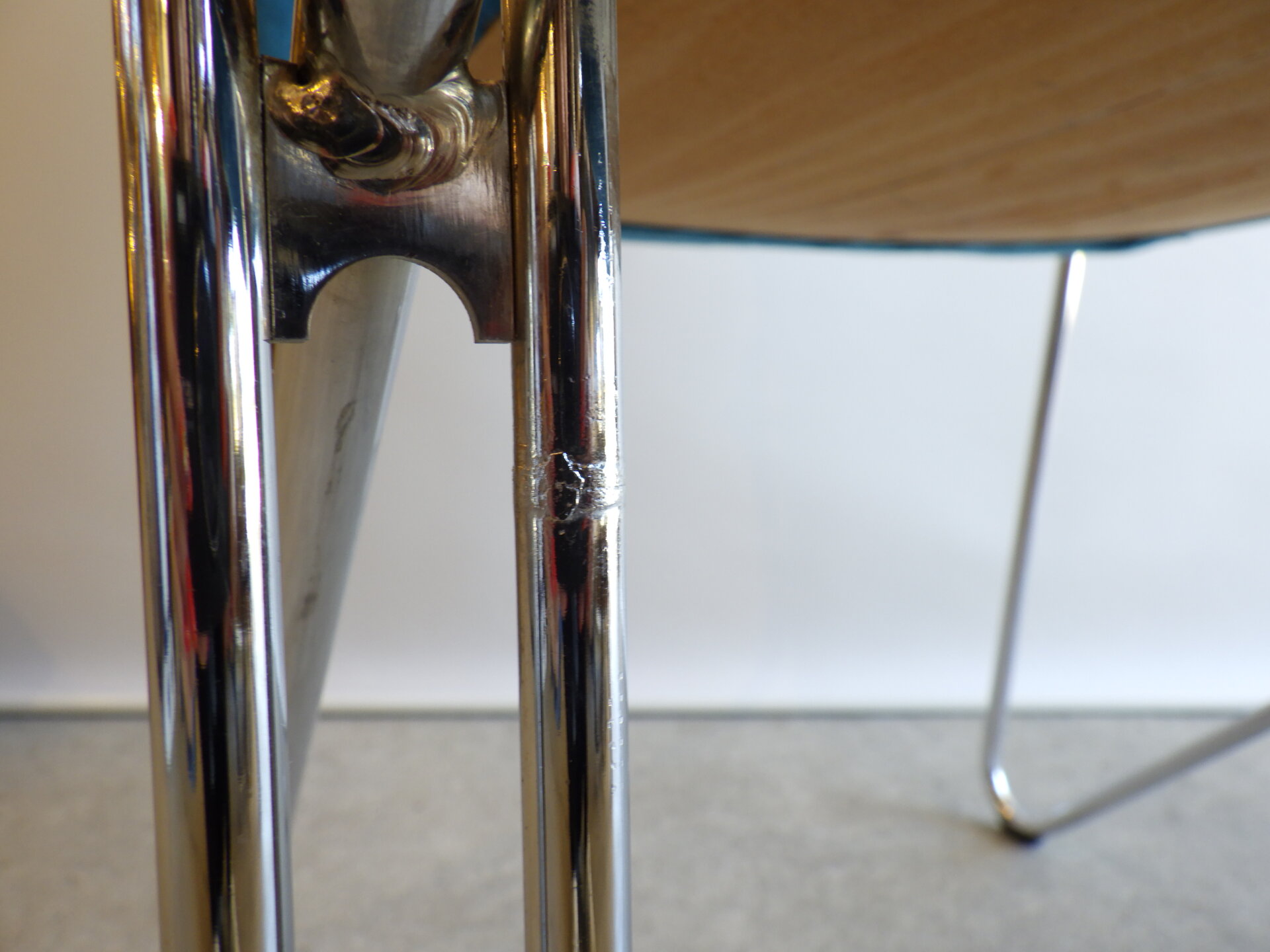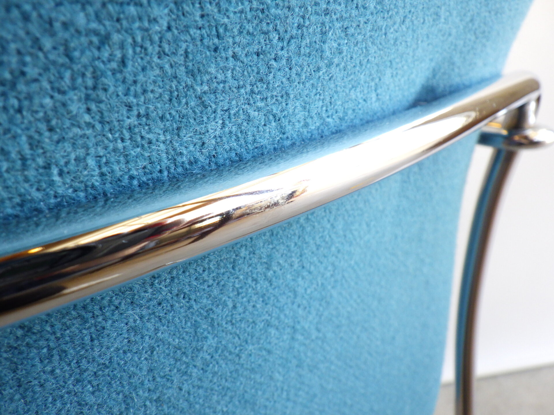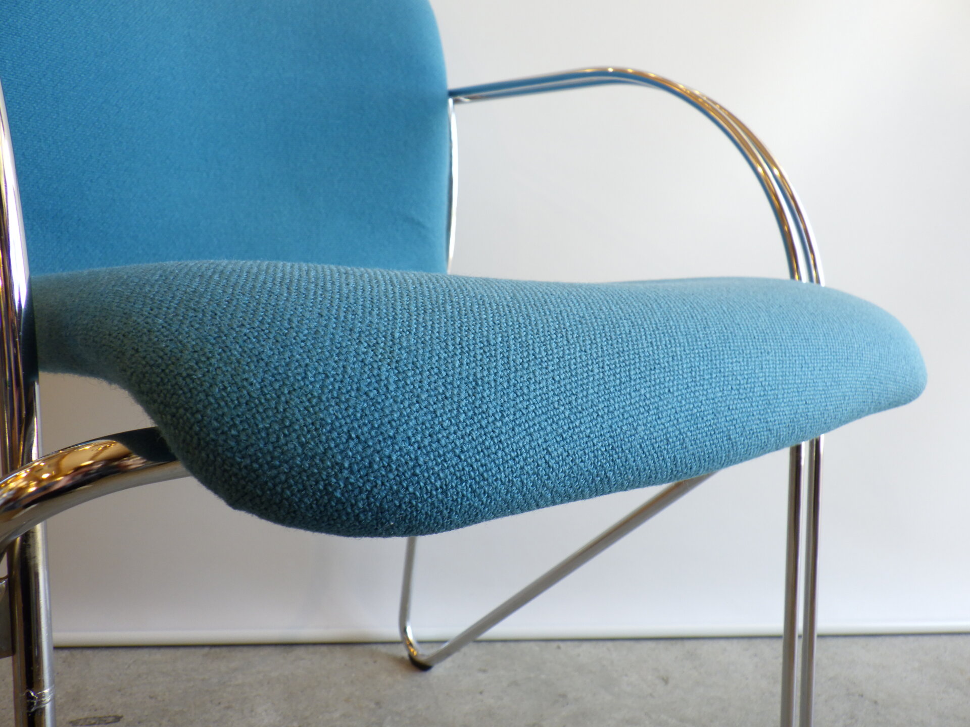 | デンマークで買い付けました。 Alfred Homannデザイン、Labofa社製のスタッキングアームチェアです。 クロムメッキのチューブフレームと、身体に沿うように成形されたシートが特徴で、軽やかな構造と快適な座り心地を両立した一脚です。 視覚的に抜けのあるフレーム構造は空間に圧迫感を与えず、ダイニングやデスク周りにも自然に馴染みます。 ターコイズブルーのファブリックは、ウッドやガラス、モダンなインテリアに程よいアクセントを加え、空間全体の印象を引き締めてくれますよ。 日常使いからディスプレイまで幅広く活躍するアイテムですので、ご自宅使い、店舗什器どちらにもおすすめのアイテムです。 |