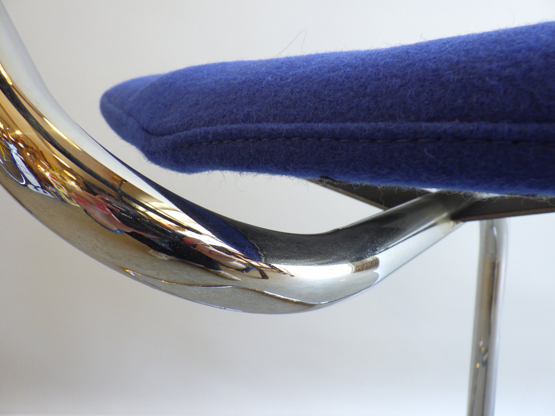| 1982年、ドイツのデザイナー「Stefan Wewerka(ステファン・ヴェヴェルカ)」によって生み出されたTECTA社の名作「B5 カンチレバーチェア」。 約三メートルにも及ぶスチールチューブを一本で曲げ構成した、極めてミニマルかつ実験的な一脚です。 通常のカンチレバー構造とは異なり、たった一本の支持で成立する非対称な独創的フォルムは、見る者に強いインパクトを与えます。 体の動きに呼応するような柔軟性を持ち、座るという行為そのものに新たな感覚をもたらします。 空間に置くだけで視線を集める造形美と、実際に使うことで感じる独特の浮遊感。 家具を「使える彫刻」として捕えたWewerkaらしい、機能と造形の境界を曖昧にするアートピースのような、コレクタブルな一脚です。 |