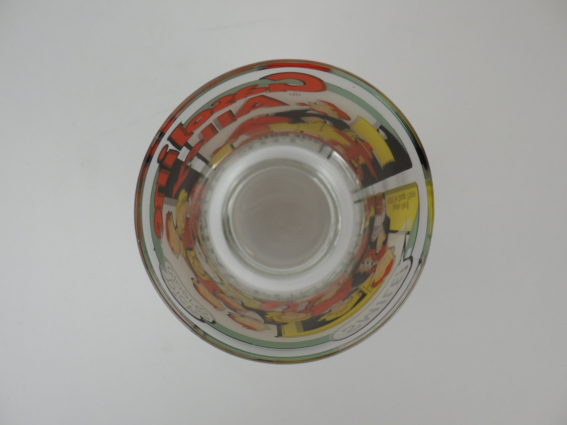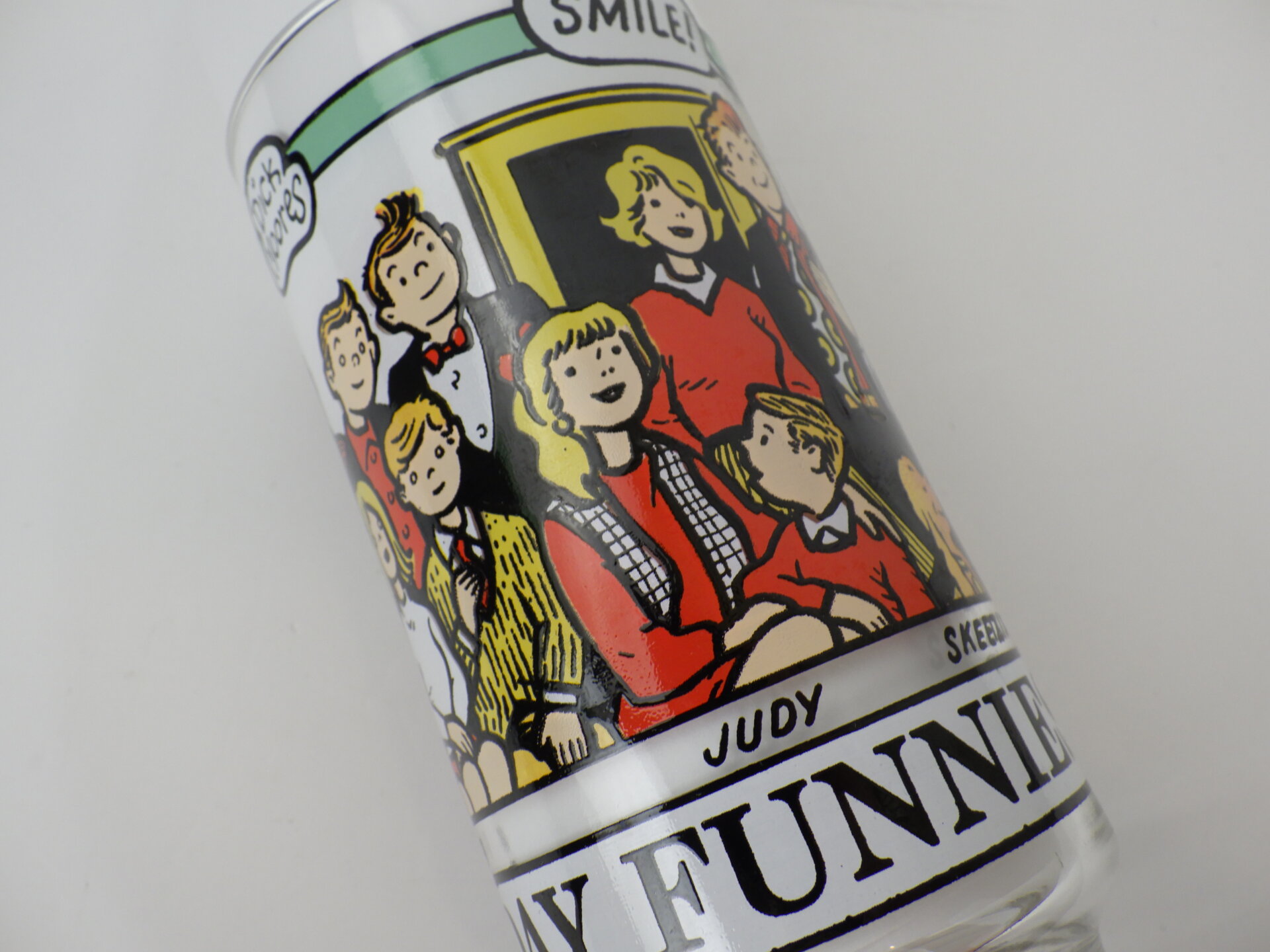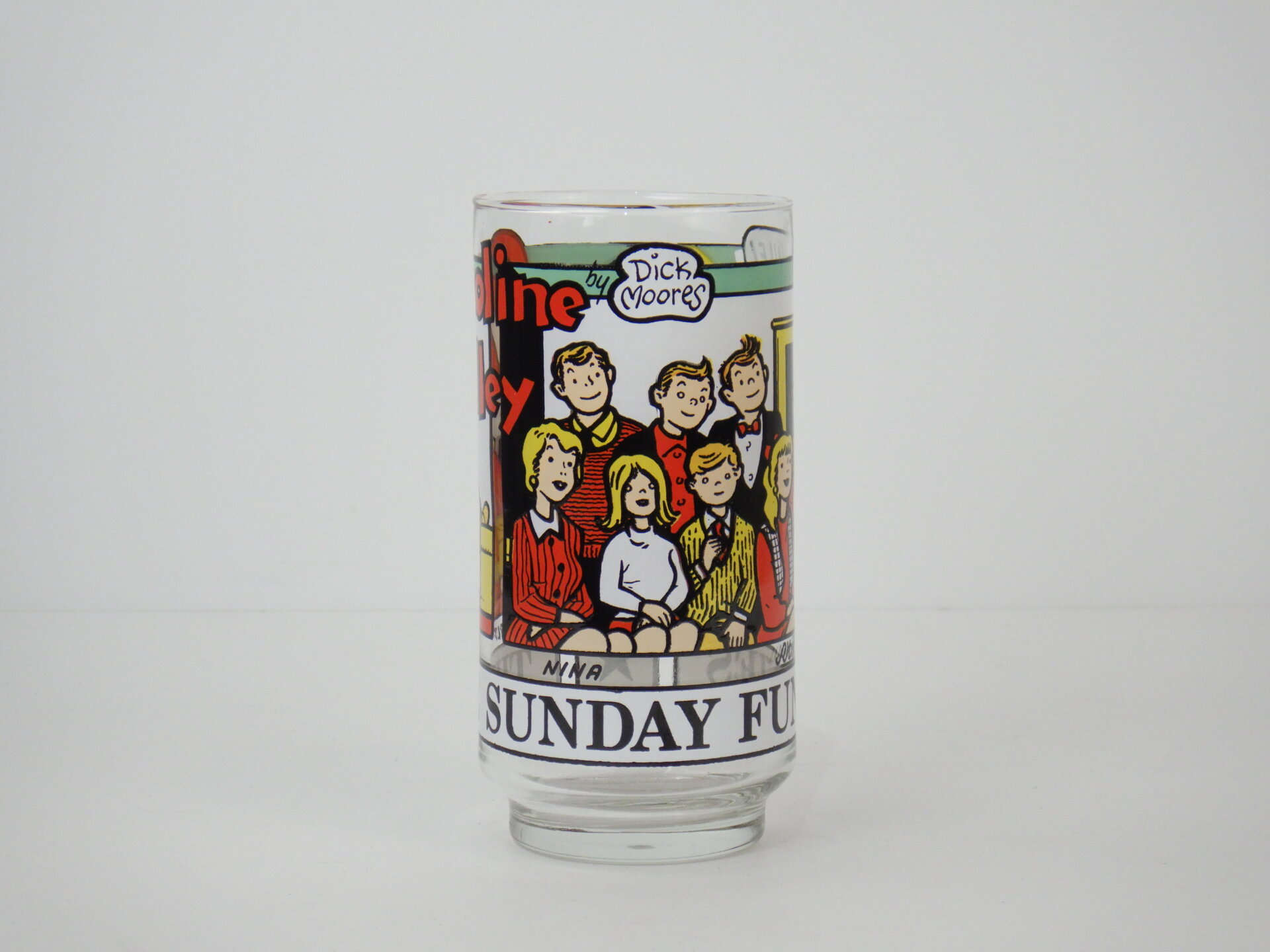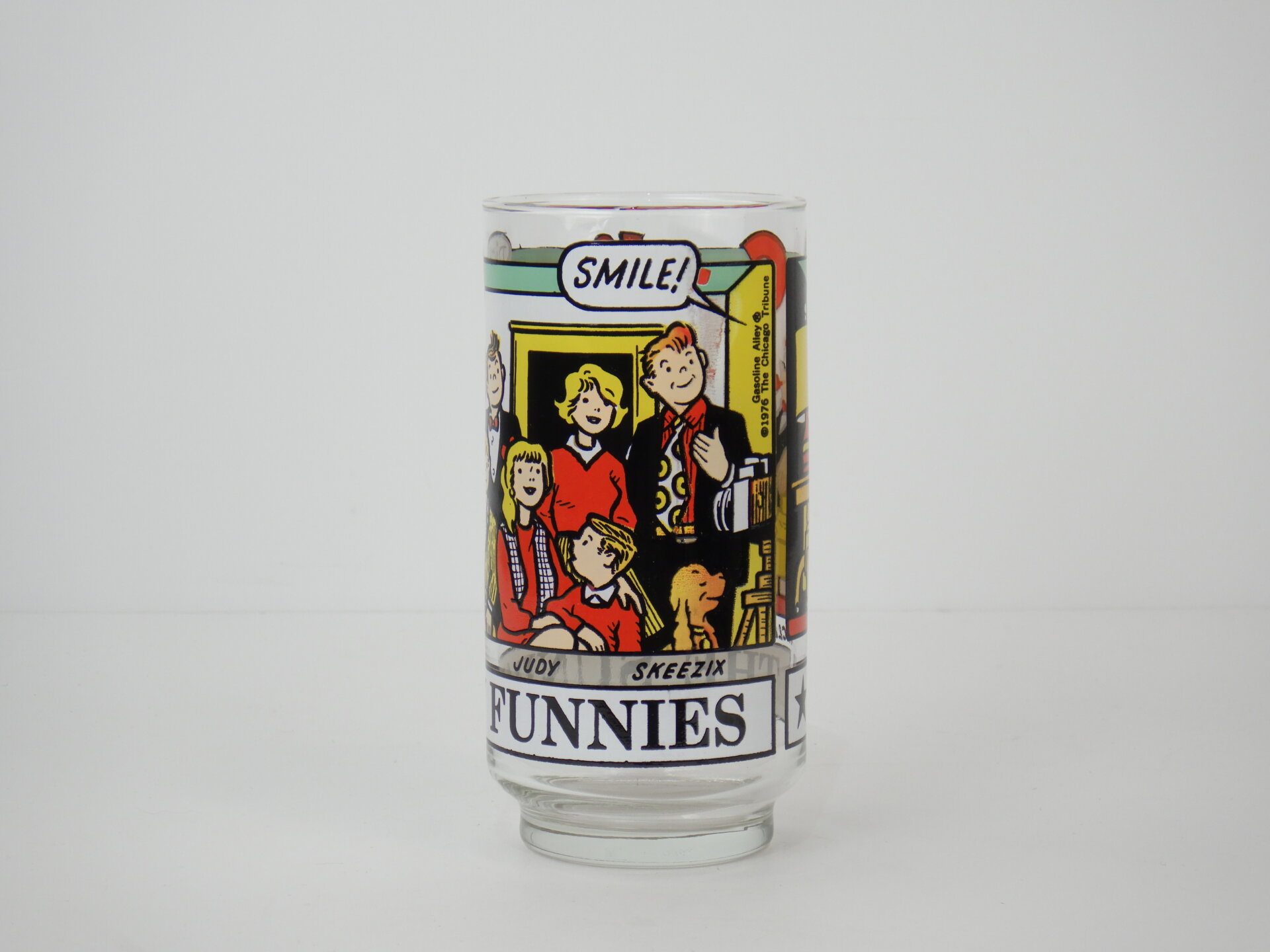 | アメリカで買い付けました。 リビー社製、「THE SUNDAY FUNNIES」シリーズのコレクターズグラスです。 このシリーズは、当時の新聞コミックをモチーフにしたプロモーション用グラスとして、全四種類製造されました。 こちらは1918年から現在まで百年以上続いている、アメリカでもっとも息の長い新聞漫画の一つ、「Gasoline Alley」がモチーフとなっています。 コマ割りや吹き出しをそのまま落とし込んだデザインが、当時のアメリカらしい遊び心とユーモアさを感じさせてくれますね。 |