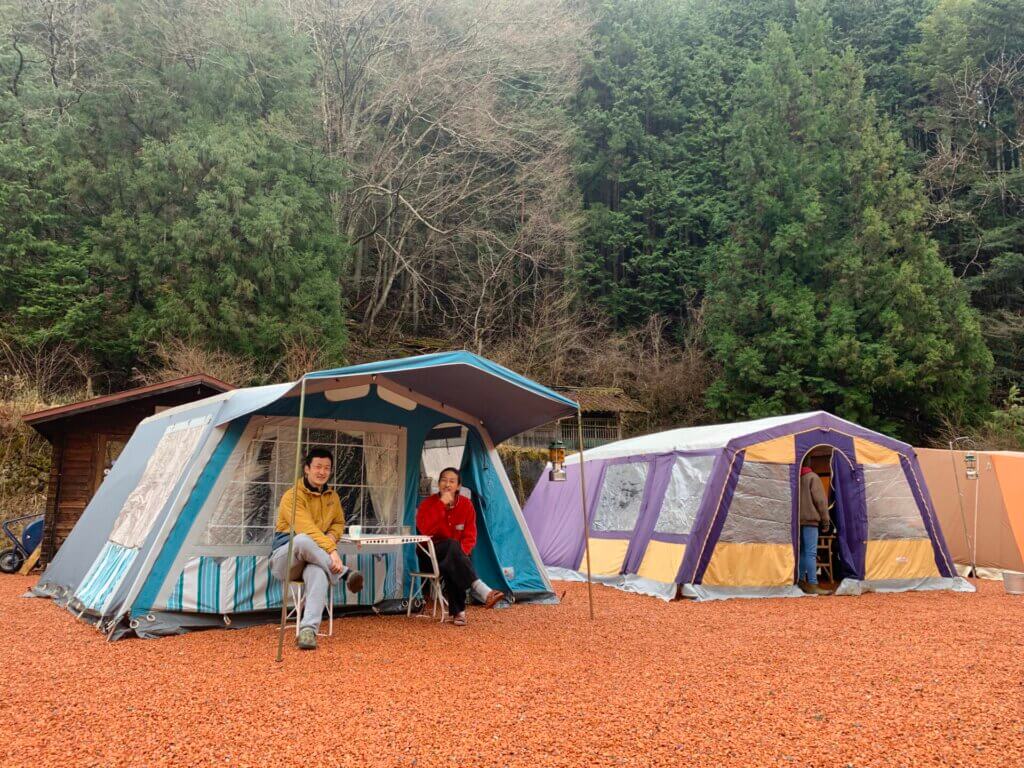 「鉄骨テントでするキャンプ最高」