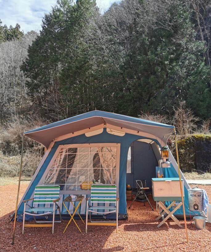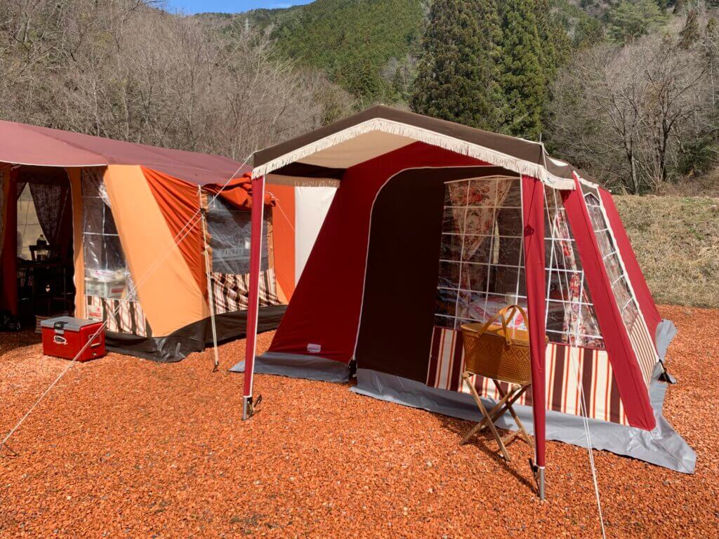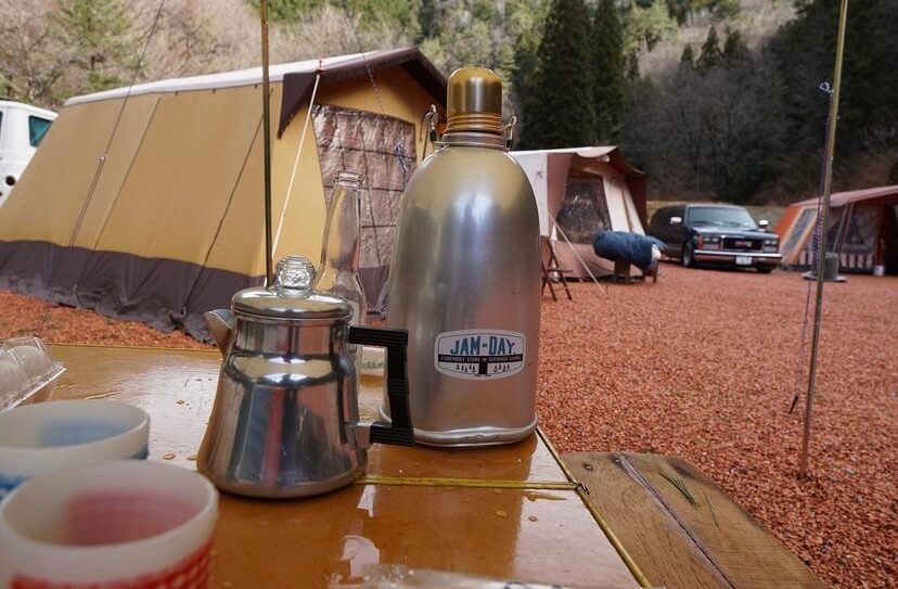 「ビンテージギアと鉄骨テントは相性抜群」