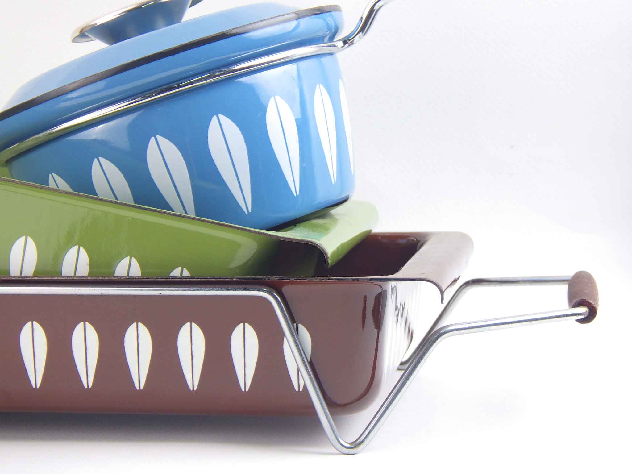 Cathrineholm(キャサリンホルム)は、もとはノルウェーの製鉄所として1827年創業。1907年にエナメル (ホーロー)製のキッチン用品の生産をスタート。 1950年代に人気を博したシリーズがノルウェーが誇るデザイナー『Grete Prytz Kittelsen』(グレタ・プリッツ・キッテルセン)、『Arne Clausen』(アーナ・クラウセン)らが手掛けた蓮の葉がモチーフの『Lotus』シリーズが代表する人気商品に。 プリントのみならず優れたデザイン性は実用性も兼ね備えた素晴らしいキッチンウエアとなりました。保温性の高いホーロー(エナメル)素材はじっくり煮込んだり美味しい料理を楽しく作れそうです。