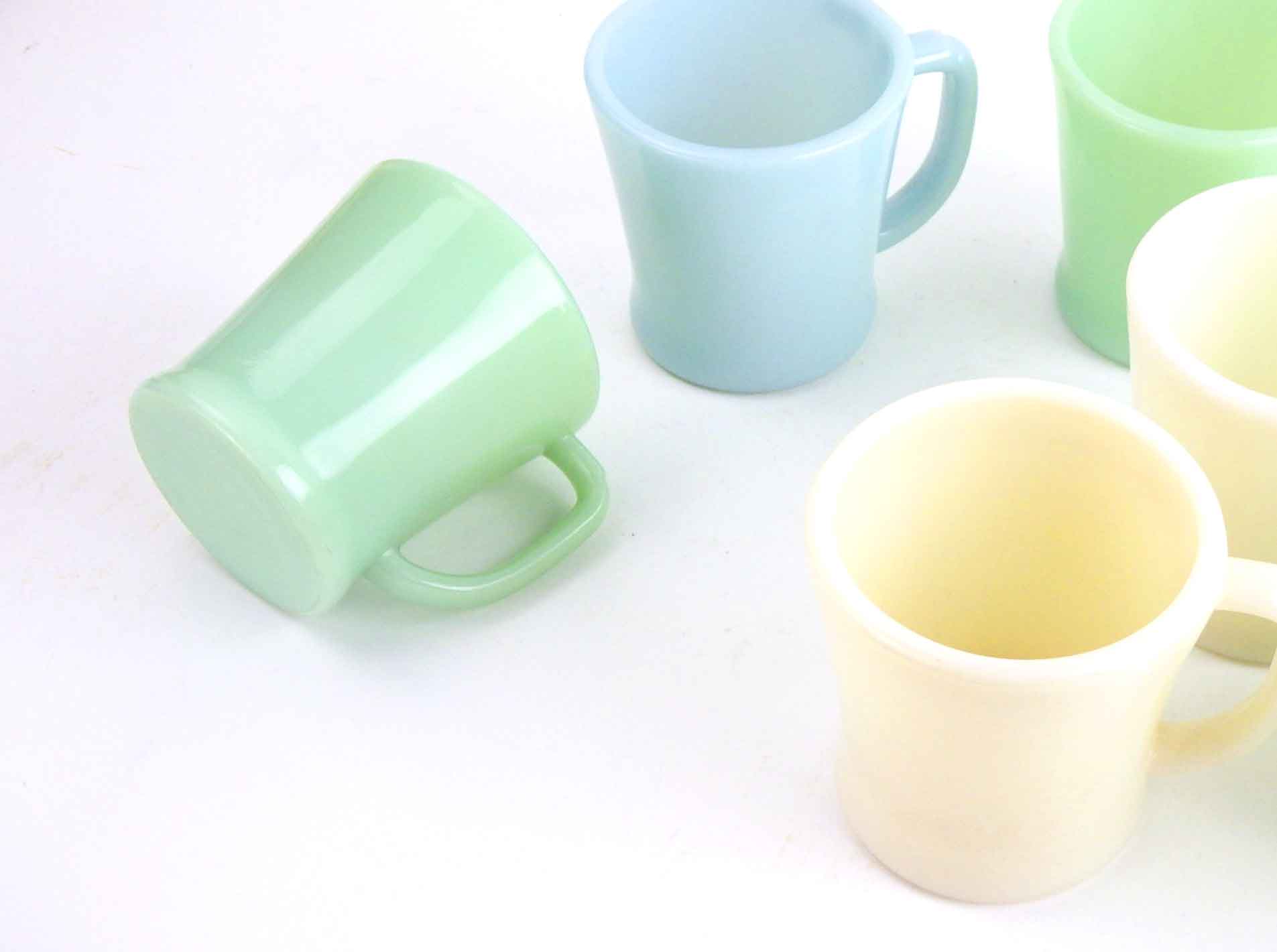 「Fire-King」(ファイヤーキング)は1941~86年に米国「Anchor Hocking」社(アンカーホッキング)が製造したオーブン耐熱ガラス製食器のシリーズブランドです。 その中でもミルクガラスの製品が有名で 豊富なカラーやプリント、フォルムがあり代表的なシリーズで翡翠色の「ジェダイ」シリーズなどがあります。 丸みのある可愛らしいフォルムとミルクガラスの素材感がとても良い手触りや口触りを 感じさせてくれます。 飲み物を入れた時に中身が透けて見えるのもとても素敵な雰囲気です。 当時のアメリカの日常を感じる事の出来る食器を是非お試しください。